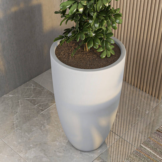 Crete Modern Tapered Round Planter Pot in Fiberstone and Clay Weather Resistant Design
