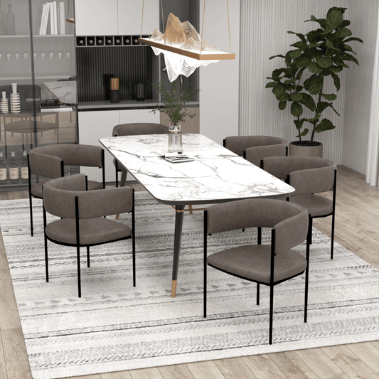 Cyril Dining Chair in Leather/Velvet with Open Back Design and Powder-Coated Iron Frame Set of 4
