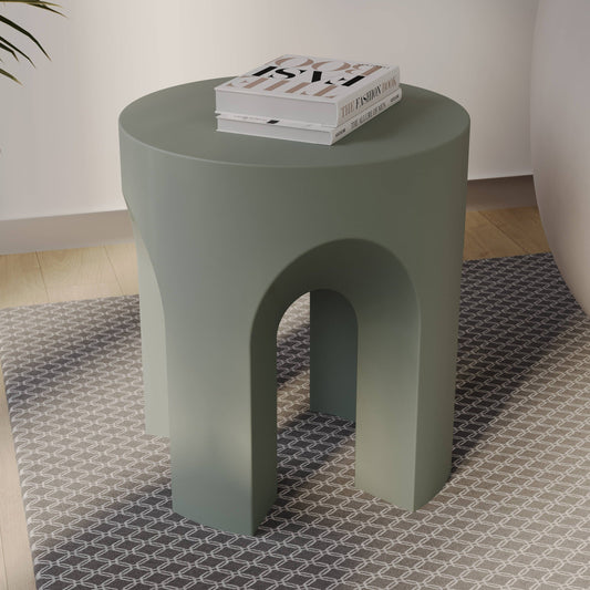 Crus Fiberstone Outdoor Side Table With Arched Base Design
