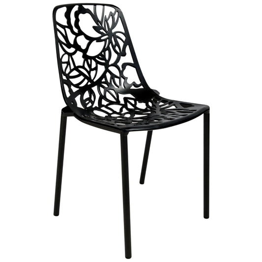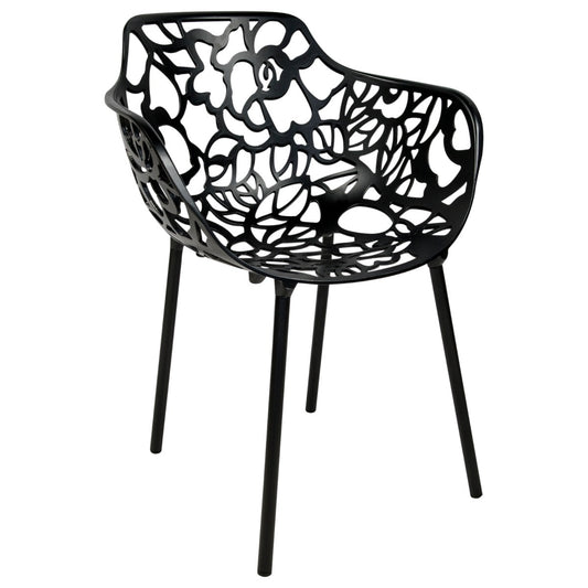 Devon Aluminum Indoor Outdoor Dining Armchairs with Flower Pattern and Stackable Design Set of 2
