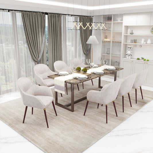 Elias Dining Chair Upholstered in Leather Velvet and Powder Coated Legs Set of 4