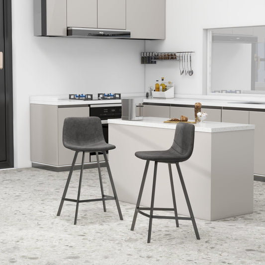 Elland Modern Upholstered Leather Bar Stool With Iron Legs & Footrest Set of 2