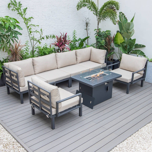 Hamilton 7-Piece Aluminum Patio Conversation Set With Fire Pit Table And Cushions