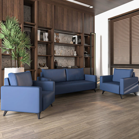 Inno 3-Piece Leather Sofa Set with 2 Single-Seater and a Three-Seater Sofa with Stainless Steel Legs
