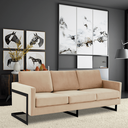 Lincoln 3-Seater Upholstered Velvet Sofa with Black Stainless-Steel Base
