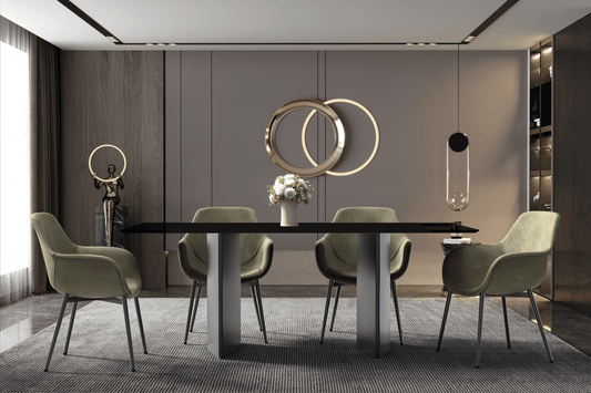 Lior Dining Table with Rectangular Glass/Sintered Stone Tabletop and Black Steel Legs