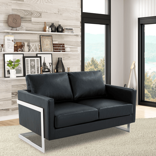Lincoln Leather Loveseat Sofa with Black Stainless Steel Frame