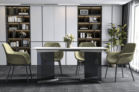 Oryn Modern Rectangular Dining Table with Glass/Sintered Stone Tabletop