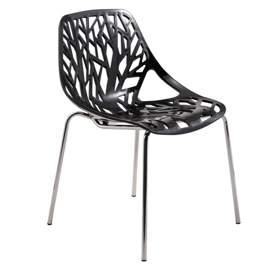 Ravenna 5-Piece Dining Set: 4 Stackable Plastic Chairs & Round Table With Geometric Base