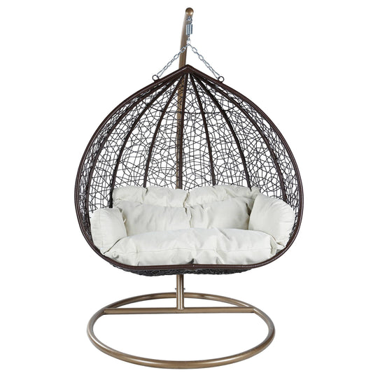 Recluse Two-Person Seater Hanging Swing Chair with Teardrop Design in Brown Frame
