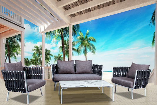 Spencer Modern Outdoor Patio Dining Chair with Rope Design and Cushions