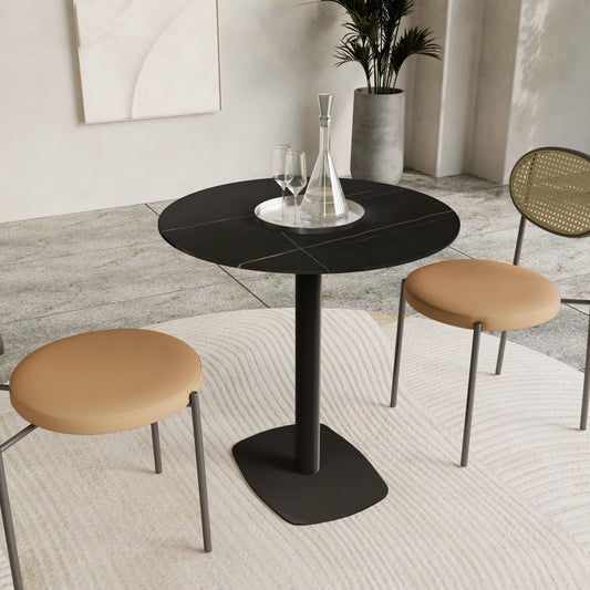 Vail Collection Dining Table Black Base With 27"/36" Round Stone Top