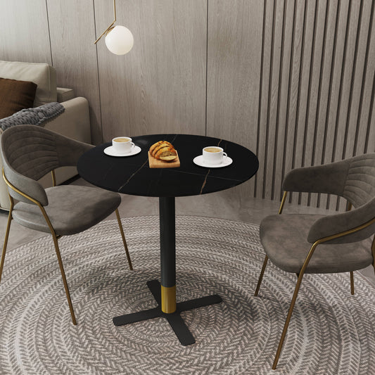 Vail Collection Dining Table Black/Gold X Base With 27"/36" Round BLack Stone Top