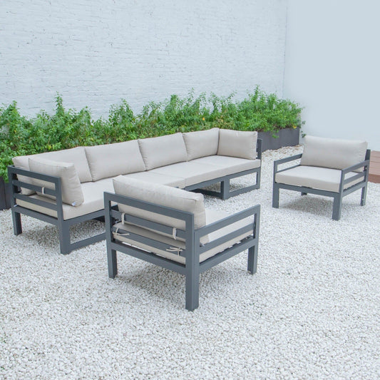 Chelsea 6-Piece Patio Sectional In Weathered Grey Aluminum With Cushions