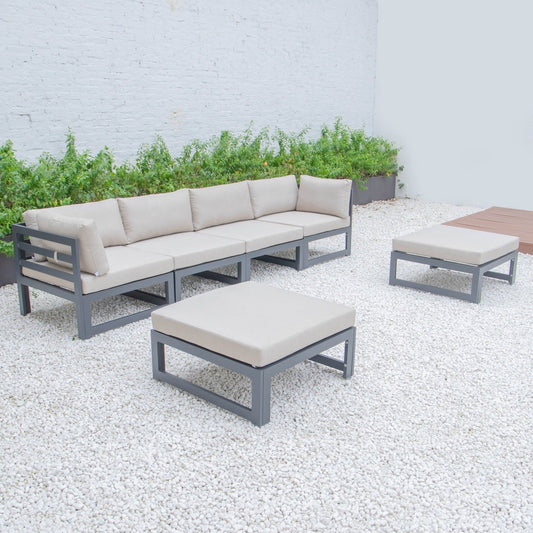 Chelsea 6-Piece Patio Ottoman Sectional Black Aluminum With Cushions