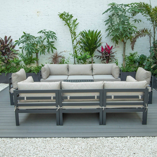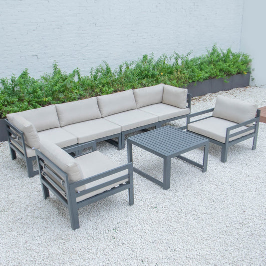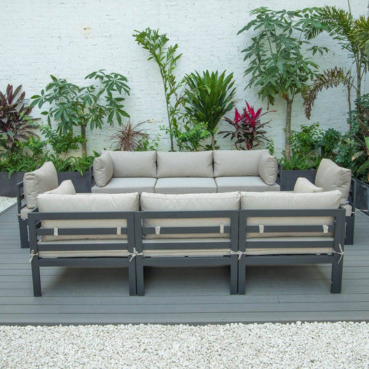 Chelsea 8-Piece Modern Outdoor Patio Sectional Black Aluminum With Cushions