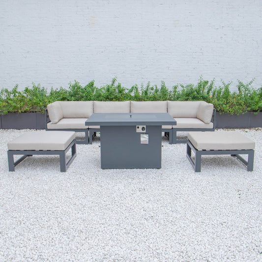Chelsea 7-Piece Patio Ottoman Sectional And Fire Pit Table Black Aluminum With Cushions