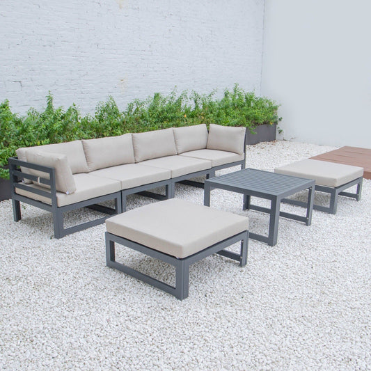 Chelsea 7-Piece Patio Ottoman Sectional And Coffee Table Set Black Aluminum With Cushions