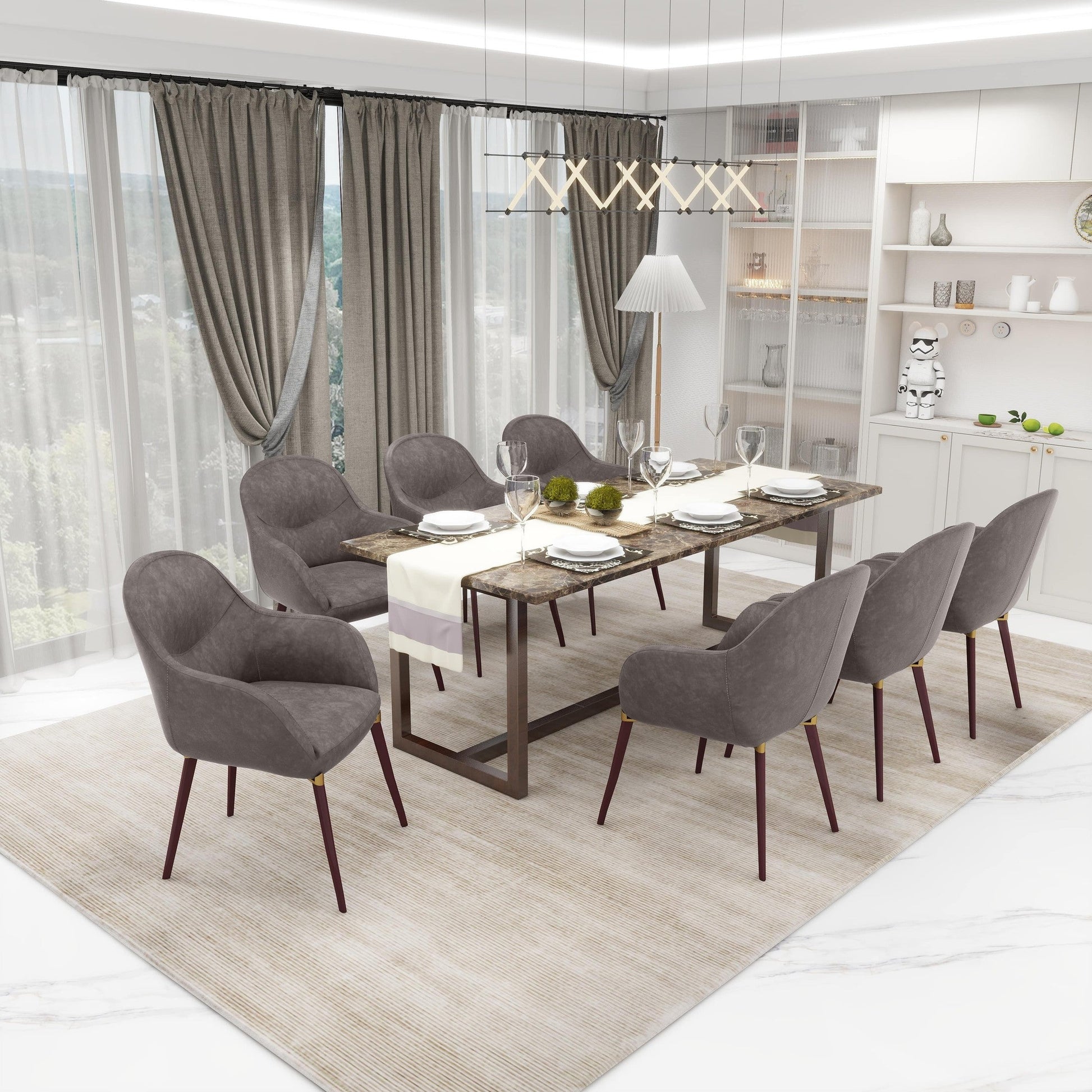 Elias Dining Chair Upholstered in Leather Velvet and Powder Coated Legs Set of 4