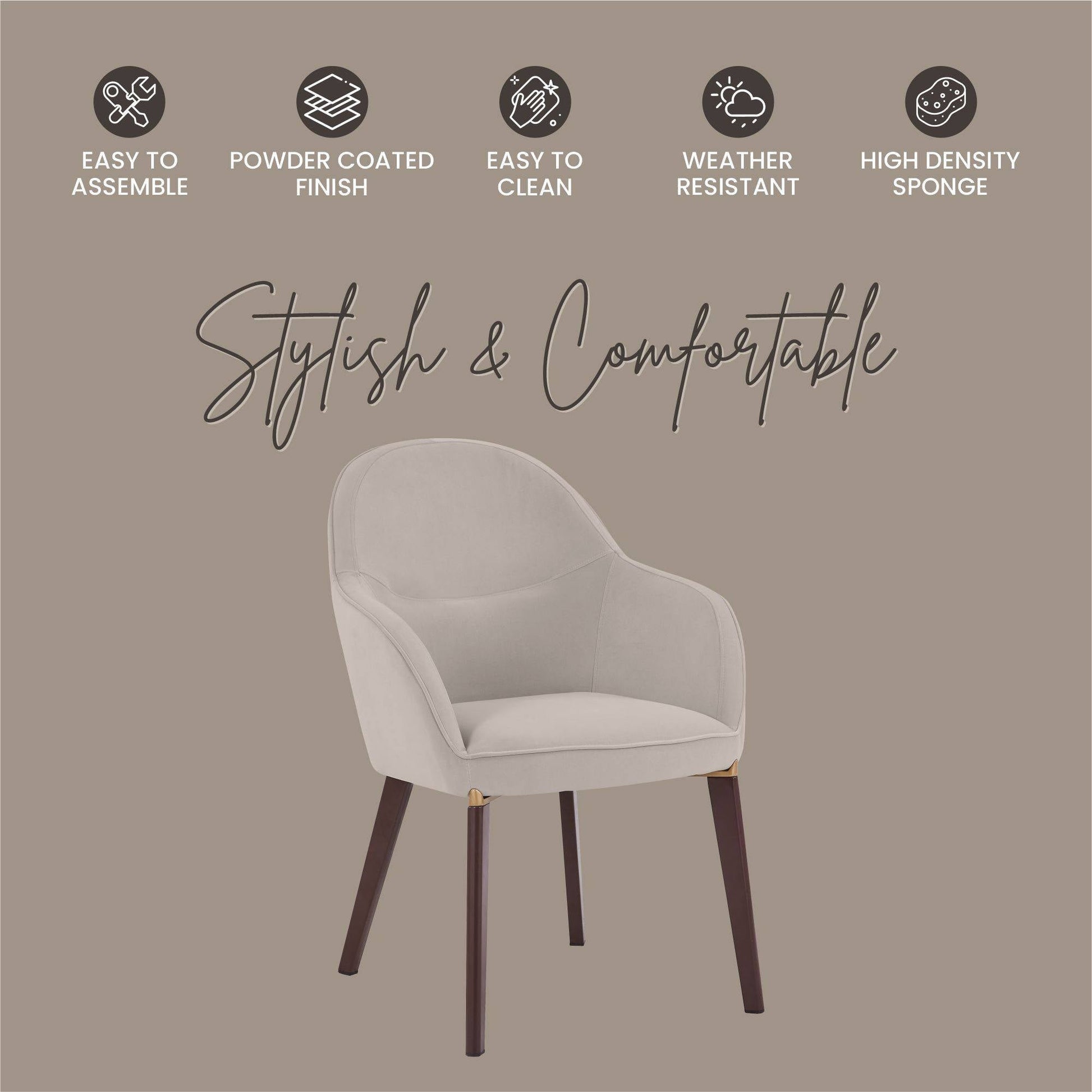 Enhance your dining experience with our Elias Dining Chair, expertly crafted with plush Leather Velvet upholstery for comfort and style. The sleek Powder Coated Legs provide sturdy support and a modern touch. Create a luxurious dining setting with this beautiful set of 4 chairs.