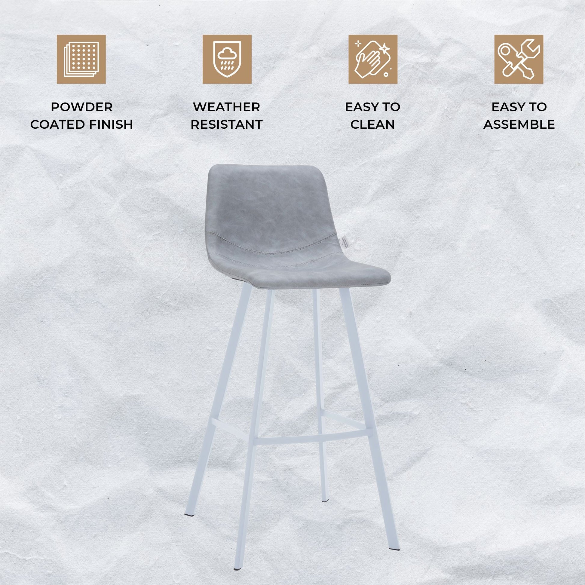 Expertly crafted and designed, the Elland Leather Bar Stool is the perfect addition to elevate any space. The curved padded seat offers comfortable lower back support, while the robust steel legs with a matte white powder-coated finish provide durability and rust resistance. Wrapped in sleek PU leather with zigzag stitching, this bar stool is not only stylish, but also easy to maintain. Ideal for any modern setting, both residential and commercial.