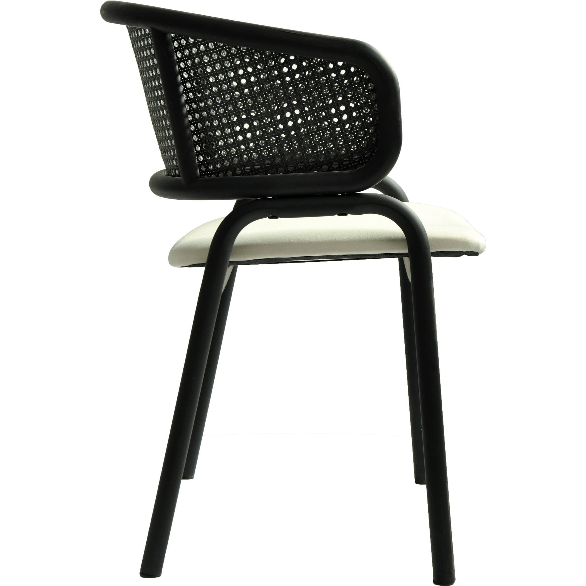 Ervilla Dining Armchair with Black Steel Legs and Black Wicker Back Set of 2