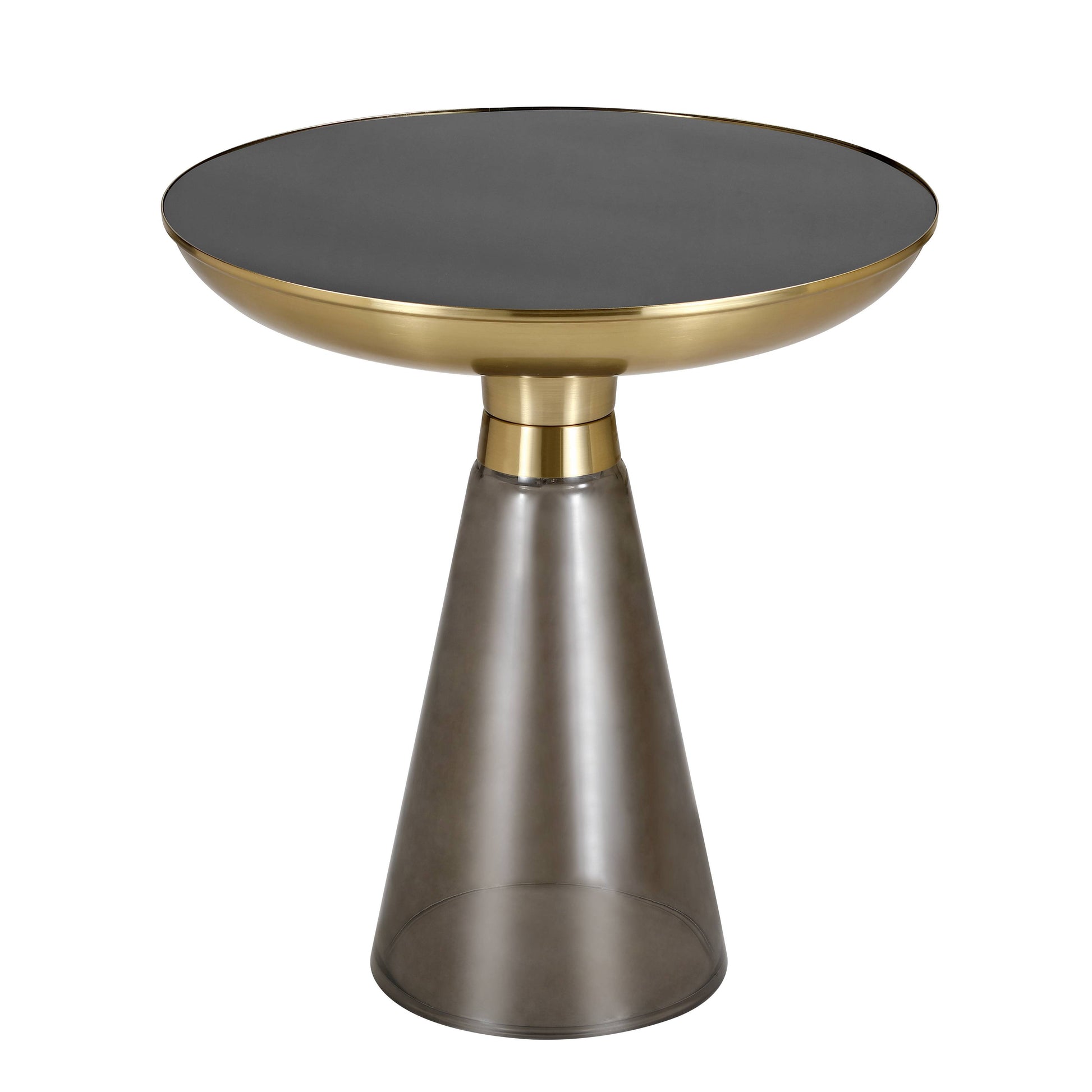 Hyalus Tully 19-Inch Round Glass Side Table with Iron Rim Frame and Glass Base