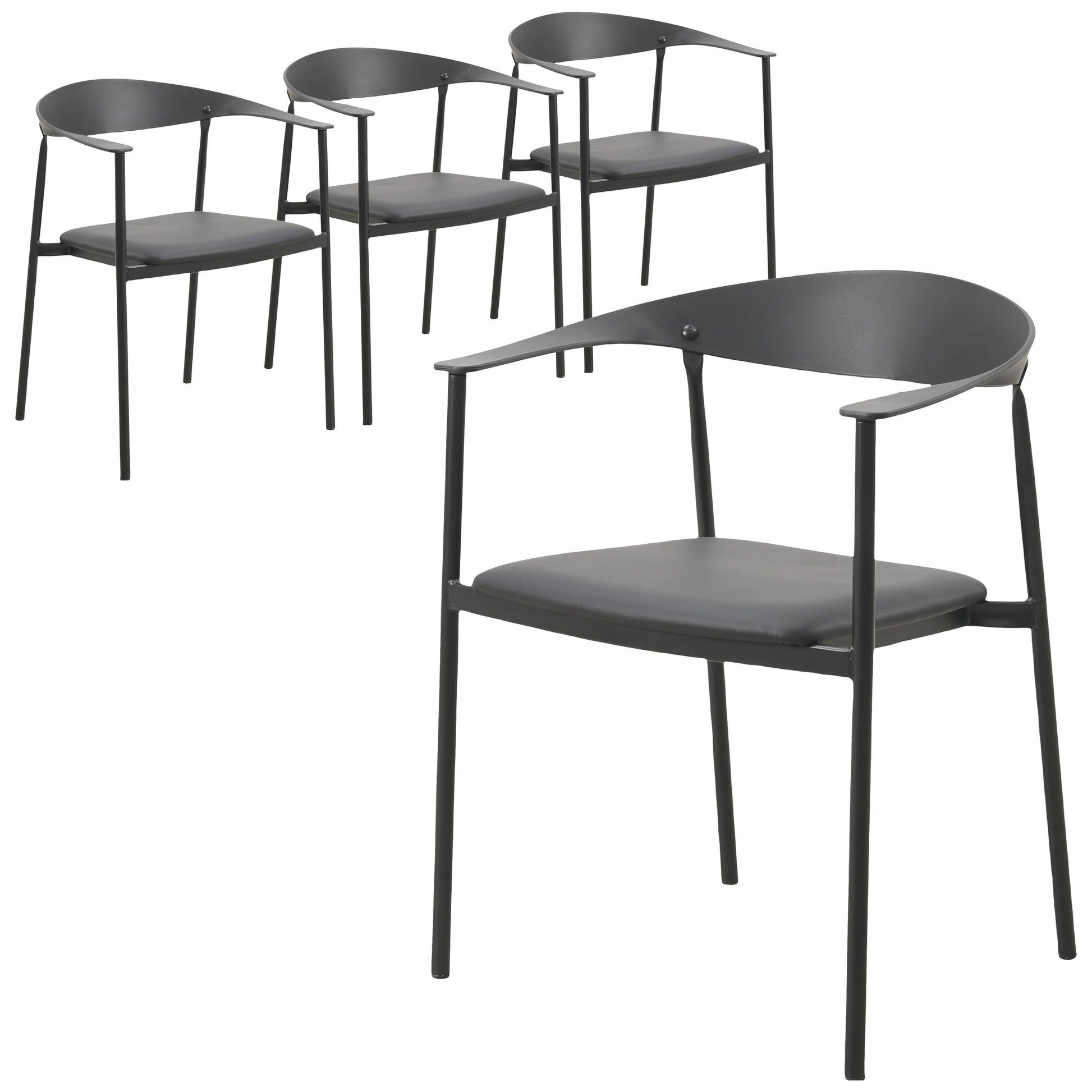 Kora Leather Dining Chair with Open-Back Design and Stainless Steel Frame and Legs Set of 4