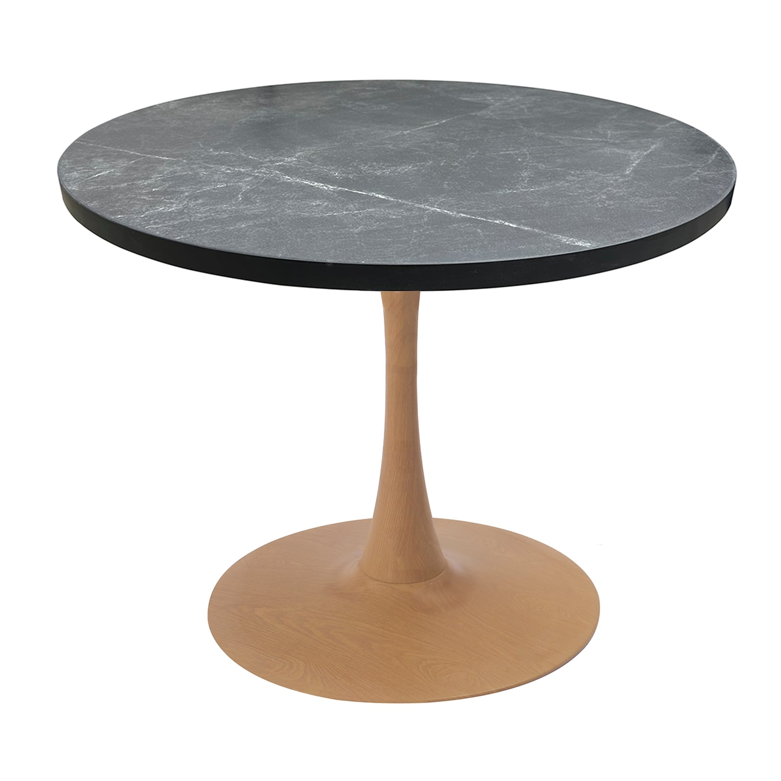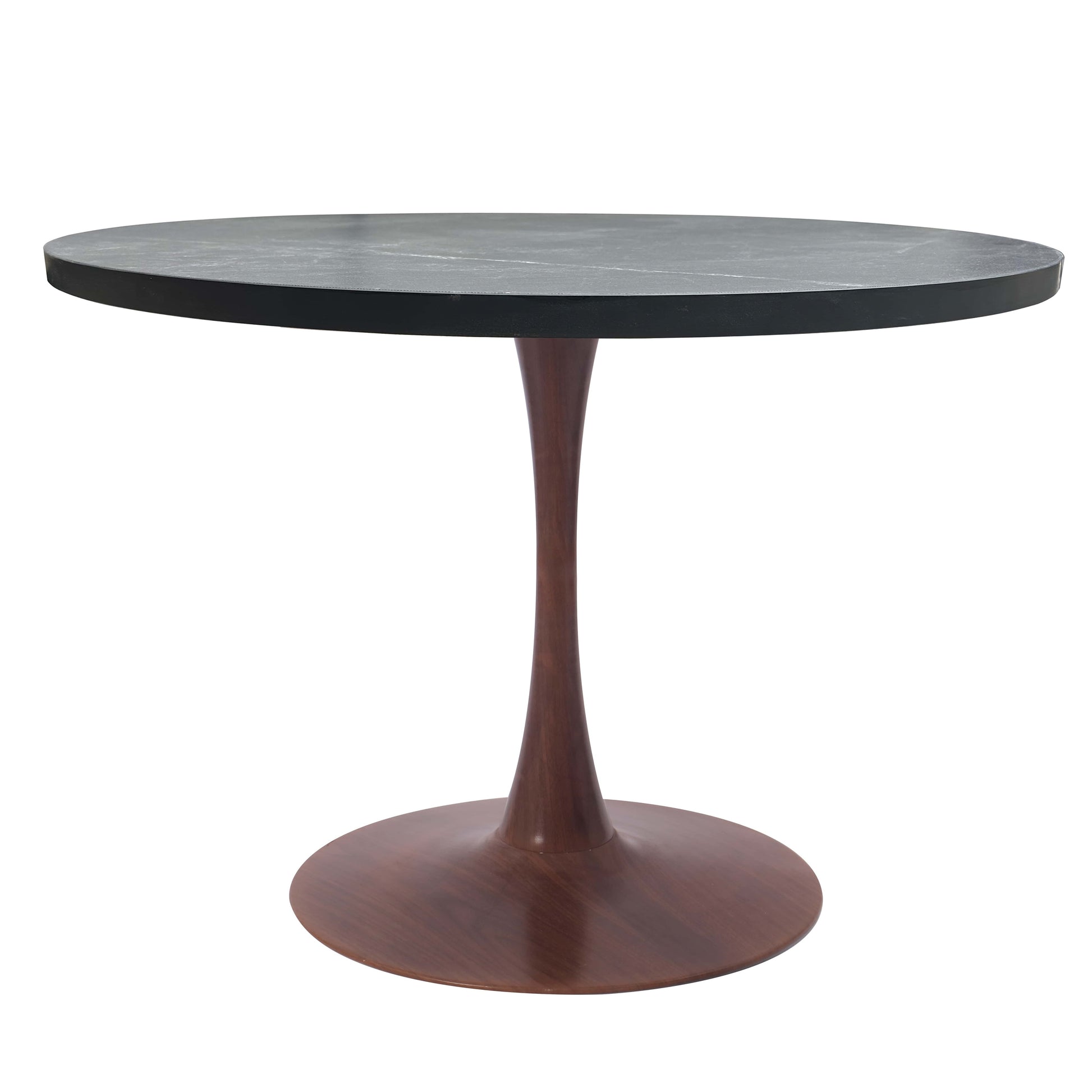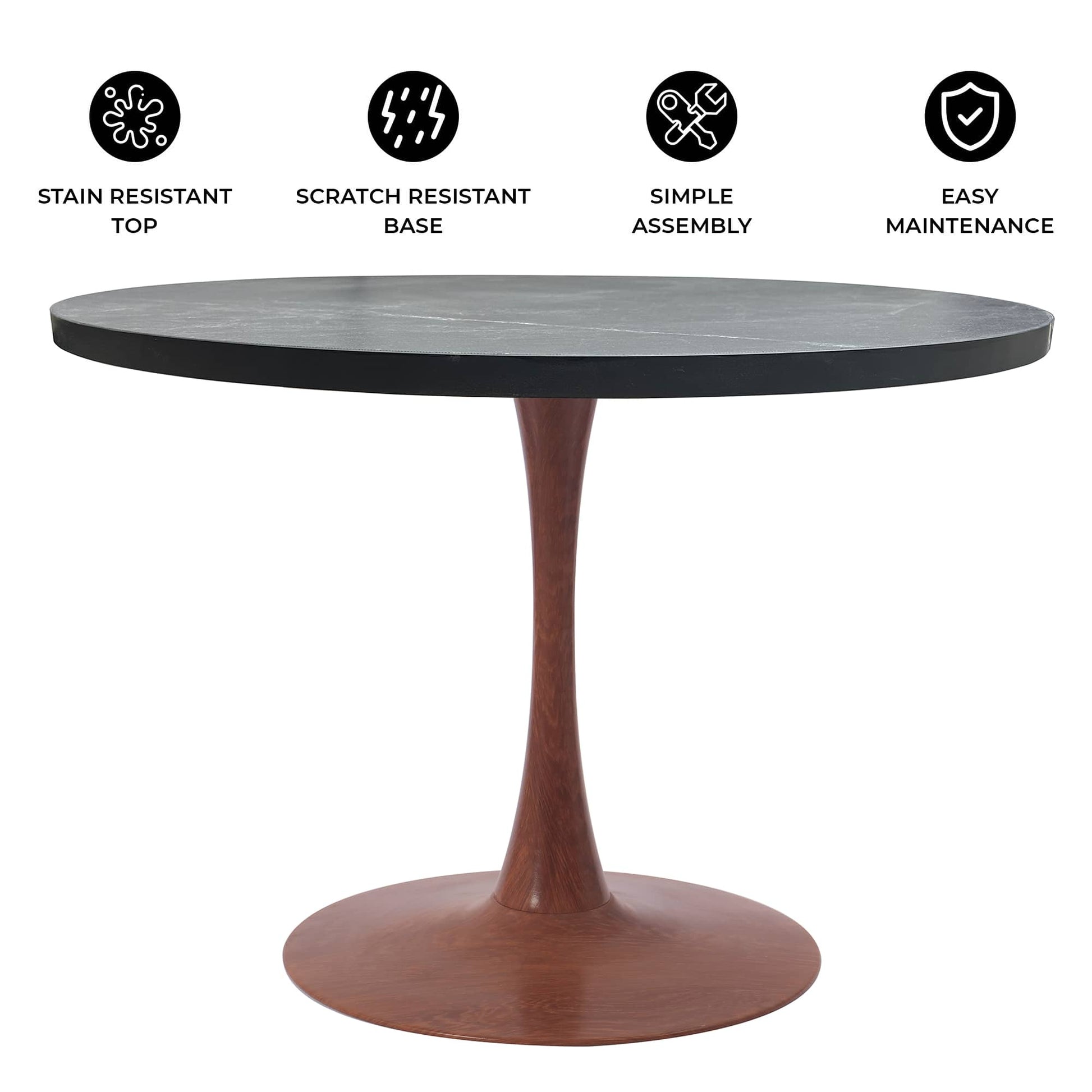 - The circular design of this dining table embodies contemporary style, imparting a chic and refined aesthetic that harmonizes with any modern setting. Versatile in nature, this round dining table effortlessly enhances the ambiance of any room.