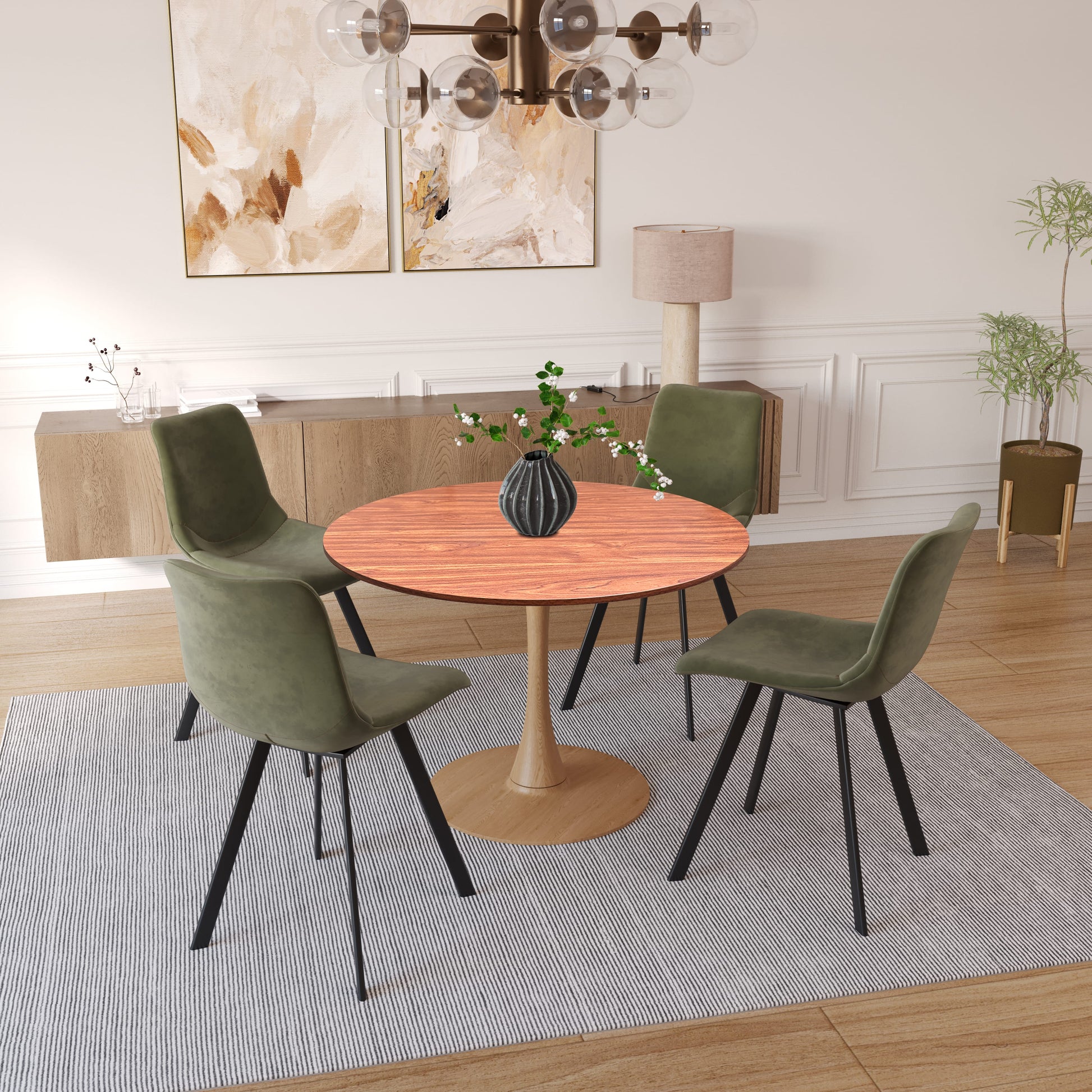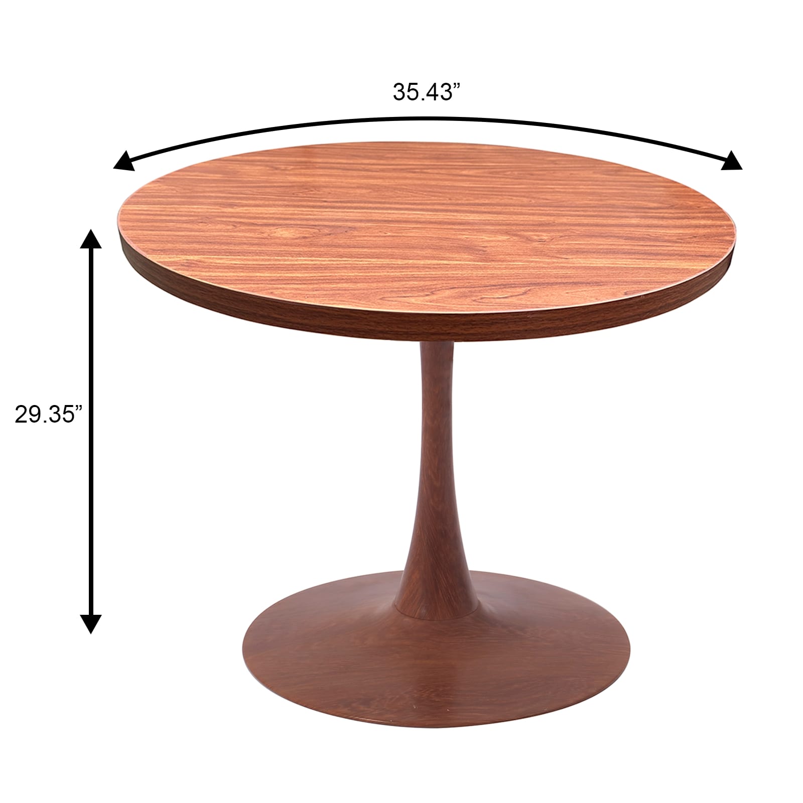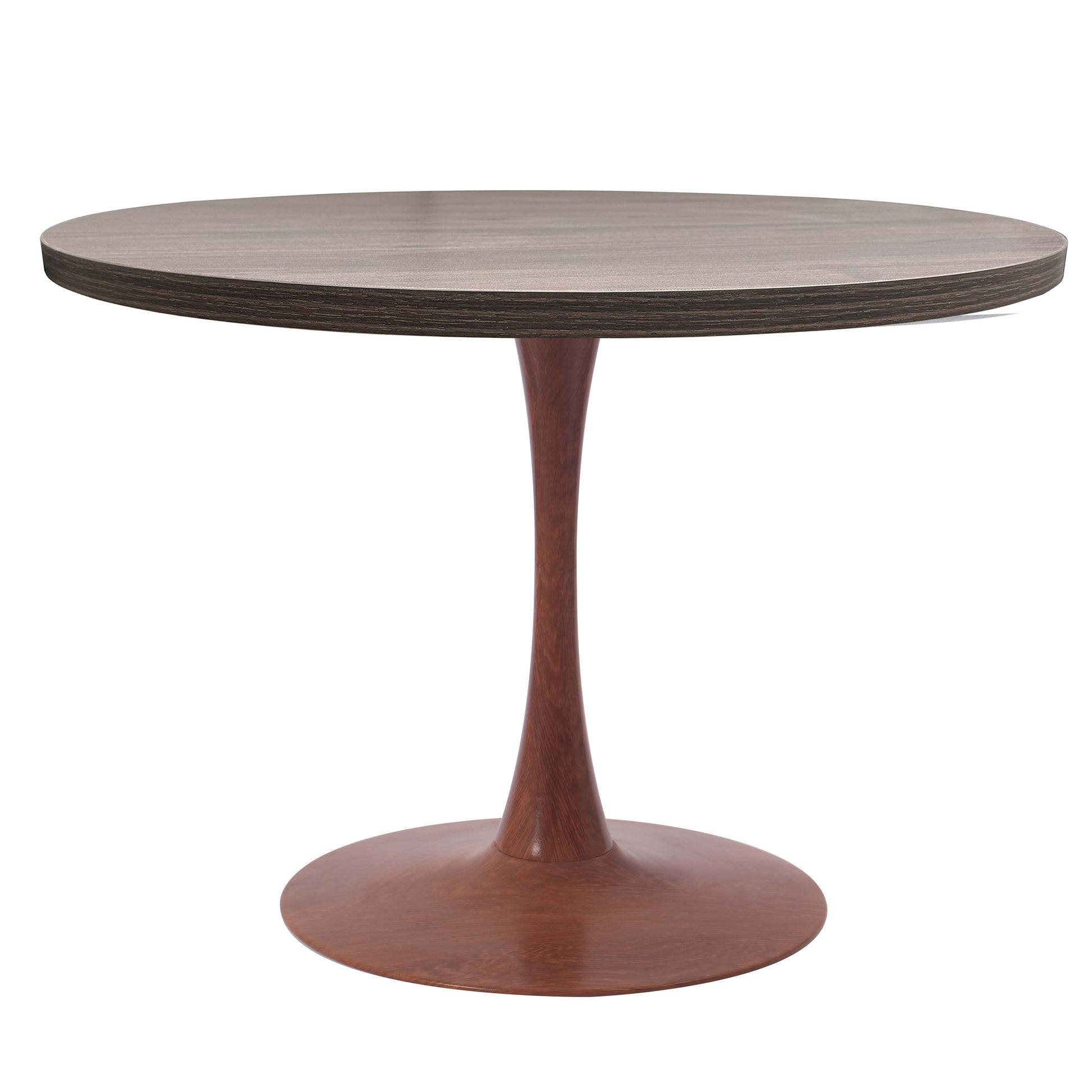 LeisureMod Bristol 36" Round Dining Table Wood Transfer Cherry/Natural/Walnut Base with MDF Table Top