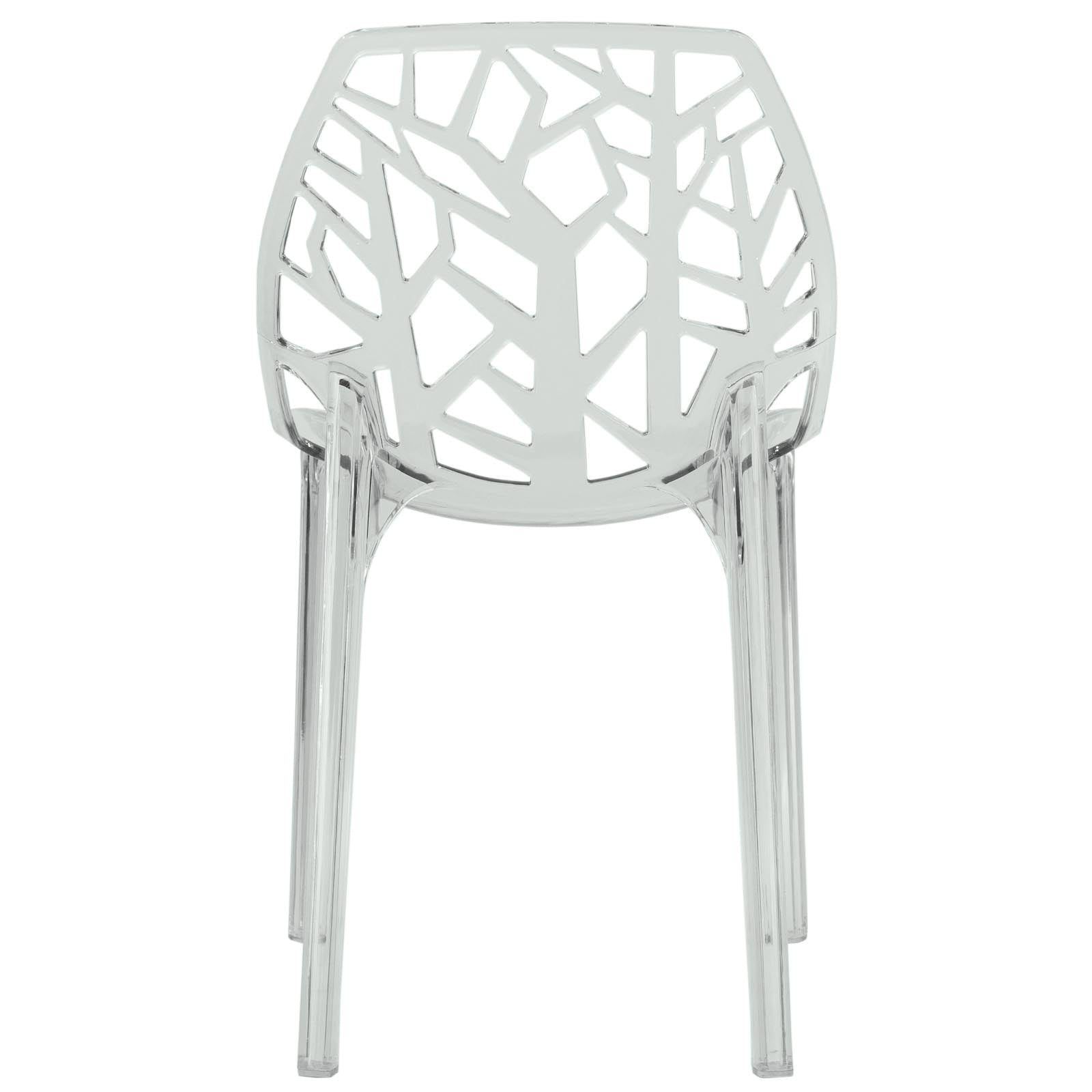 Add a touch of modern elegance and simplicity to your home with the Cornelia Plastic Dining Chair. Made of lightweight yet sturdy ABS plastic, this chair features an intricate cut-out design reminiscent of a small grove of trees. Whether used around a dining table or as a standalone piece, this chair is sure to add a woodsy charm to any space.
