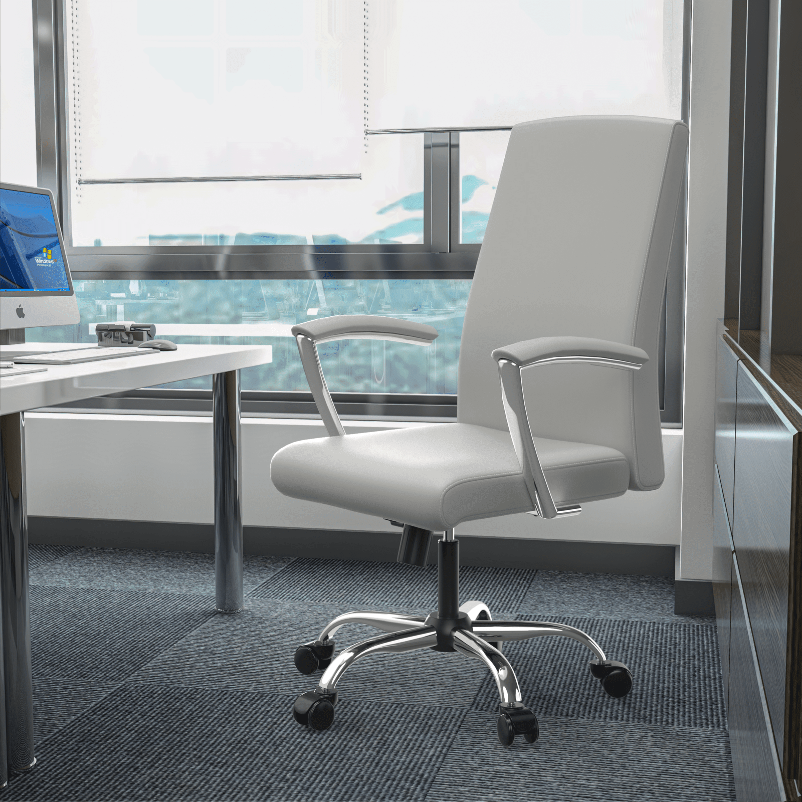Evander Modern Swivel Office Chair in Faux Leather with Adjustable Height and Silver Frame