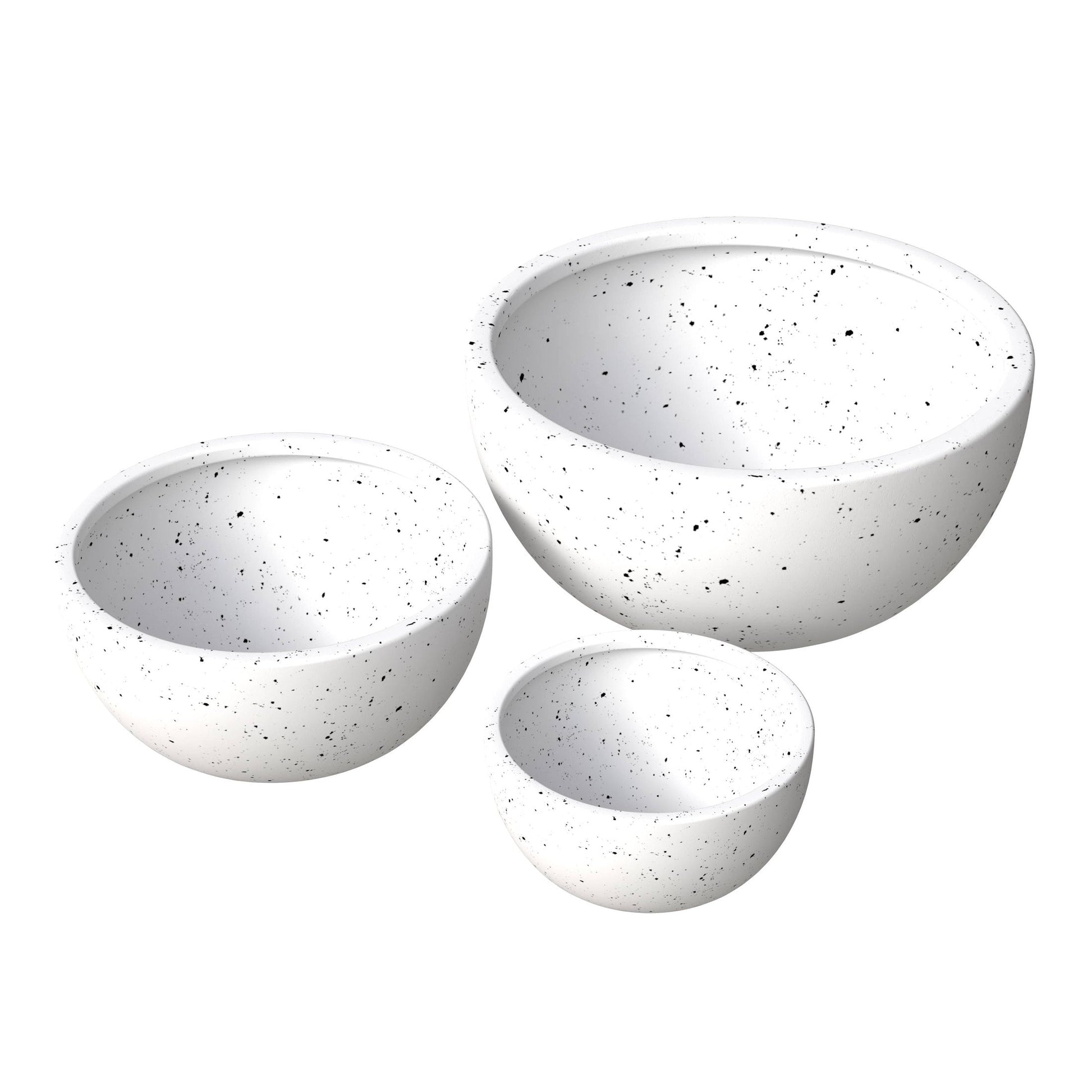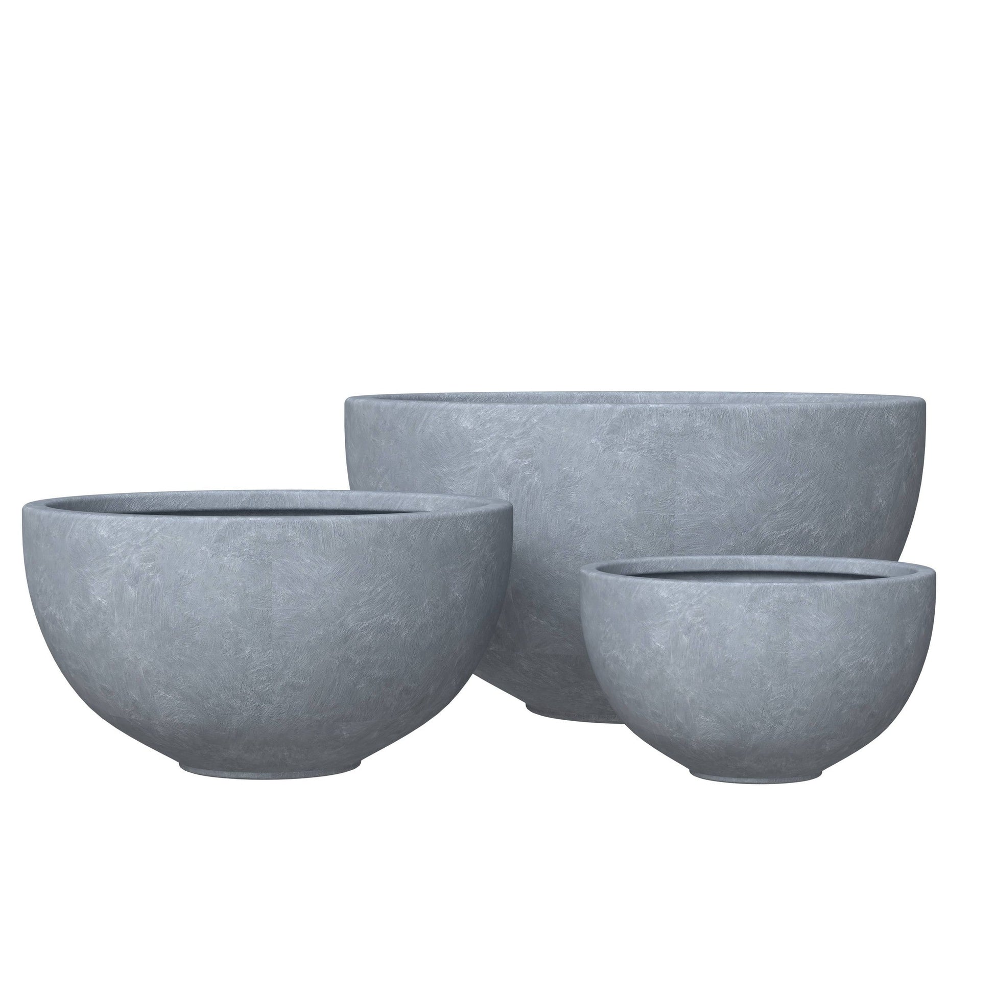 Iris Modern 3-Piece Round Planter Pot Set in Fiberstone and Clay Weather Resistant Design