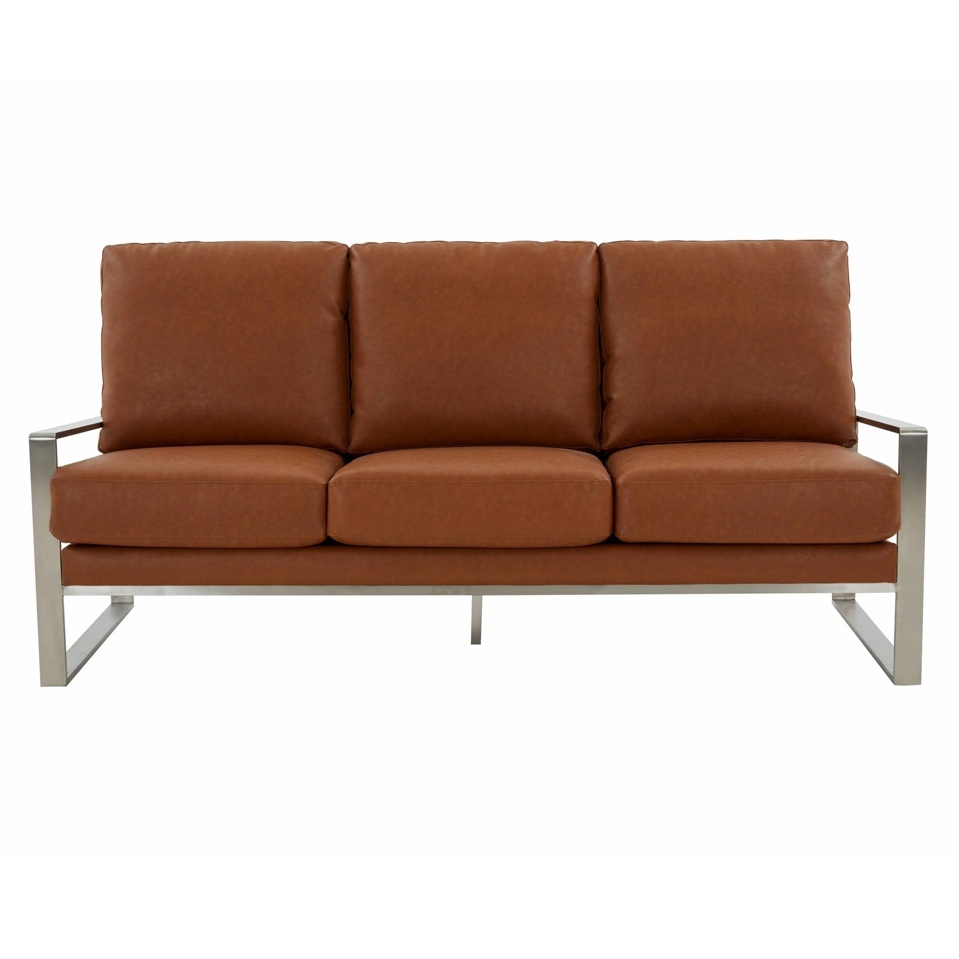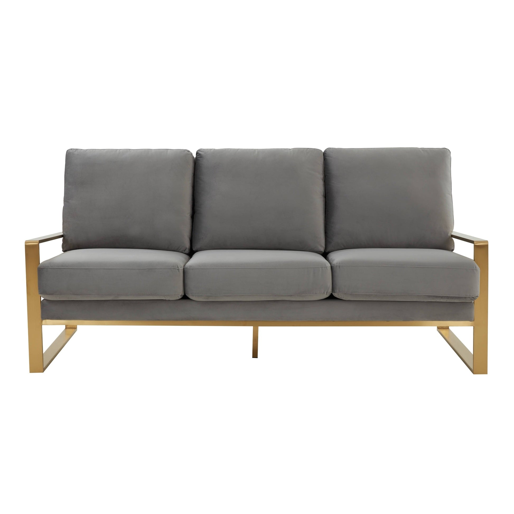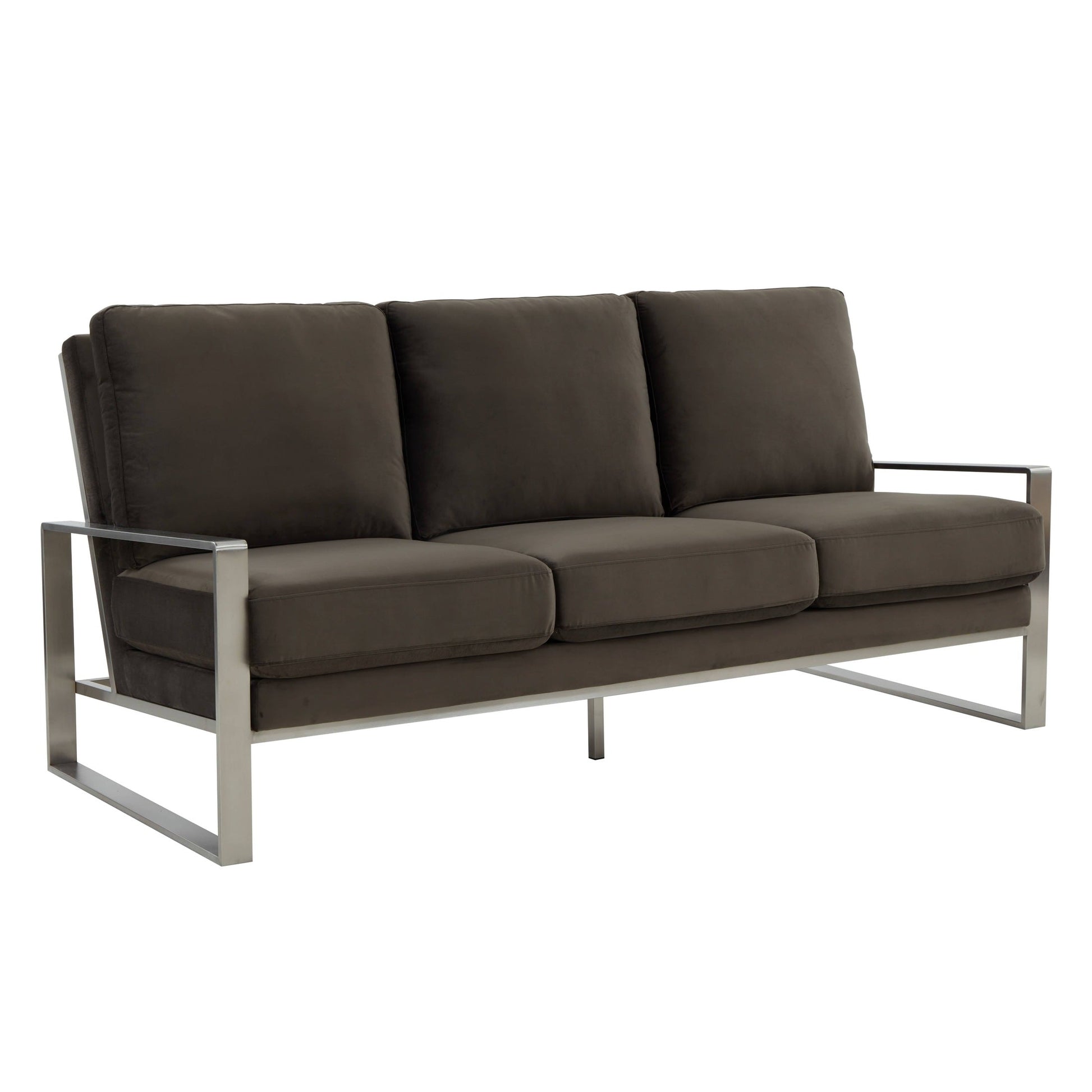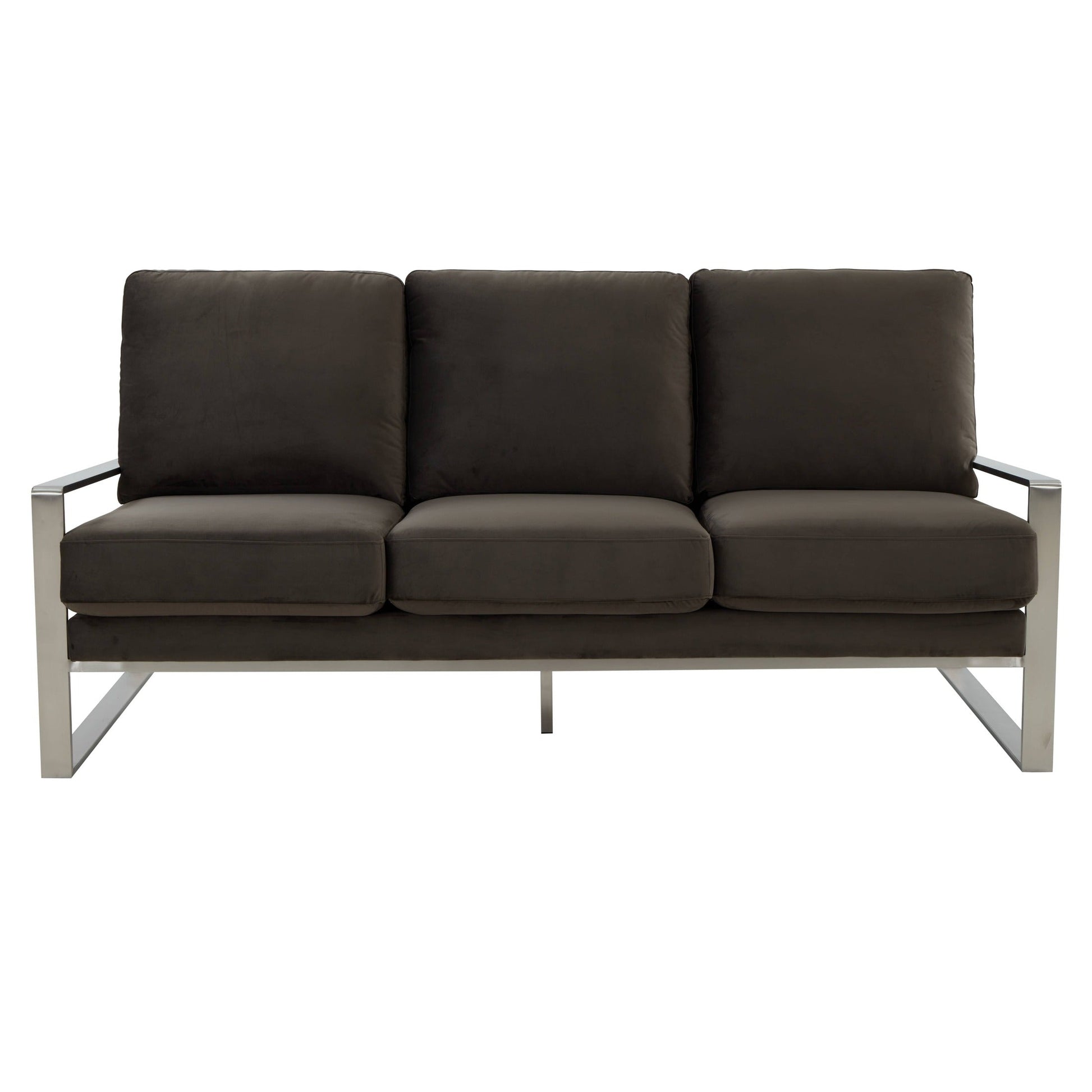 Jefferson 3-Seater Velvet/Leather Full Size Sofa in Stainless Steel