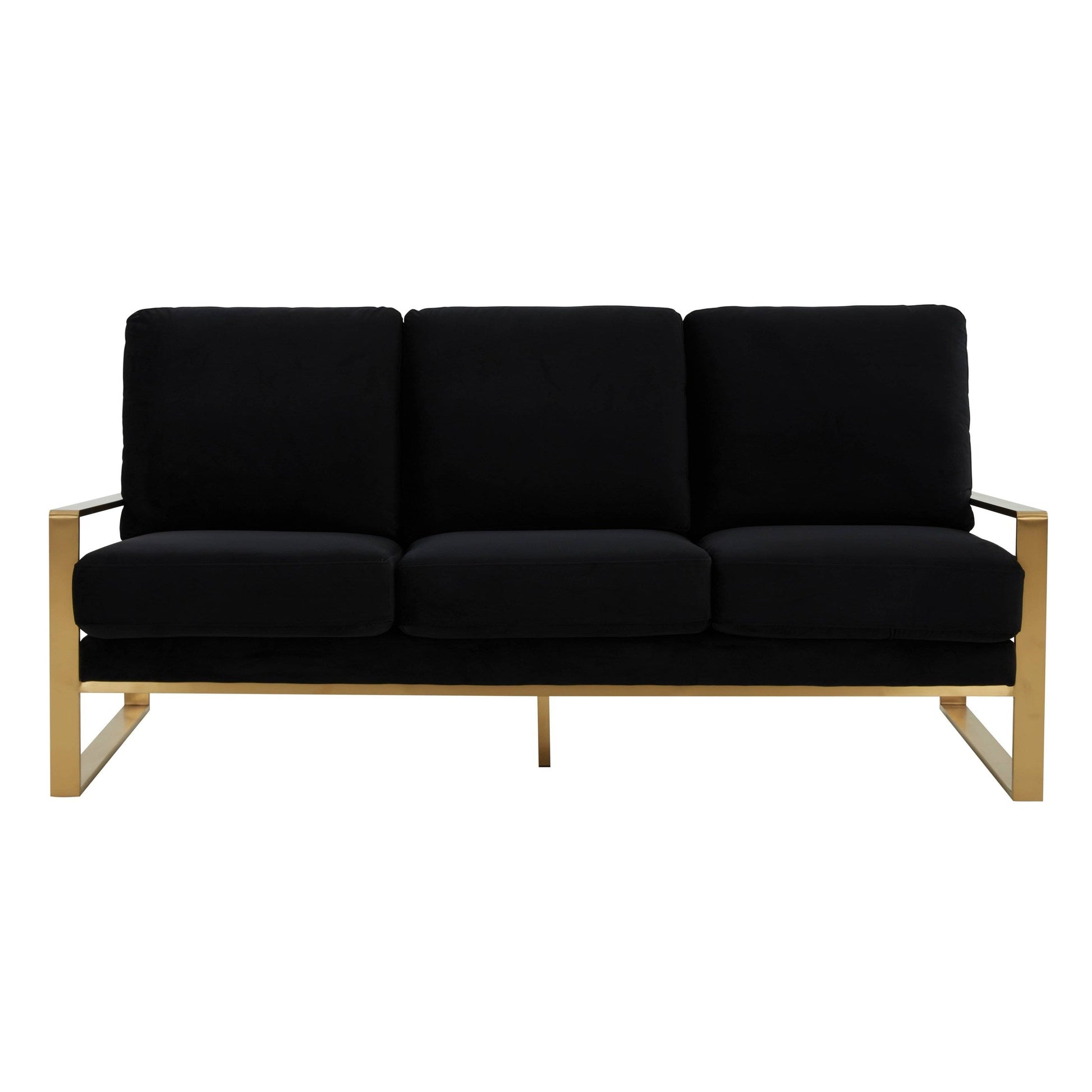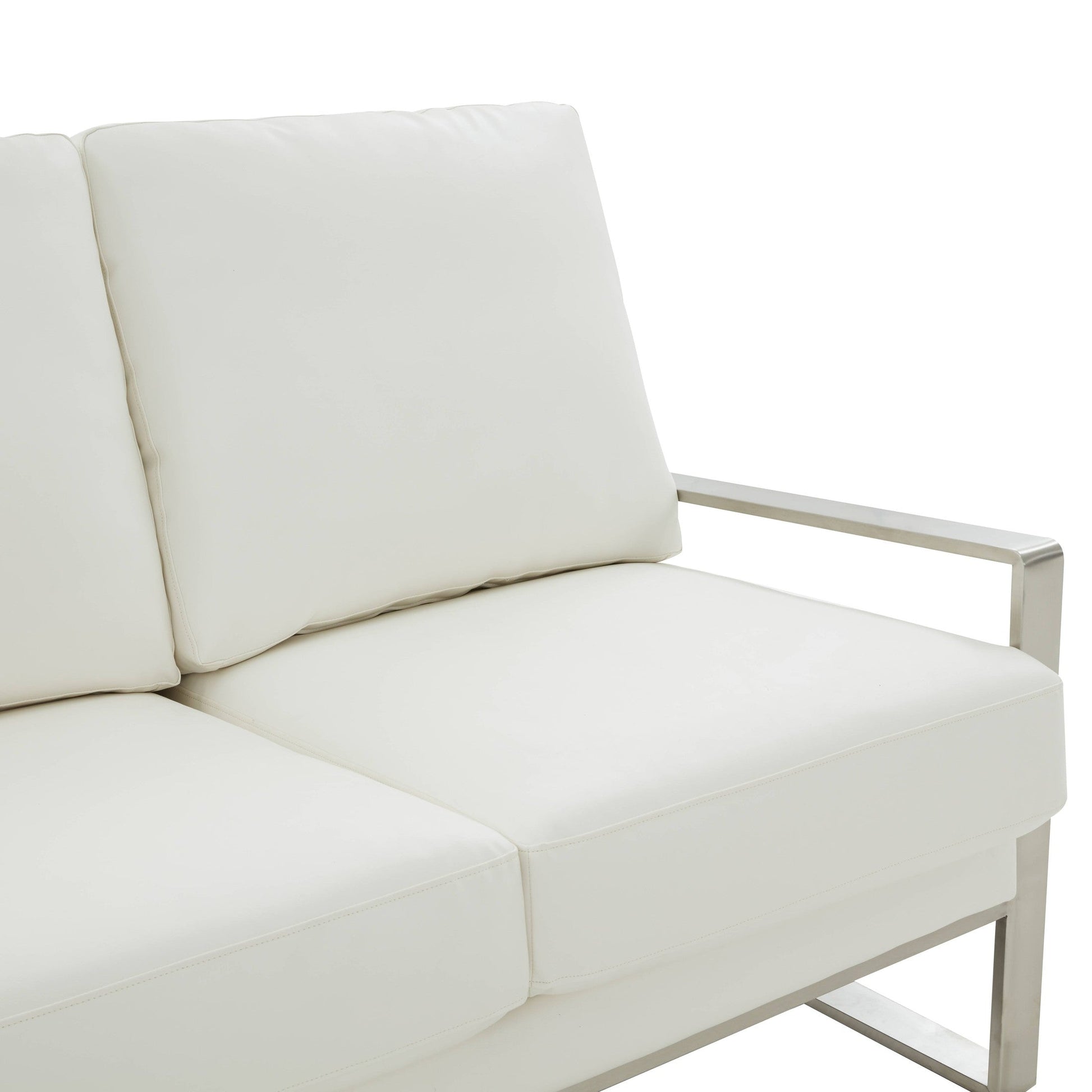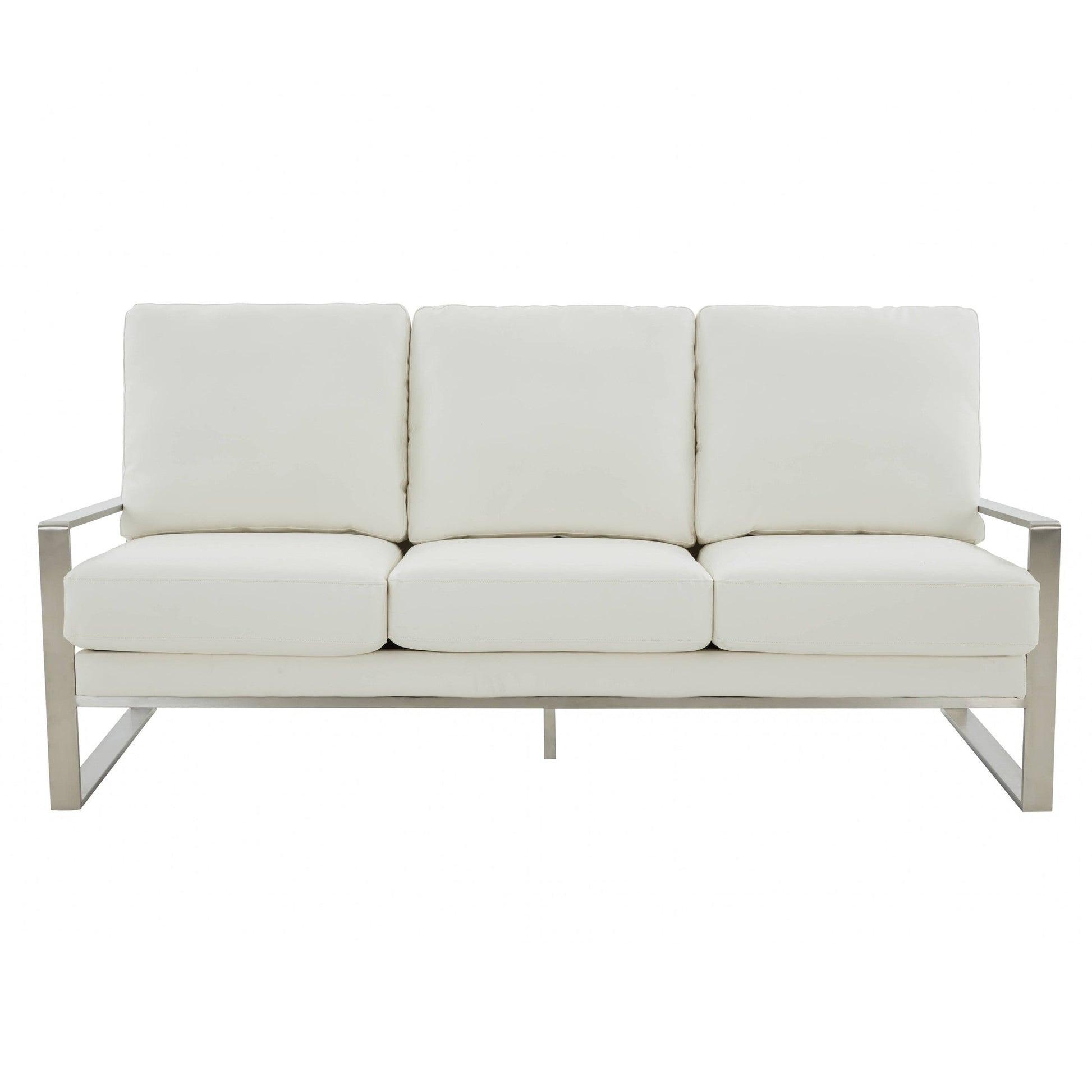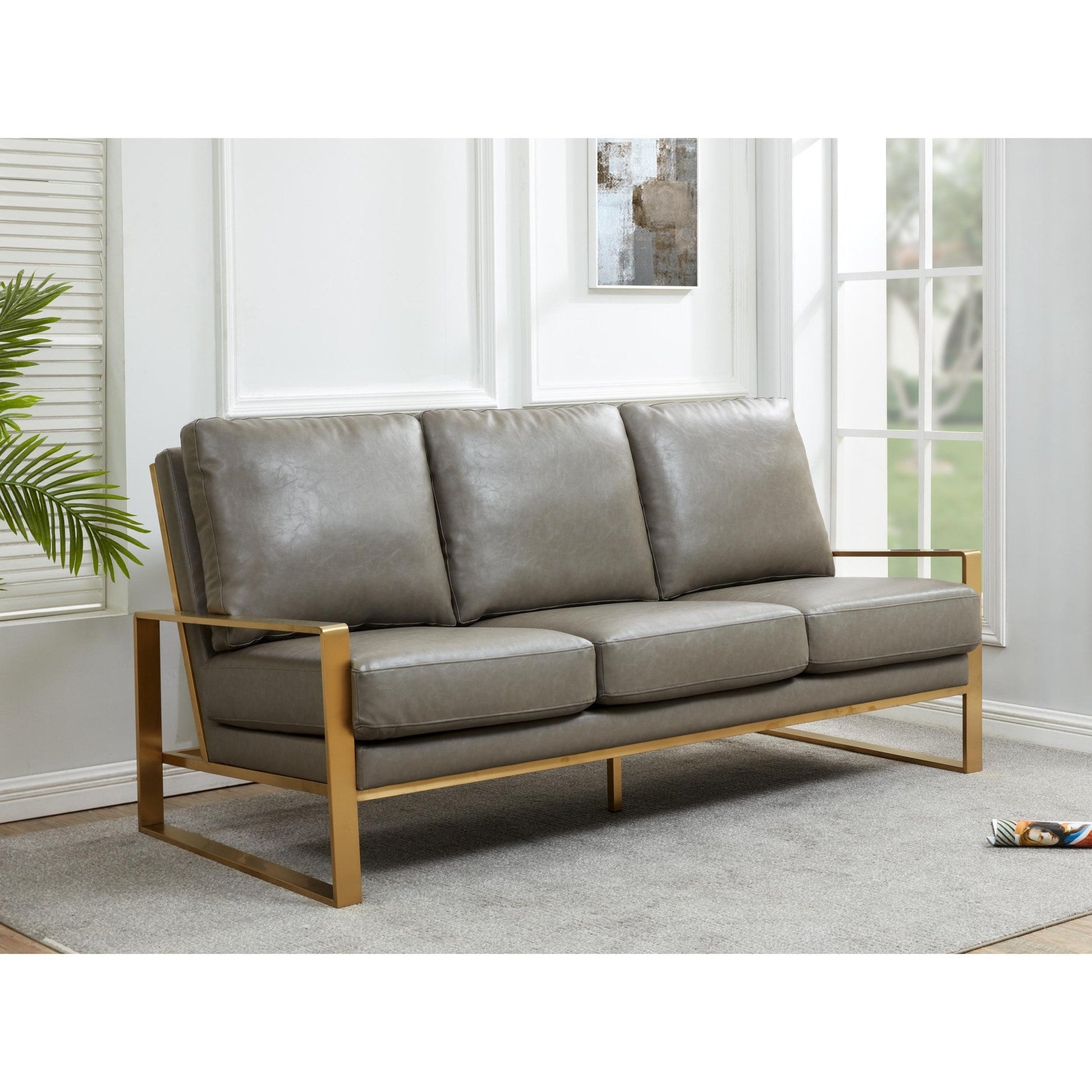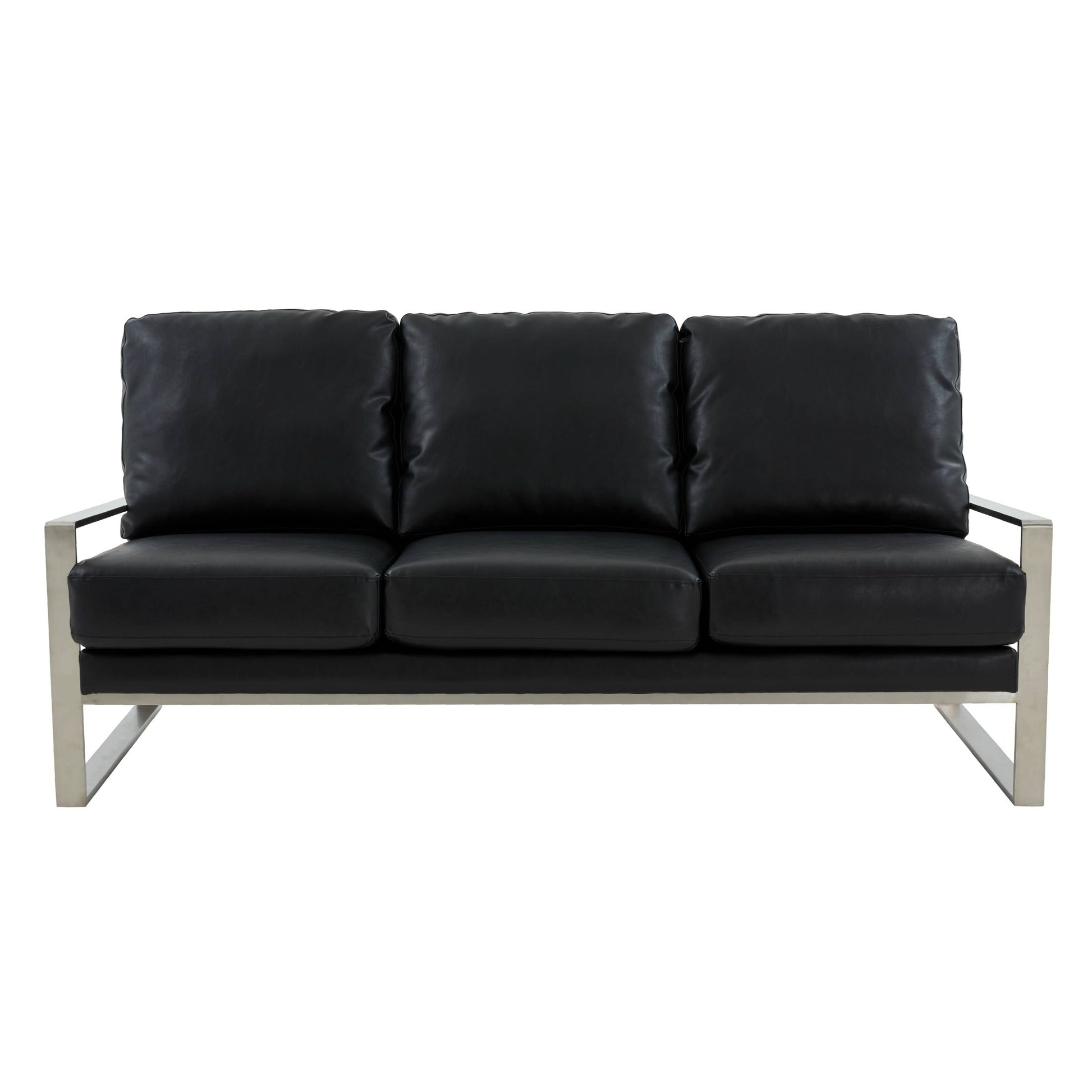 Jefferson 3-Seater Velvet/Leather Full Size Sofa in Stainless Steel