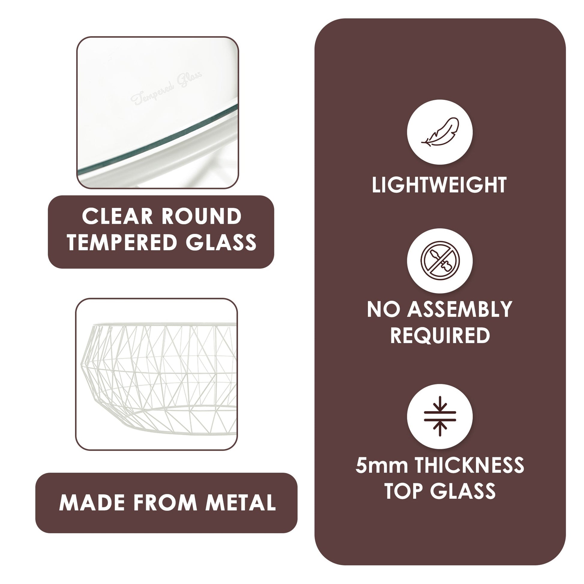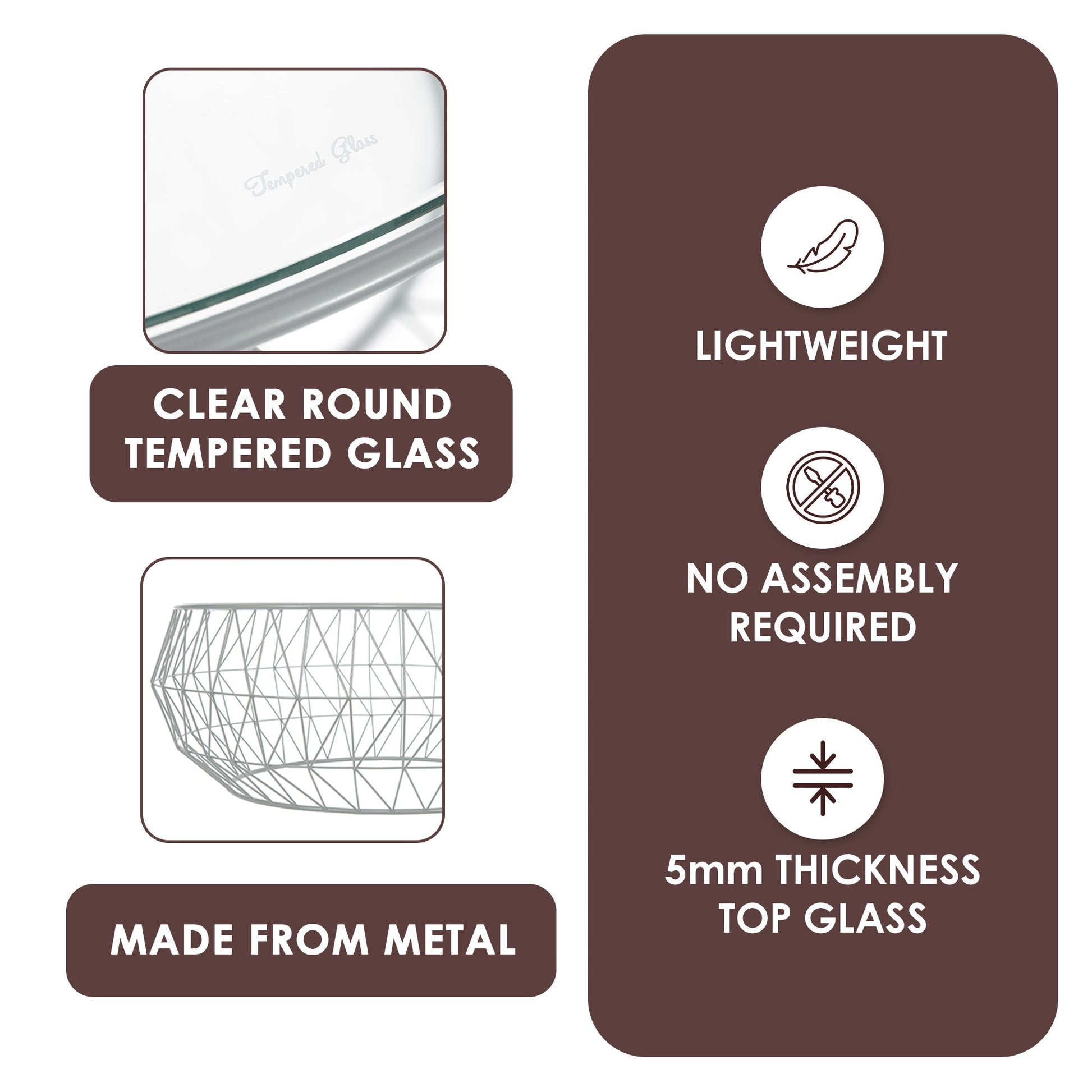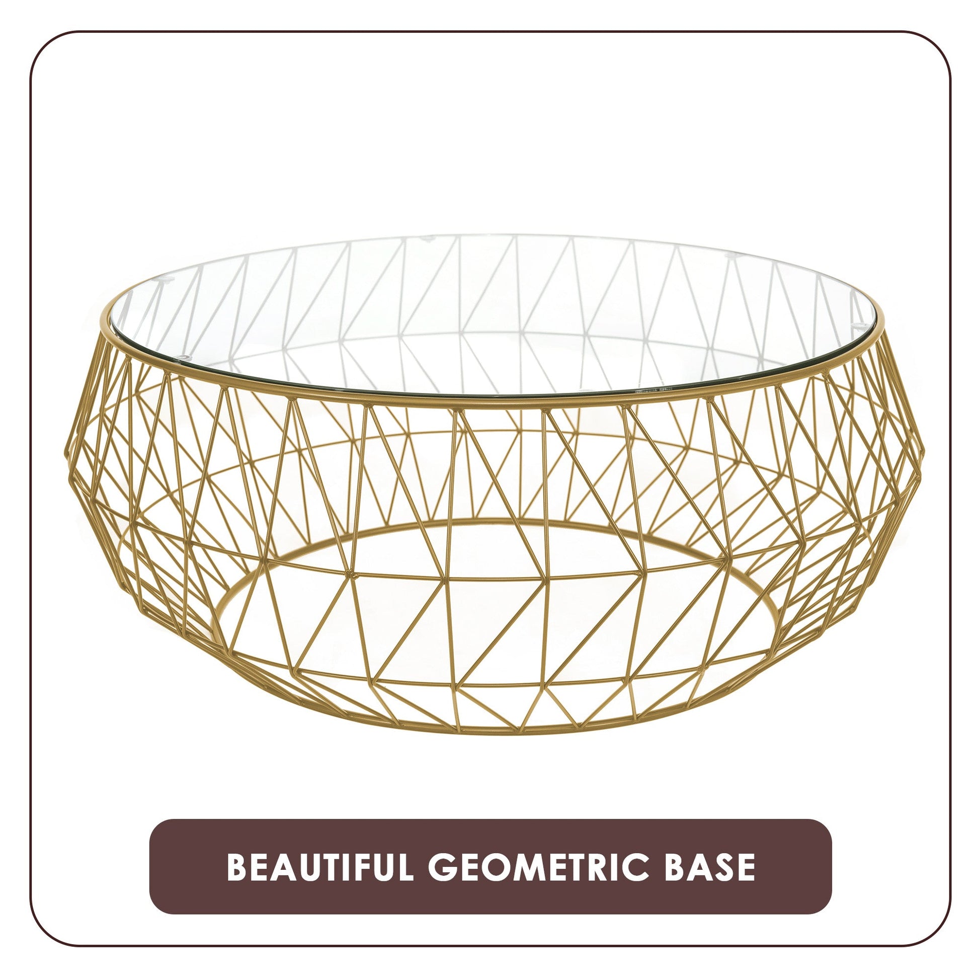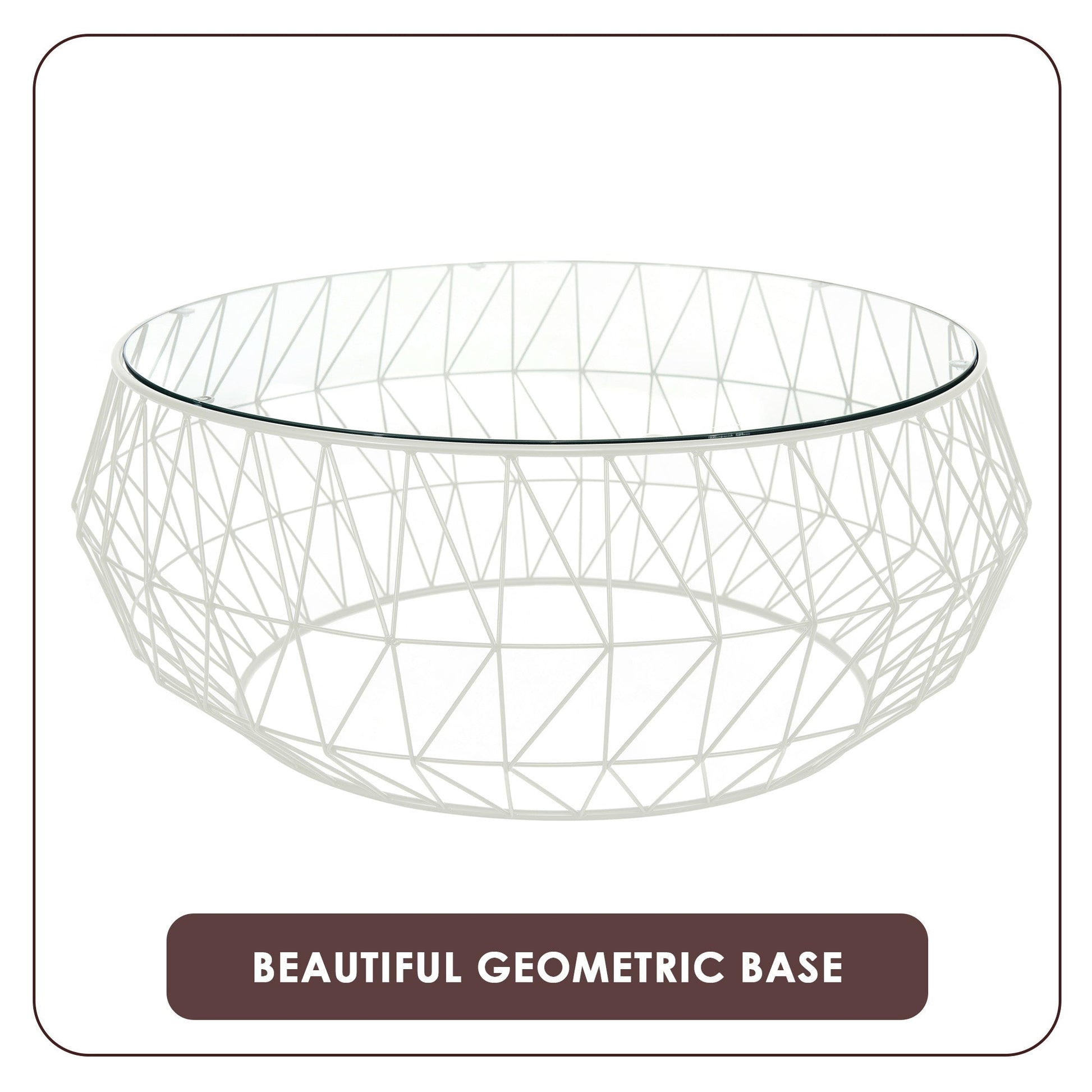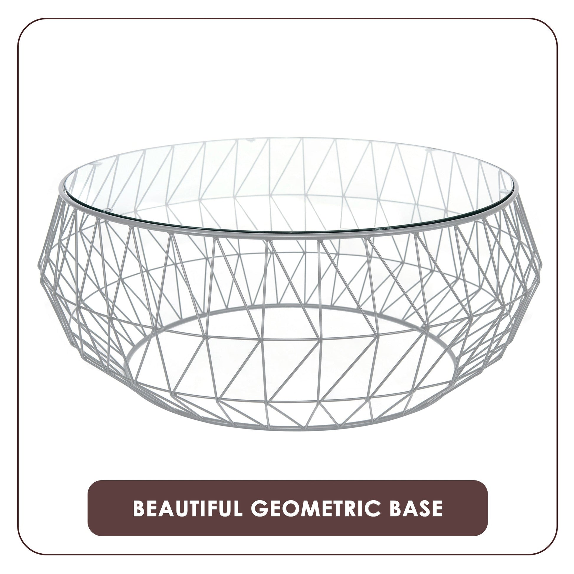 Elevate your living space with the Malibu Modern Round Glass Top Coffee Table. Its sleek chrome base and geometric design add a touch of luxury to any room. The large glass top not only serves as a practical surface, but also beautifully showcases the elegant frame lines. Transform any setting with this stylish and functional piece.