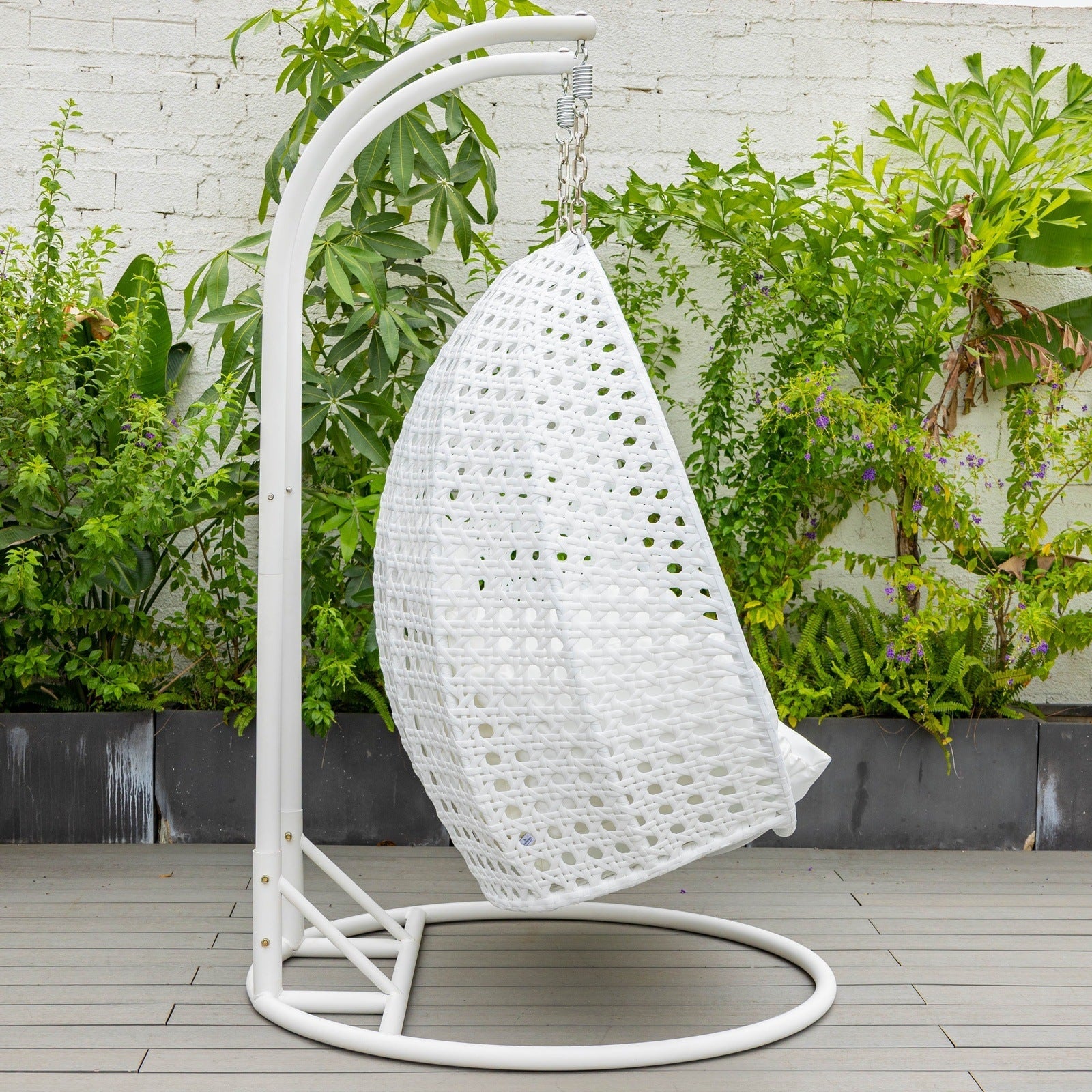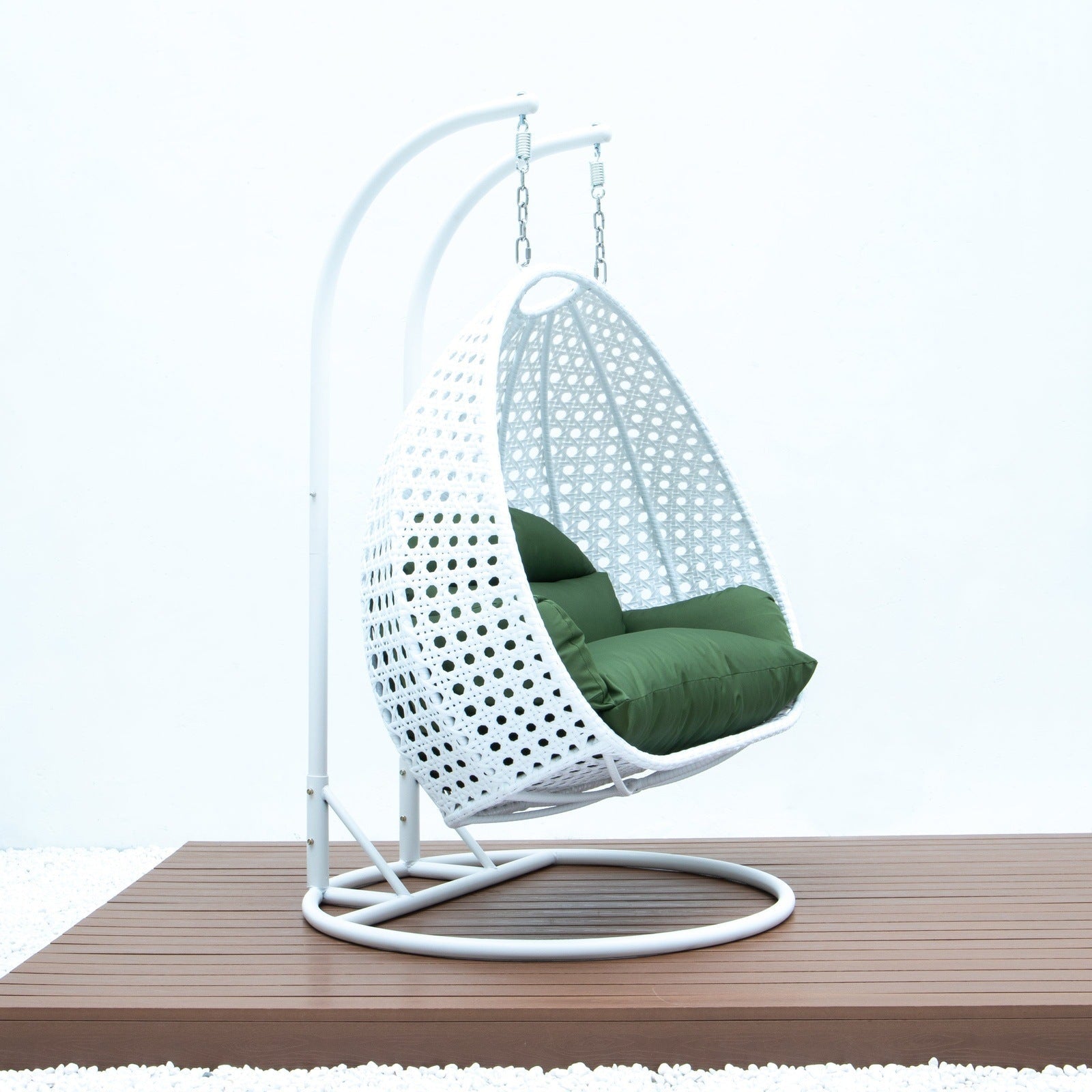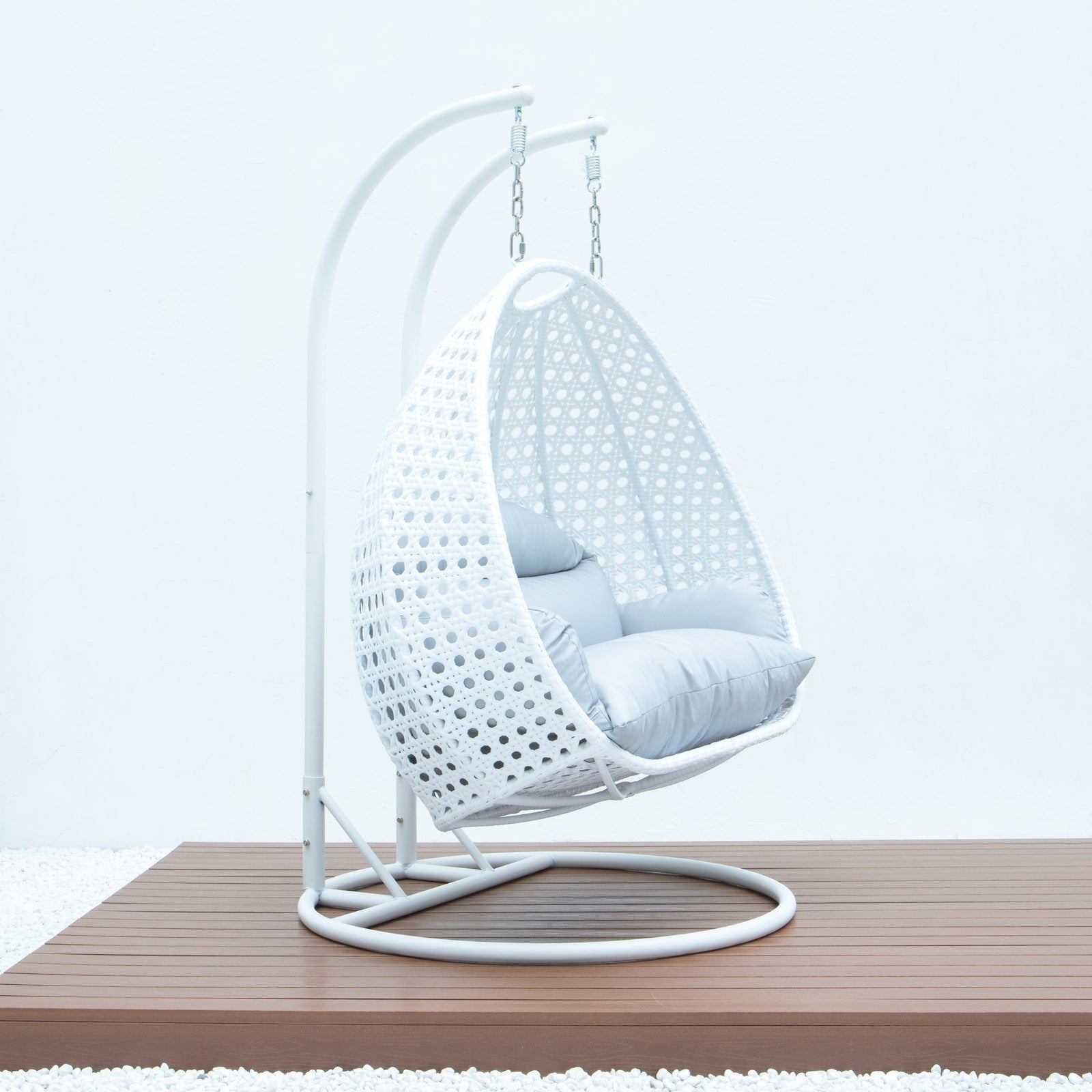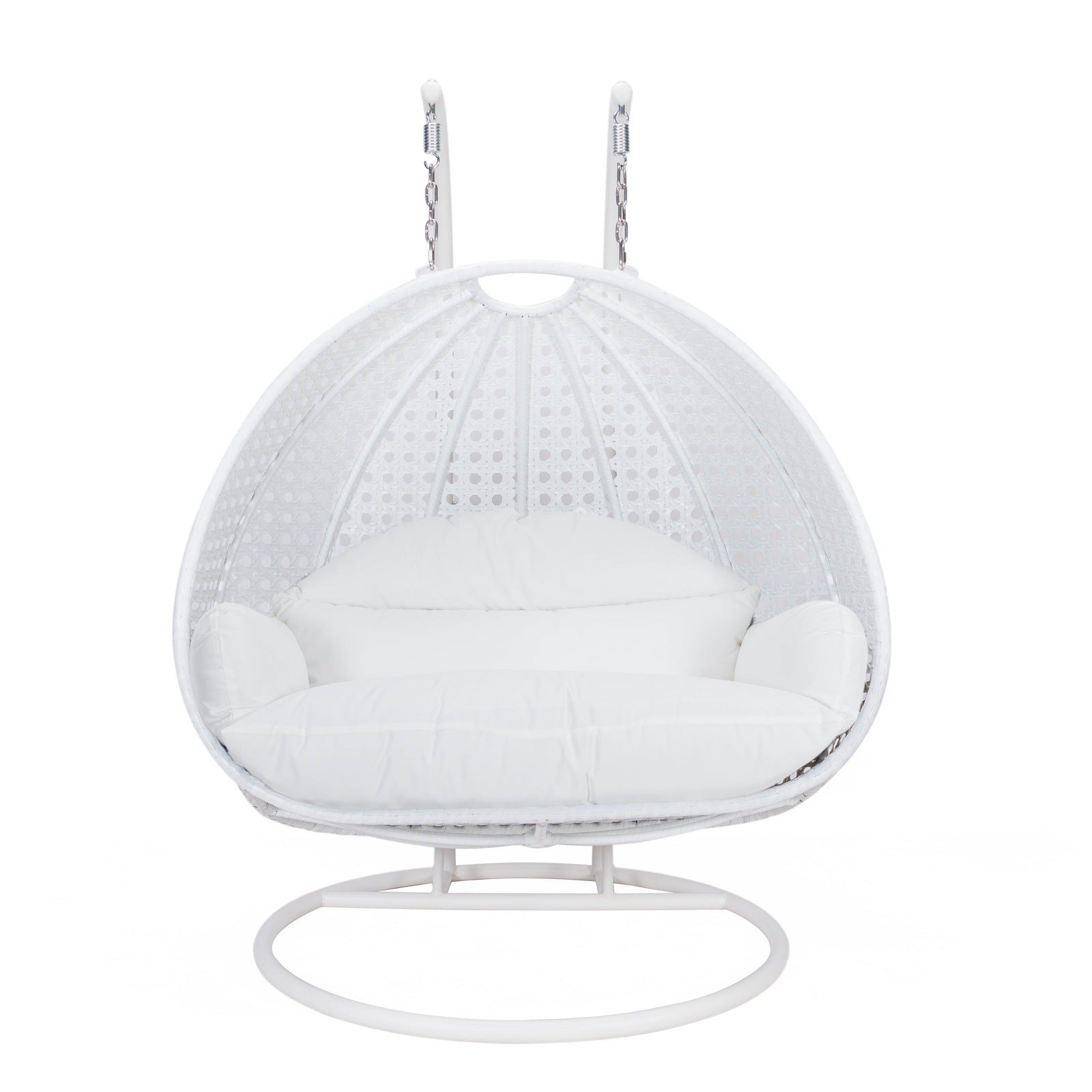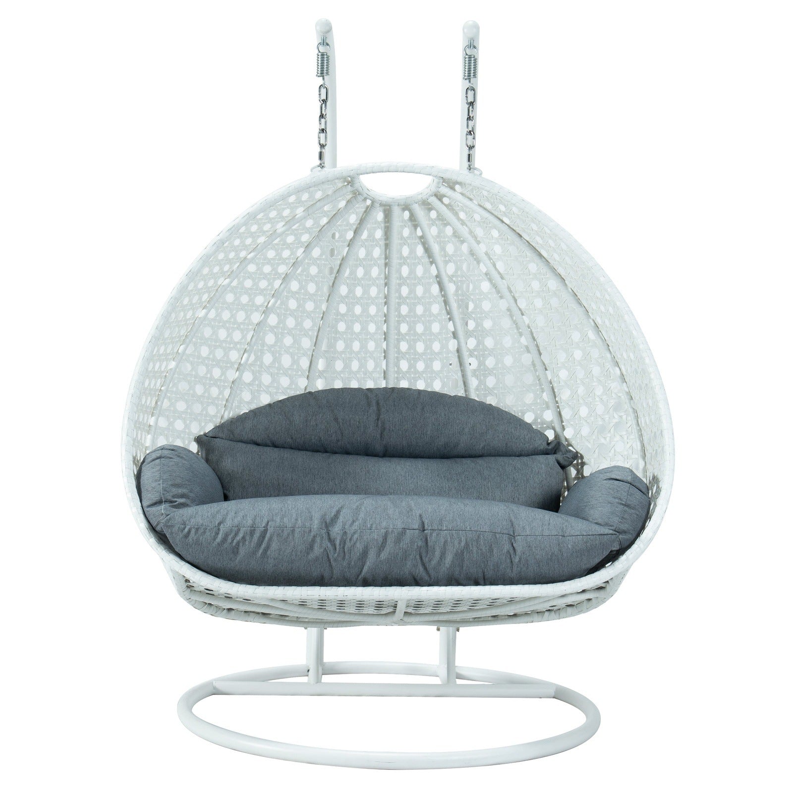 Modern White Wicker Hanging Double Seater Egg Swing Chair
