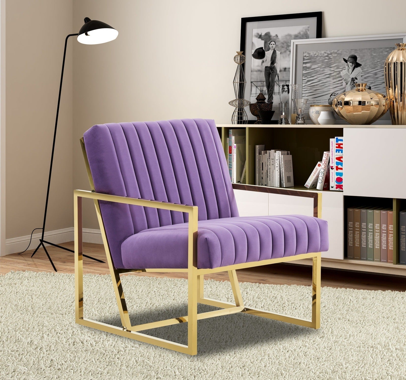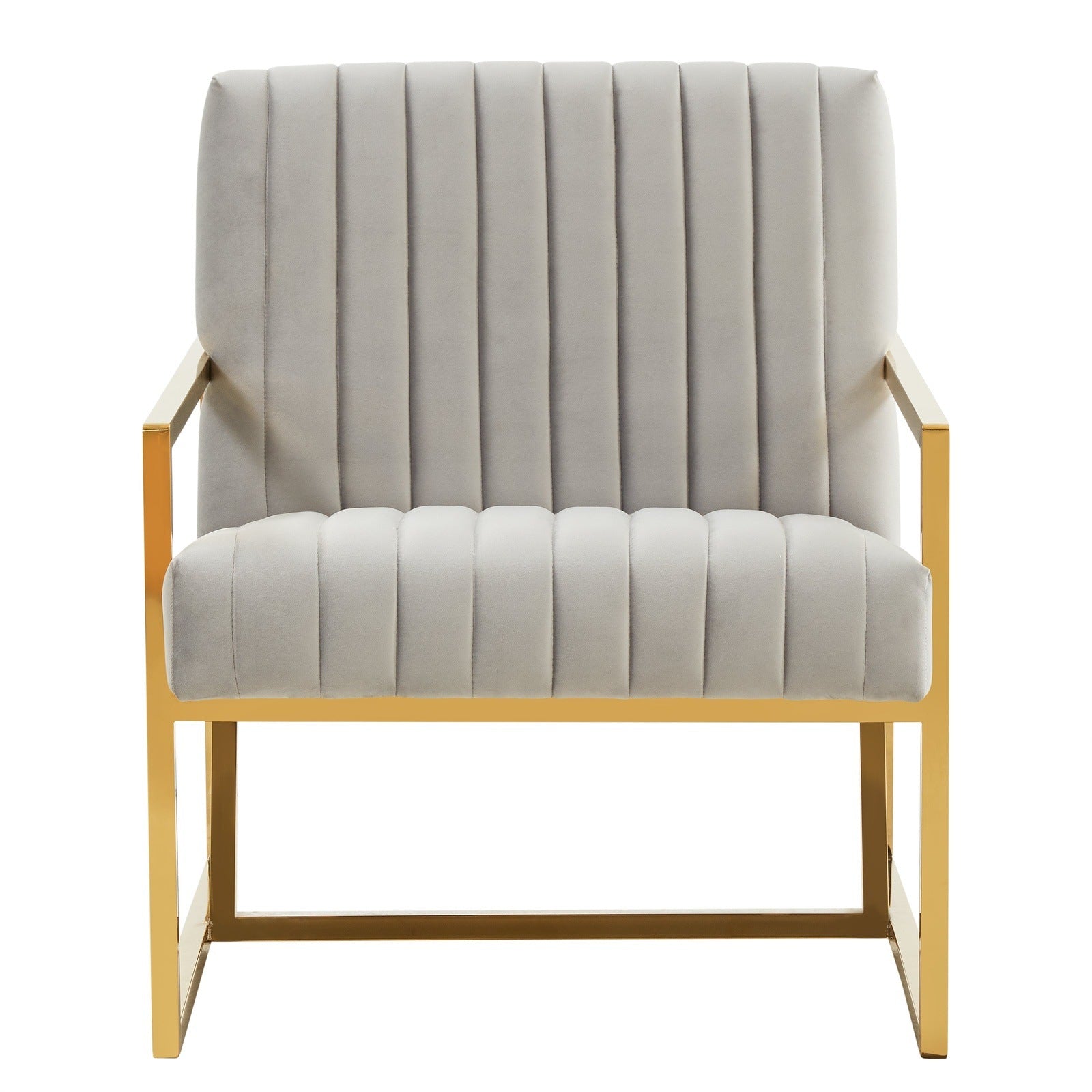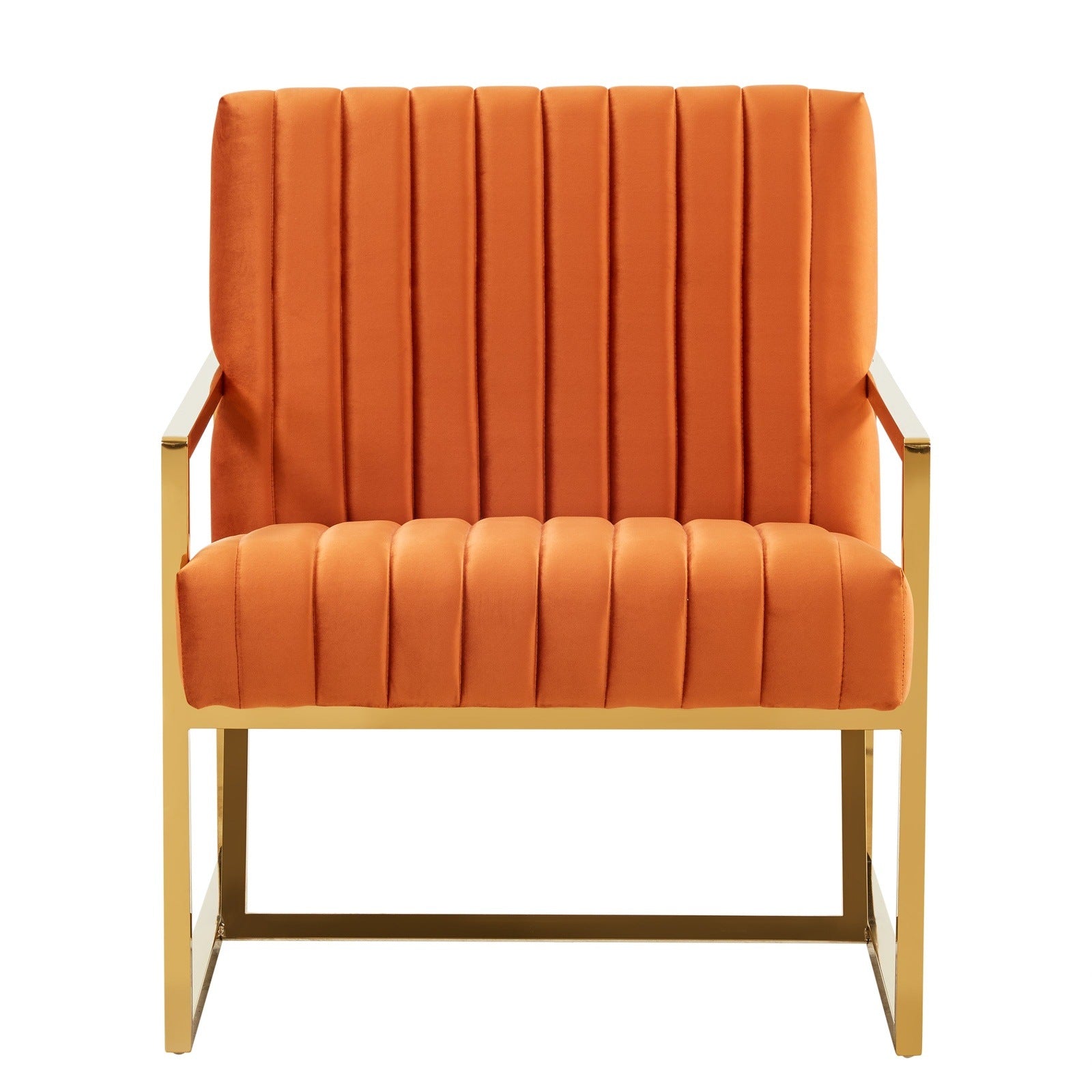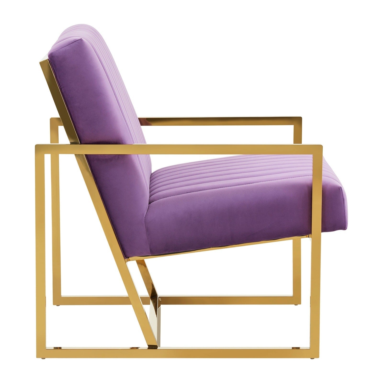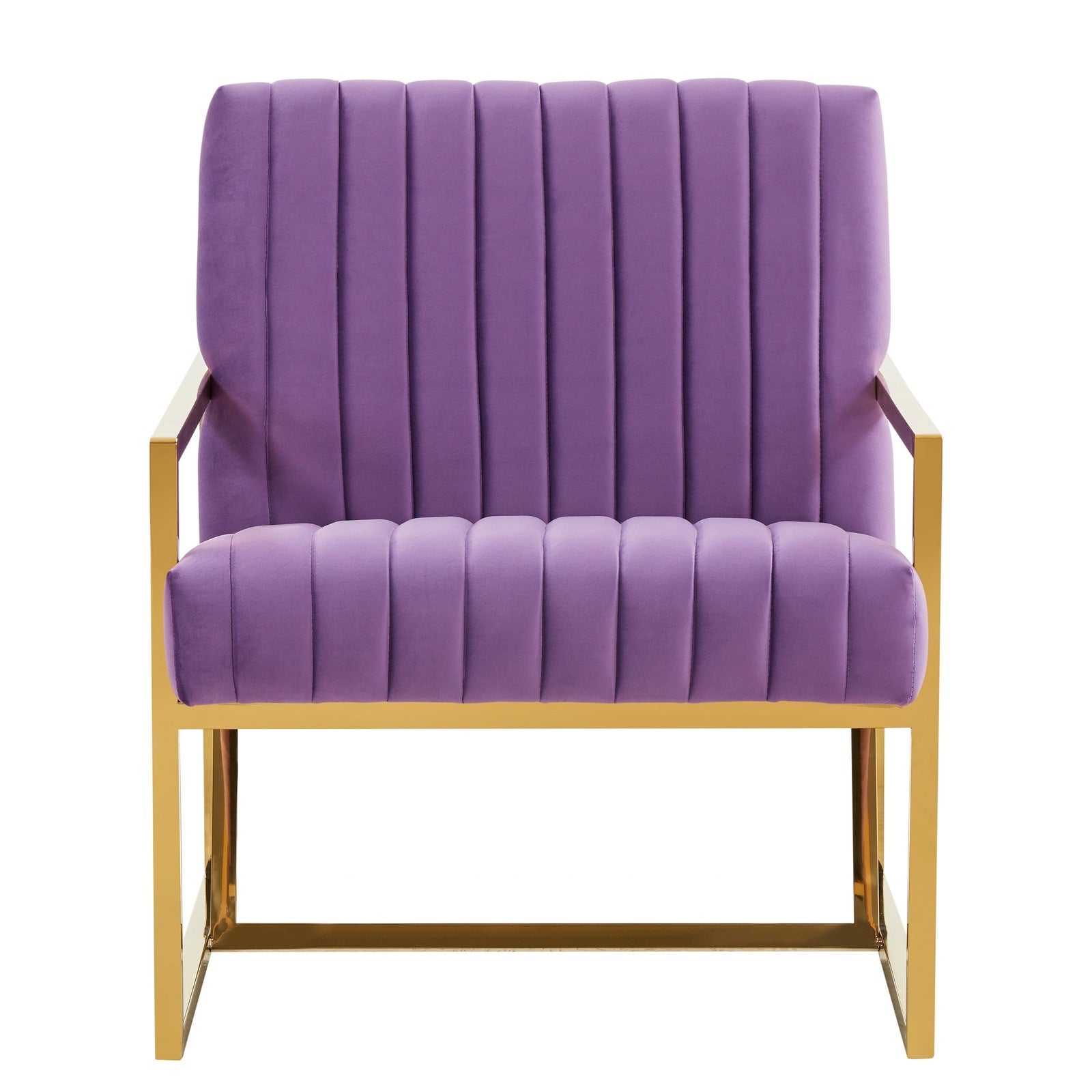 The Montgomery Collection features a classic style that elicits thoughts of modern elegance and grace. Add glamorous definition to your interior space with a Montgomery armchair, Designed with modern pinstripe lines and scaled for use anywhere in your home, the chair’s seating area is covered in an elegant velvet that is set off by the splendid gold metal legs. The chair is built with durability and supportive comfort in mind, from the sturdy hardwood solids in the frame to the stainless-steel legs to the high-density foam and fiber padding in the seat and back. The Accent Armchair brings a regal ambiance to this piece, making this a glamorous addition to your home.