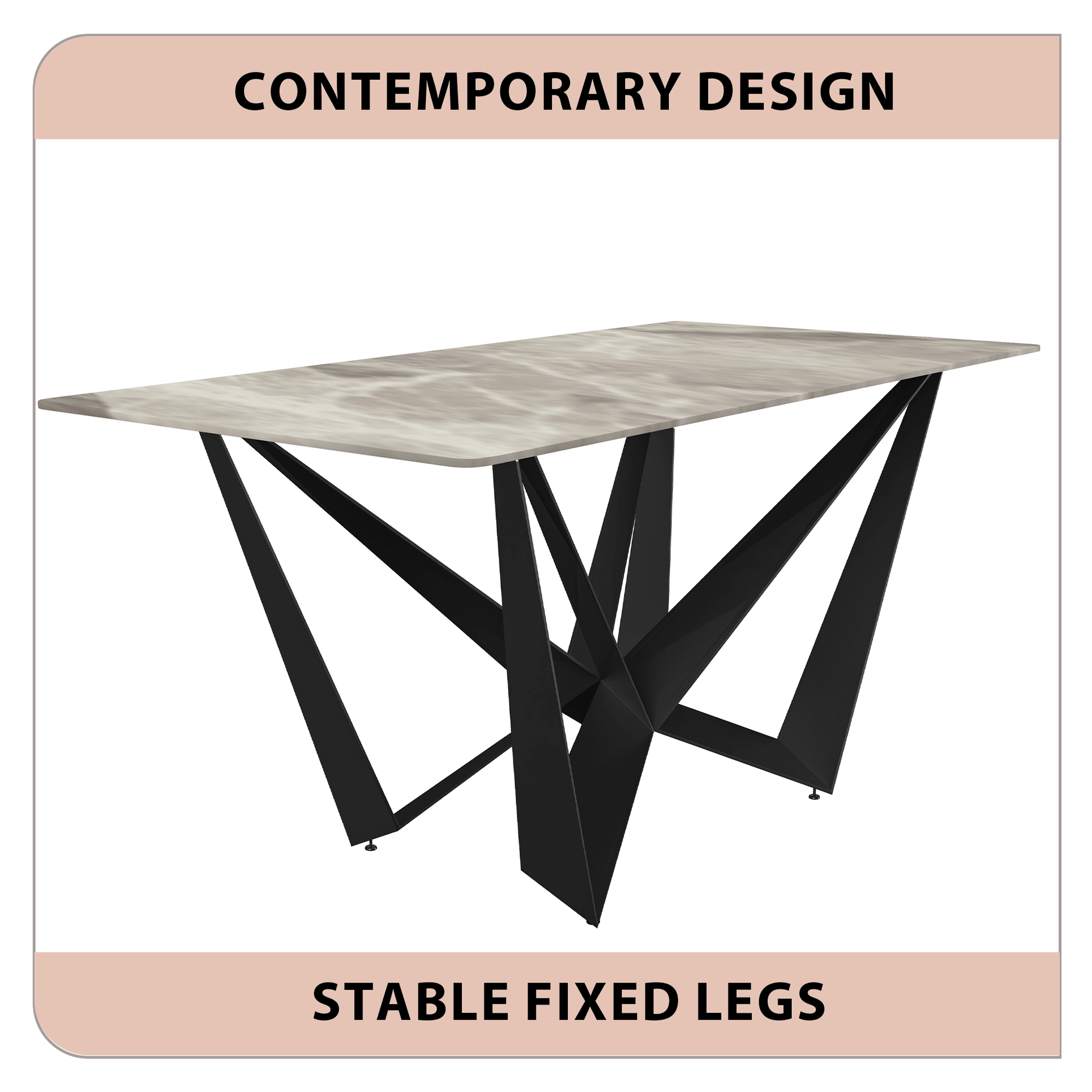 Nuvor Dining Table with Rectangular Sintered Stone/Glass Tabletop and Steel Legs