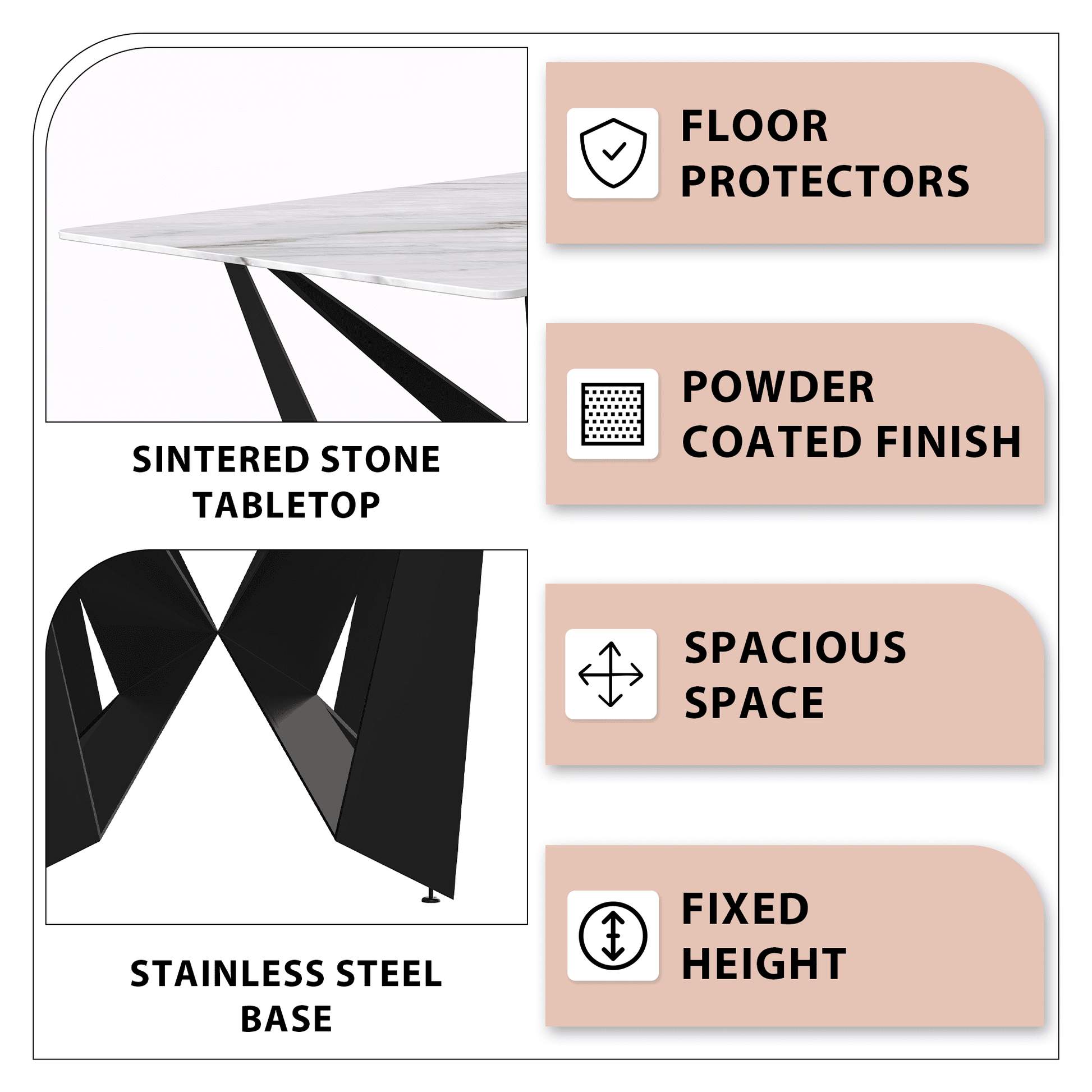 Introducing the Nuvor Dining Table - a perfect blend of contemporary style and practicality. Its sleek, rectangular design adds a modern touch to any space, while the robust steel base ensures stability and durability. Choose between a sophisticated sintered stone or timeless glass tabletop. With a weight capacity of up to 440 lbs, this table offers both elegance and functionality for daily use.