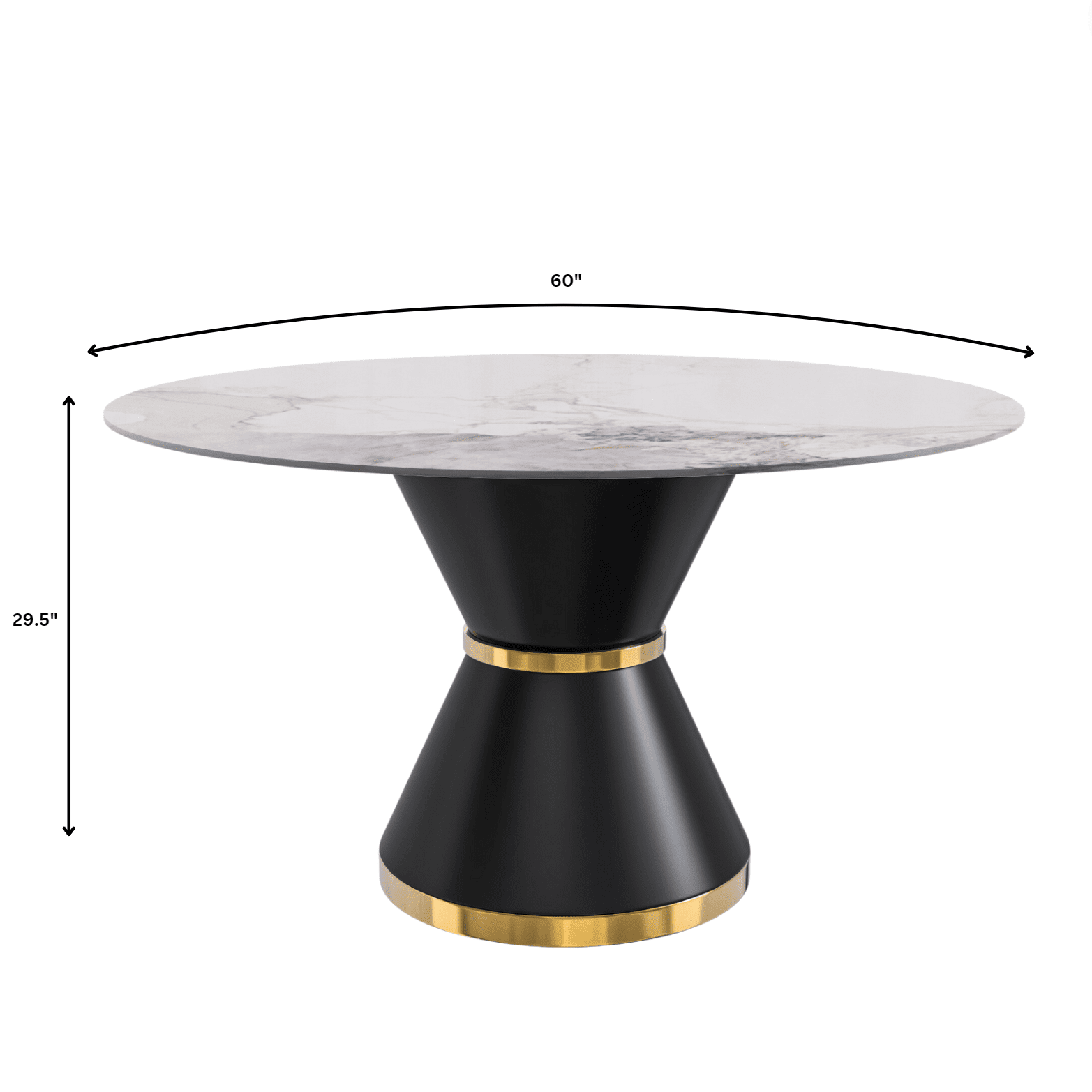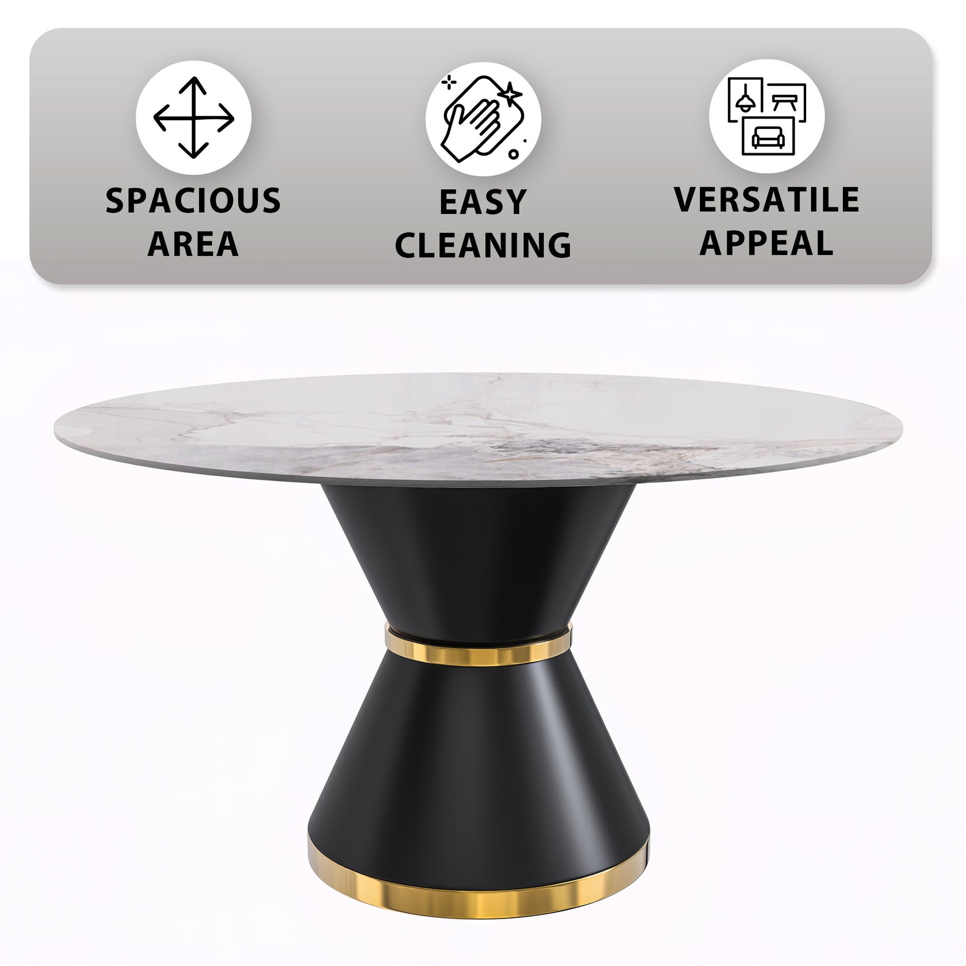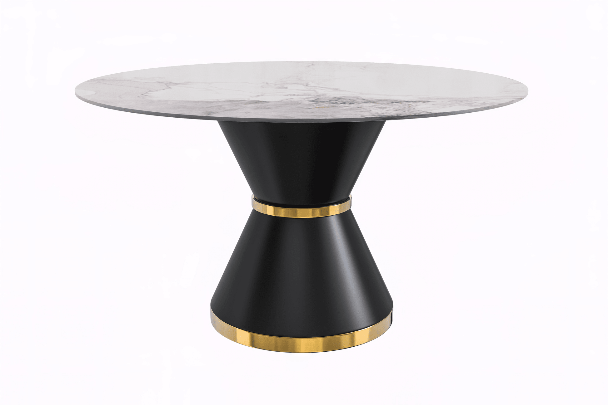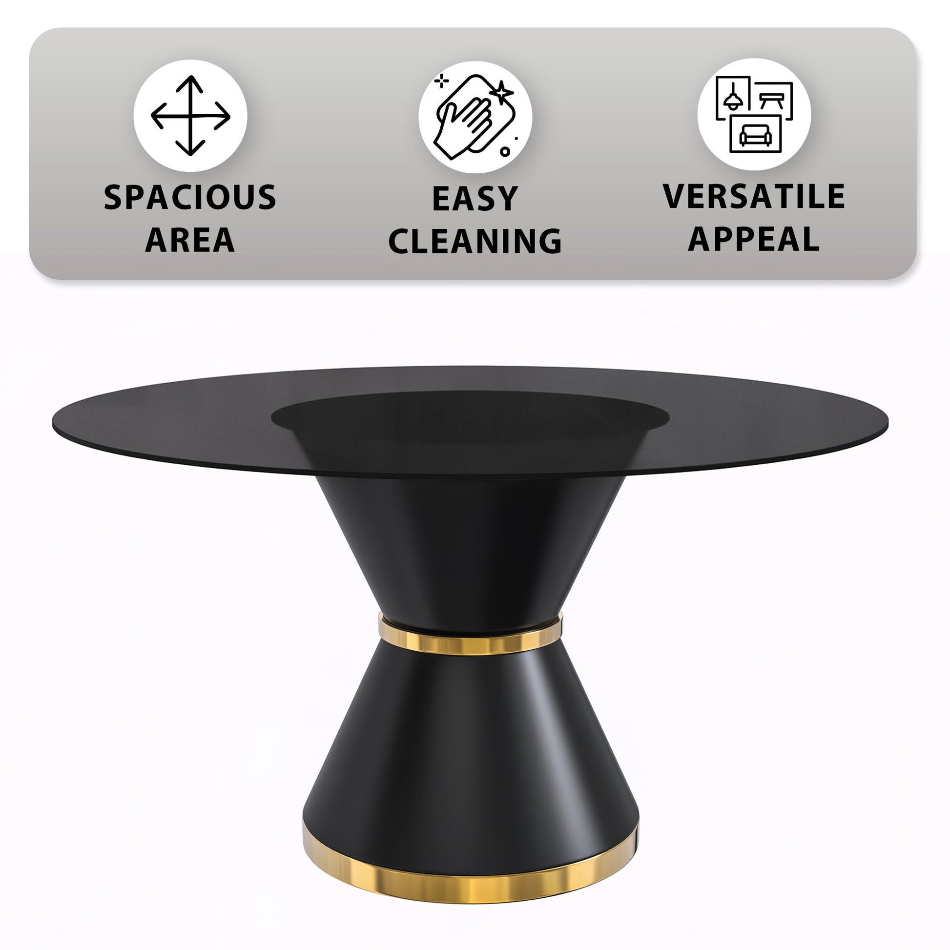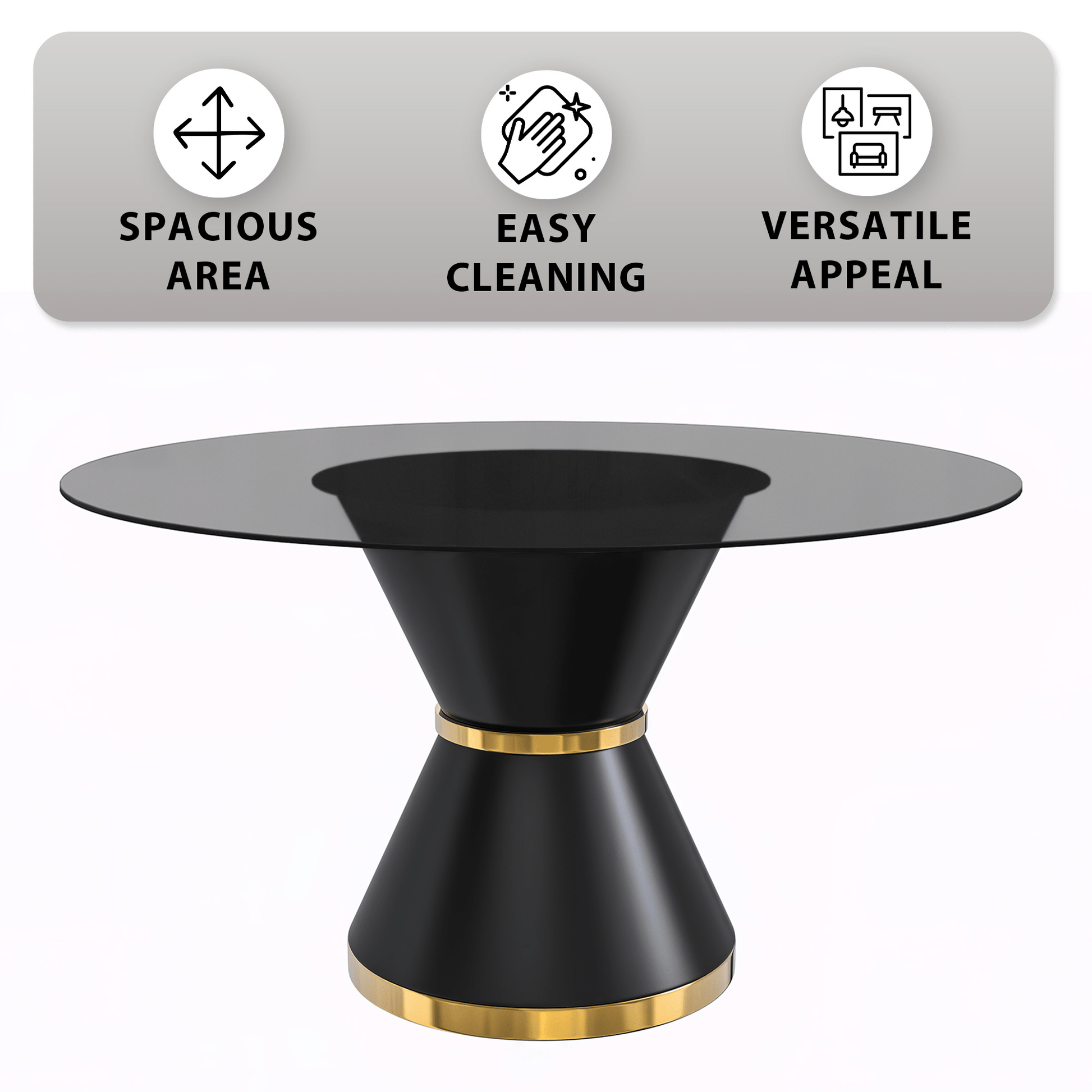 Elevate your dining space with our sleek and contemporary Qorvus Dining Table. Its stainless steel pedestal base adds a modern touch, while the glass/stone tabletop provides a functional yet stylish centerpiece for any occasion. Versatile and fitting for various interior styles, this table is both practical and aesthetically pleasing.