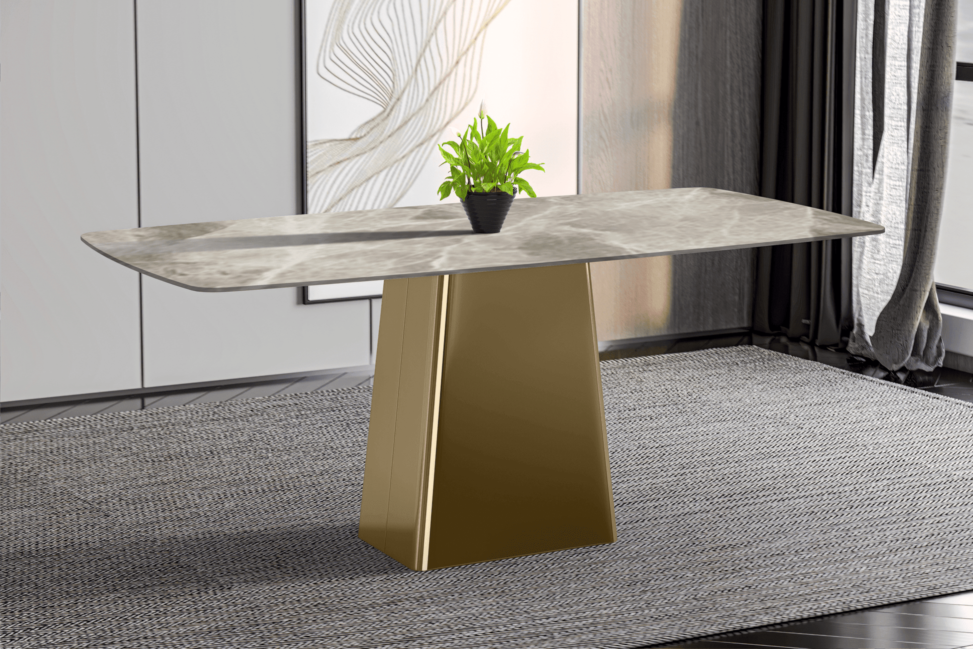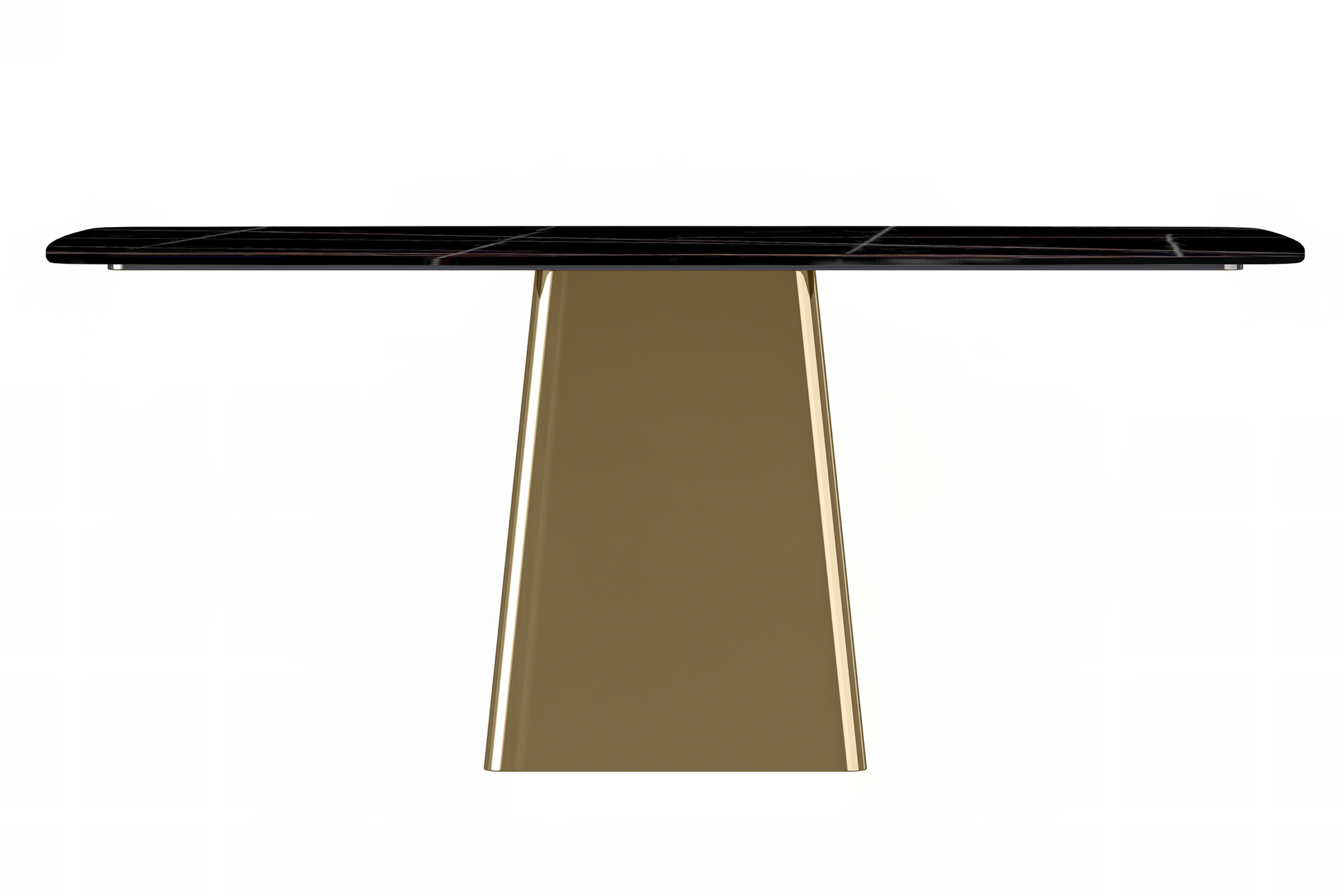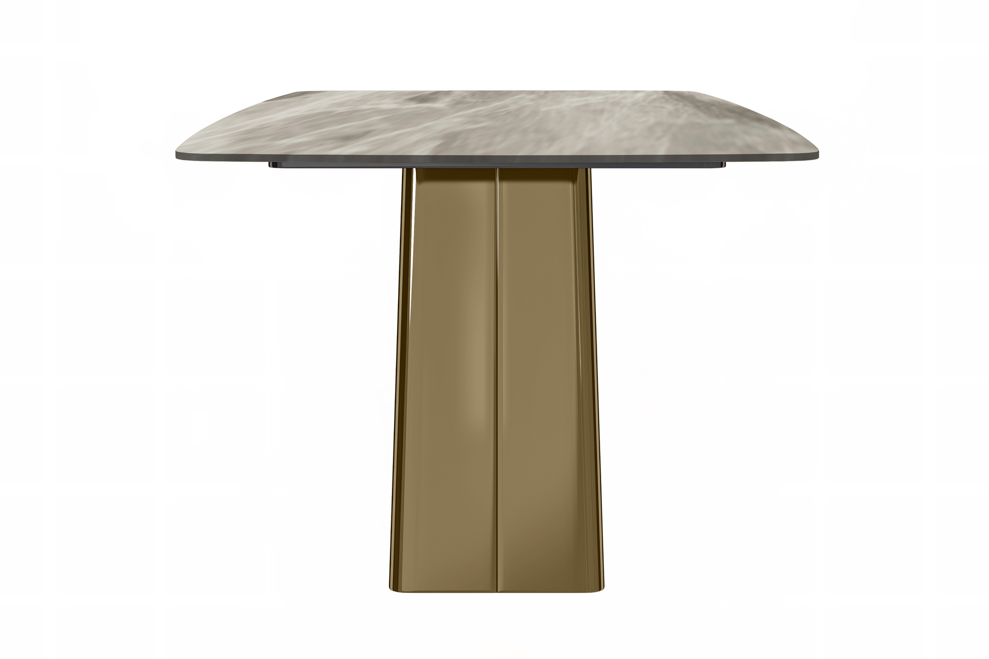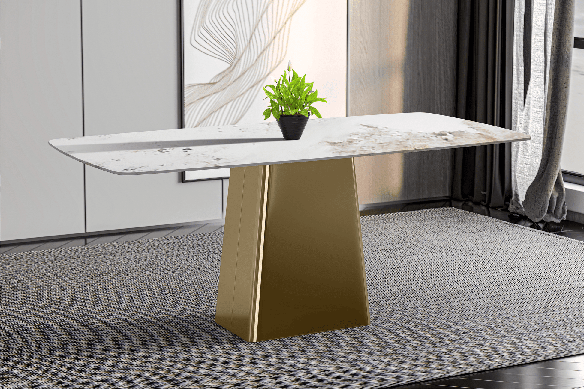 Quinix Rectangular Dining Table with Sintered Stone or Glass Rectangular Top and Gold Stainless Steel Base
