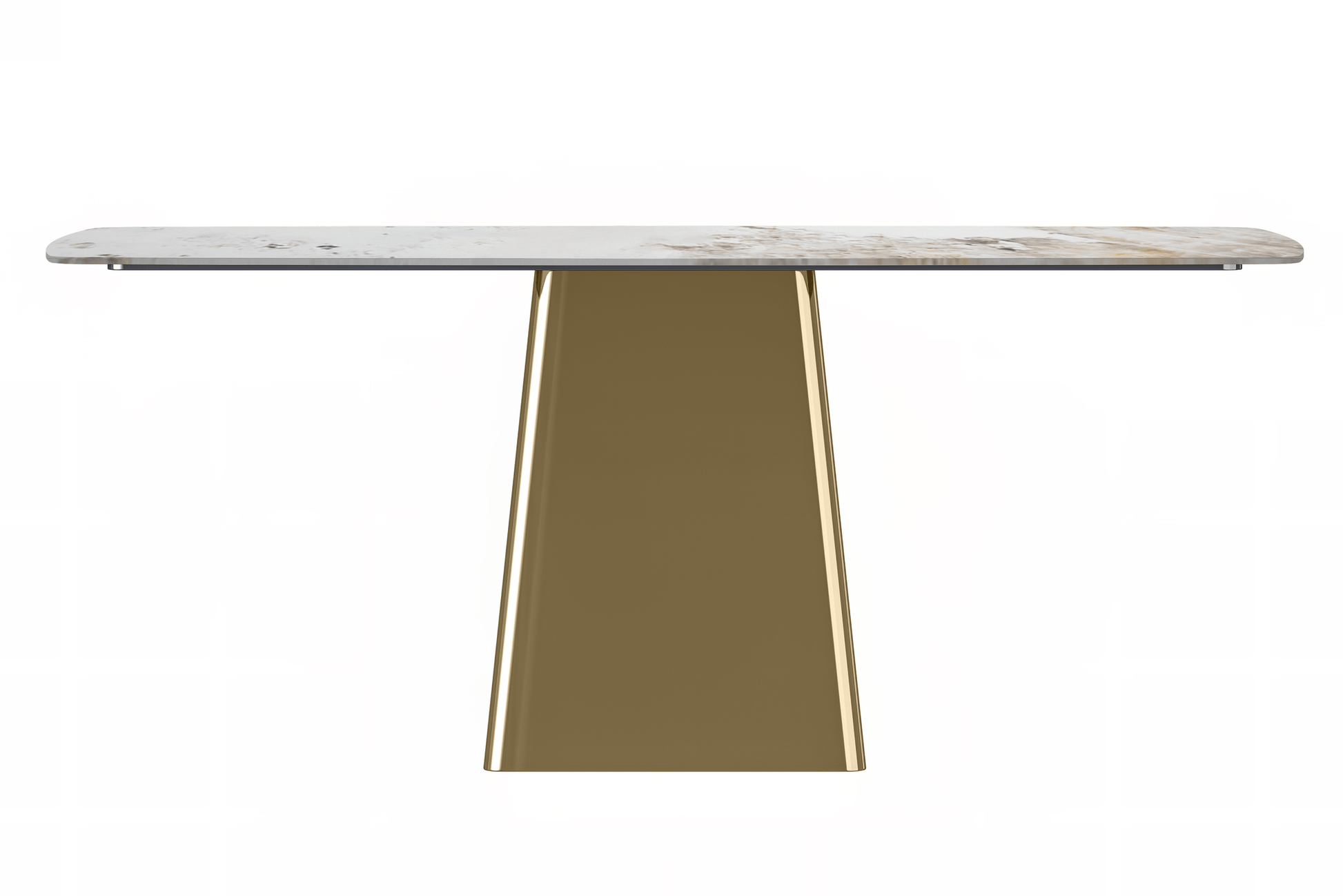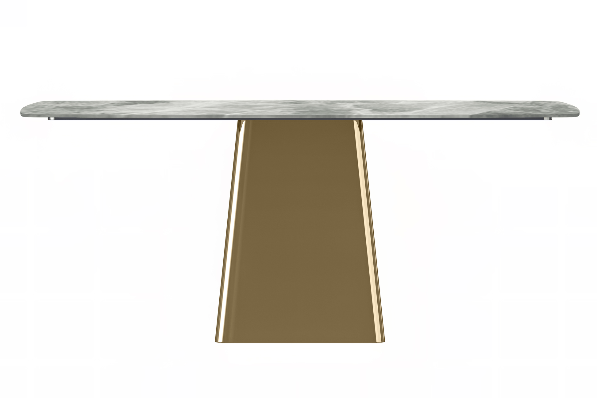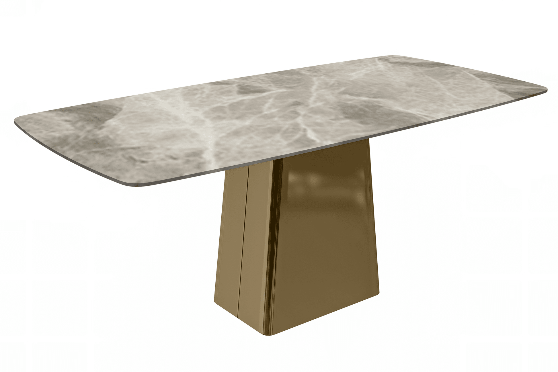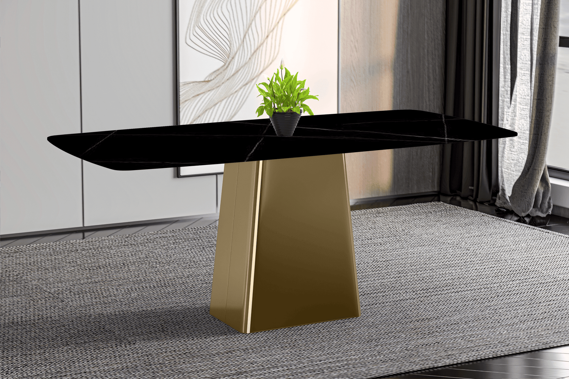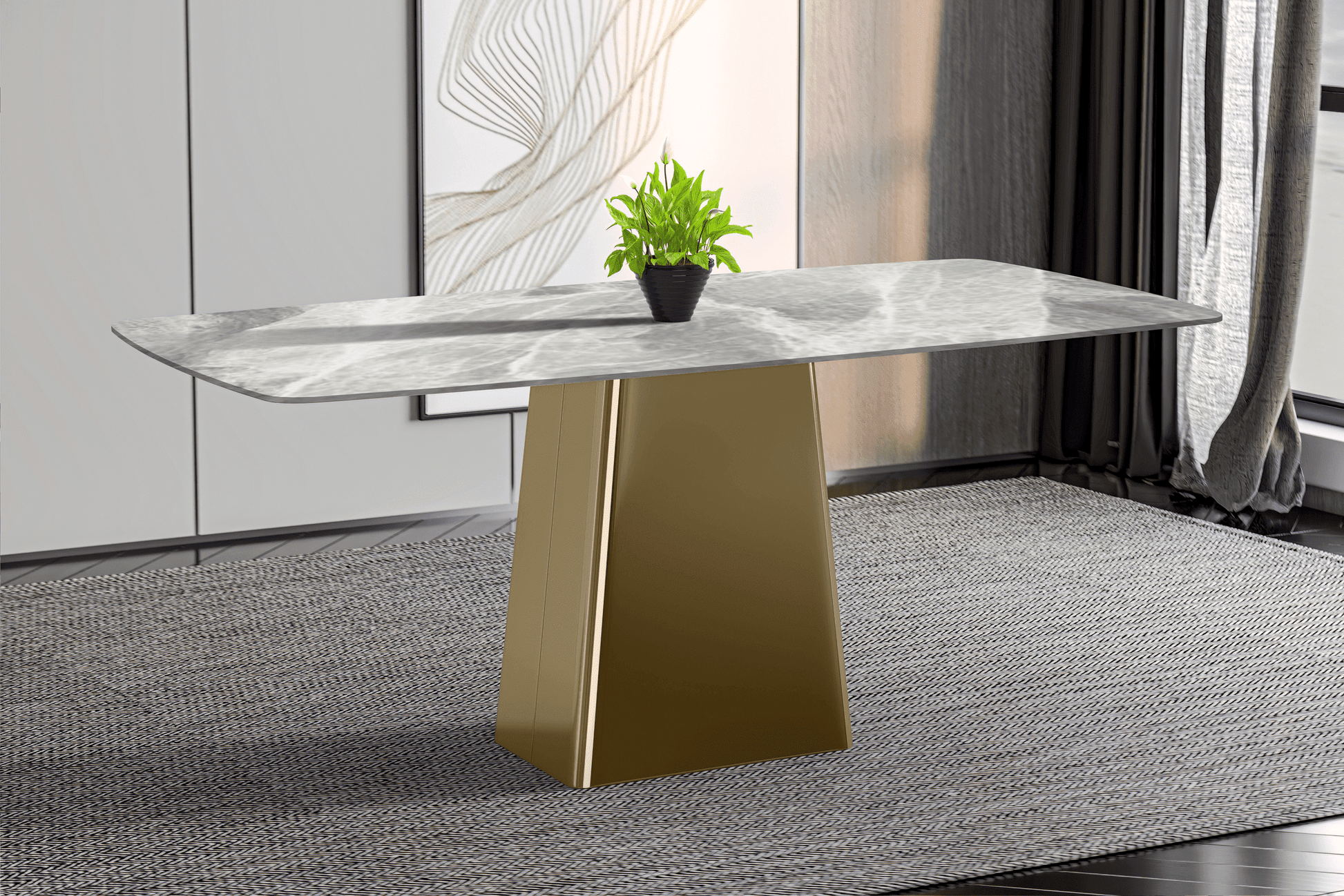 Quinix Rectangular Dining Table with Sintered Stone or Glass Rectangular Top and Gold Stainless Steel Base