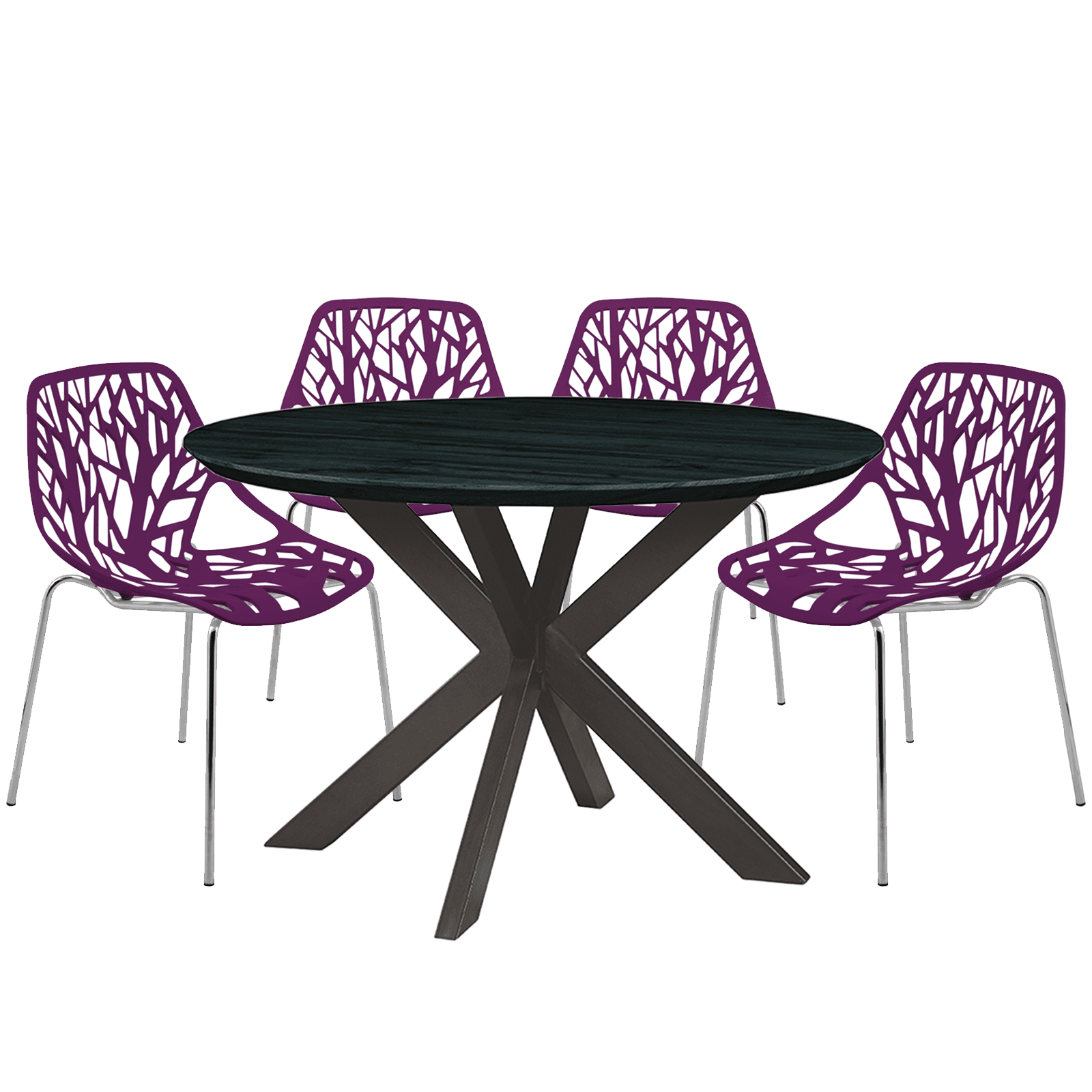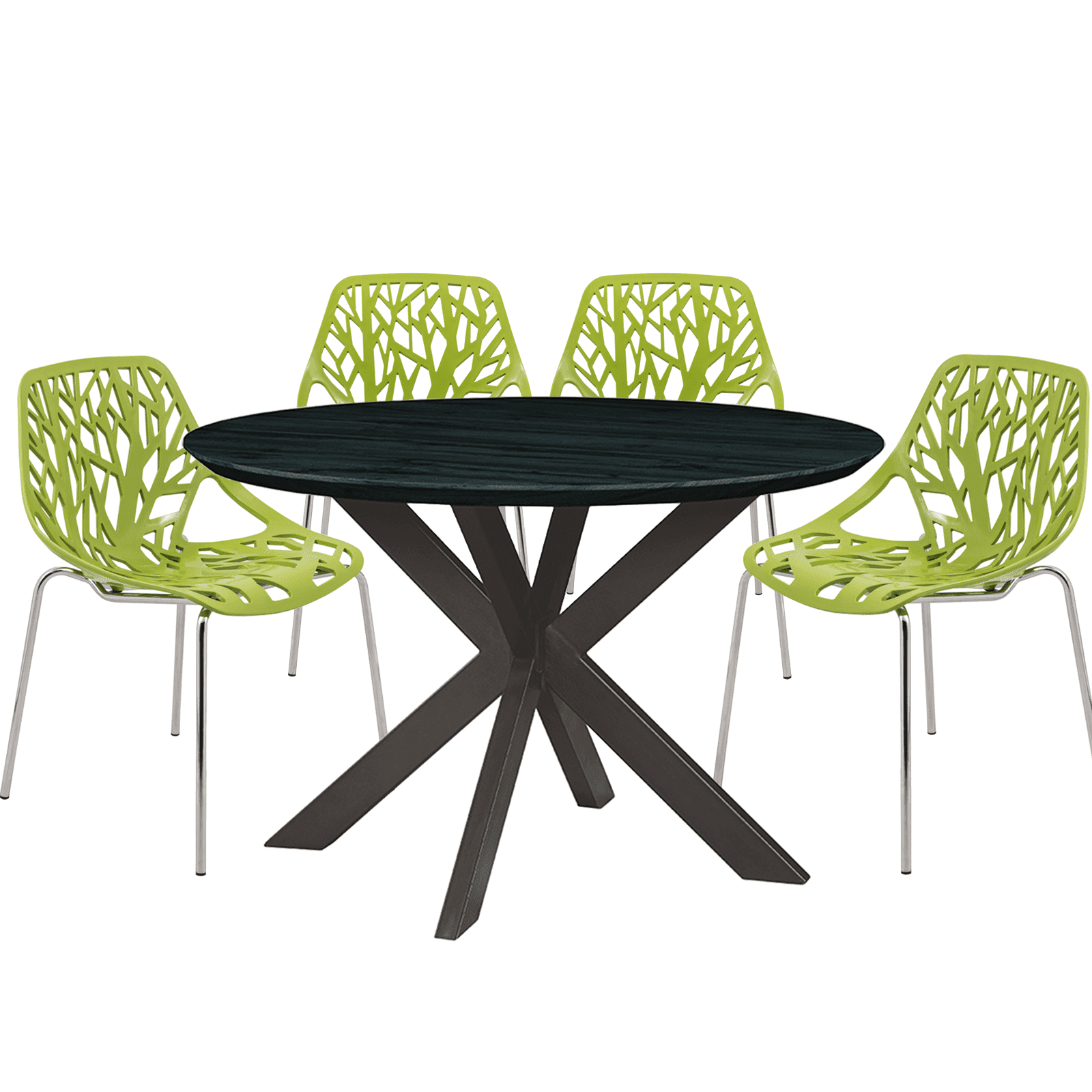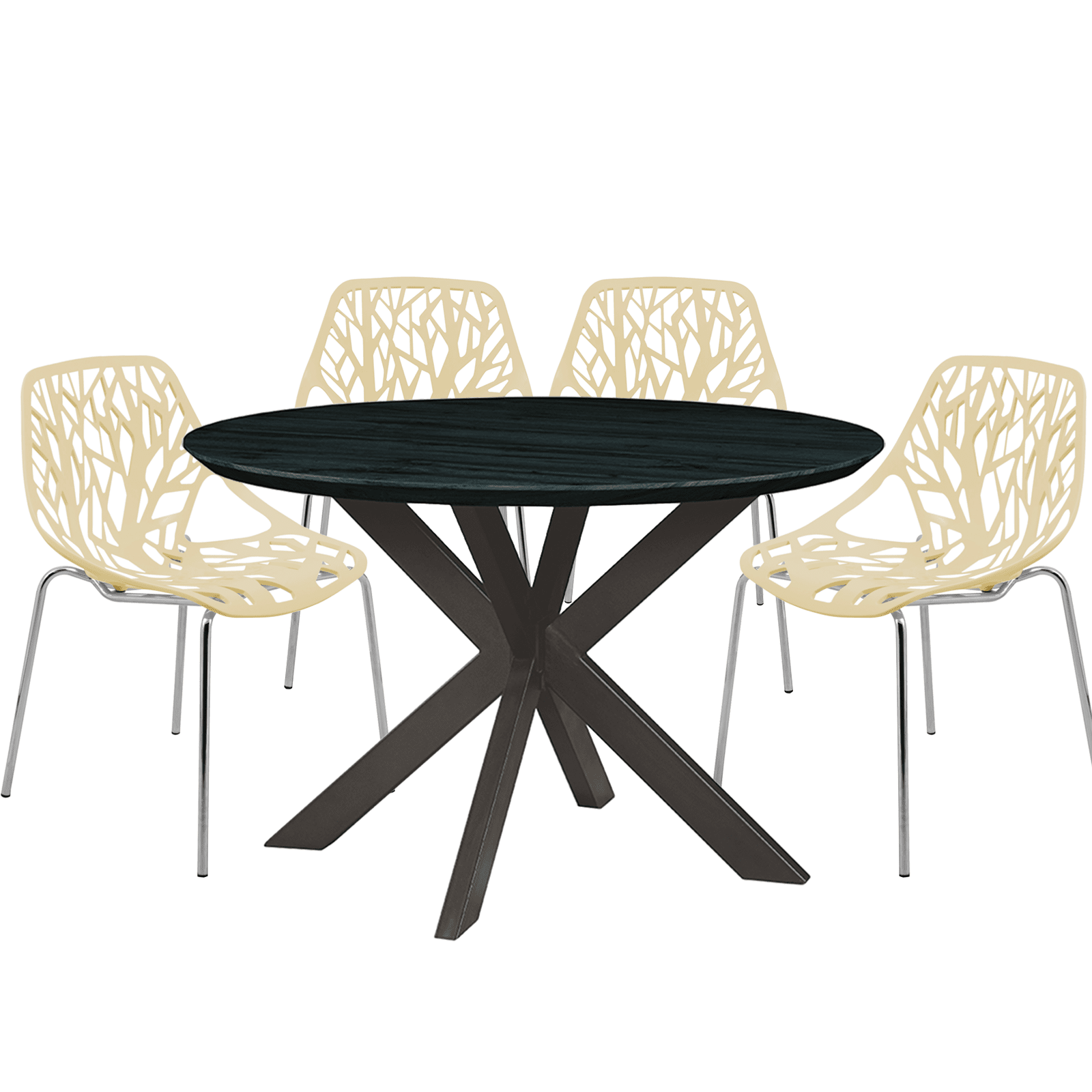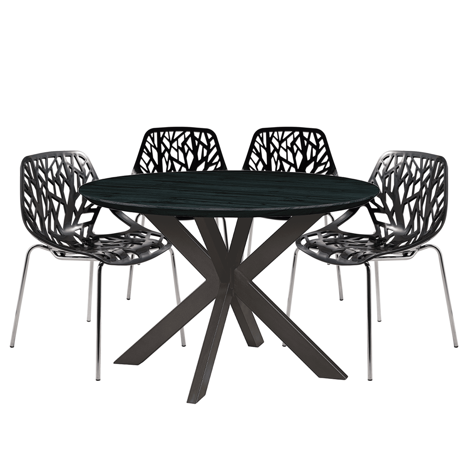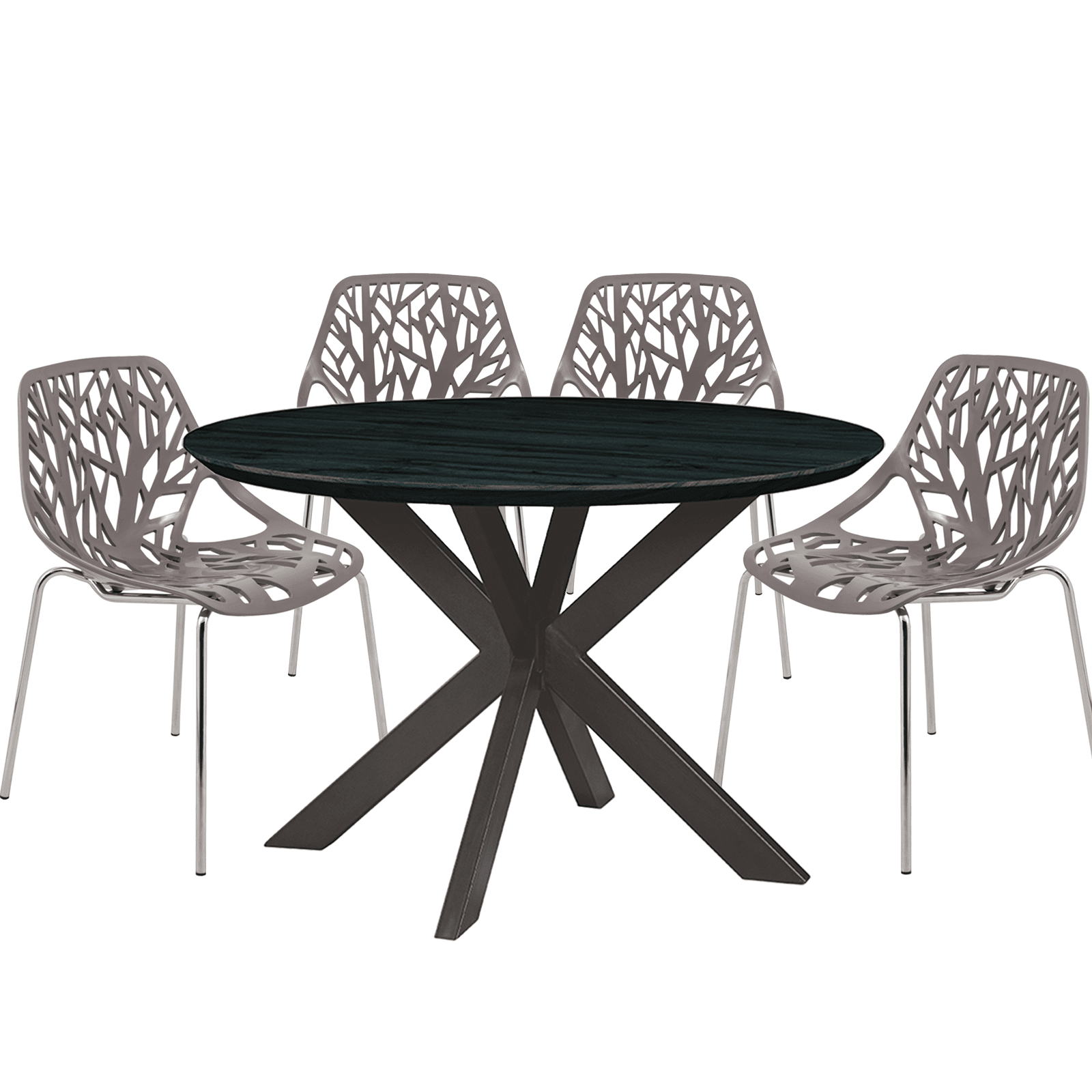 Ravenna 5-Piece Dining Set: 4 Stackable Plastic Chairs & Round Table With Geometric Base