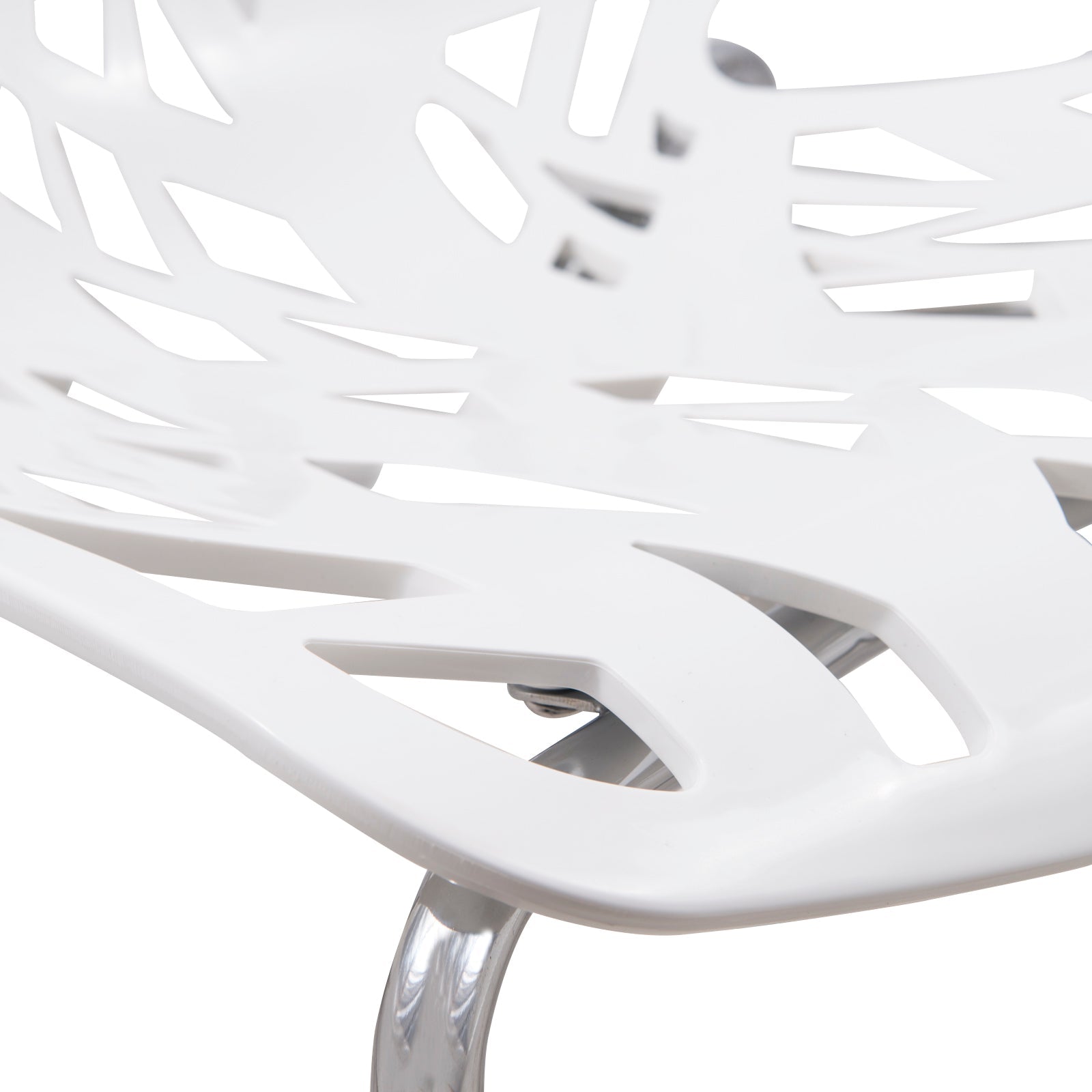 Elevate your dining experience with the Ravenna Modern 5-Piece Metal Dining Set. The sleek design features 4 stackable plastic chairs and a round wood table with a geometric base, providing both style and functionality. Perfect for small spaces, this set offers a contemporary touch to any room.