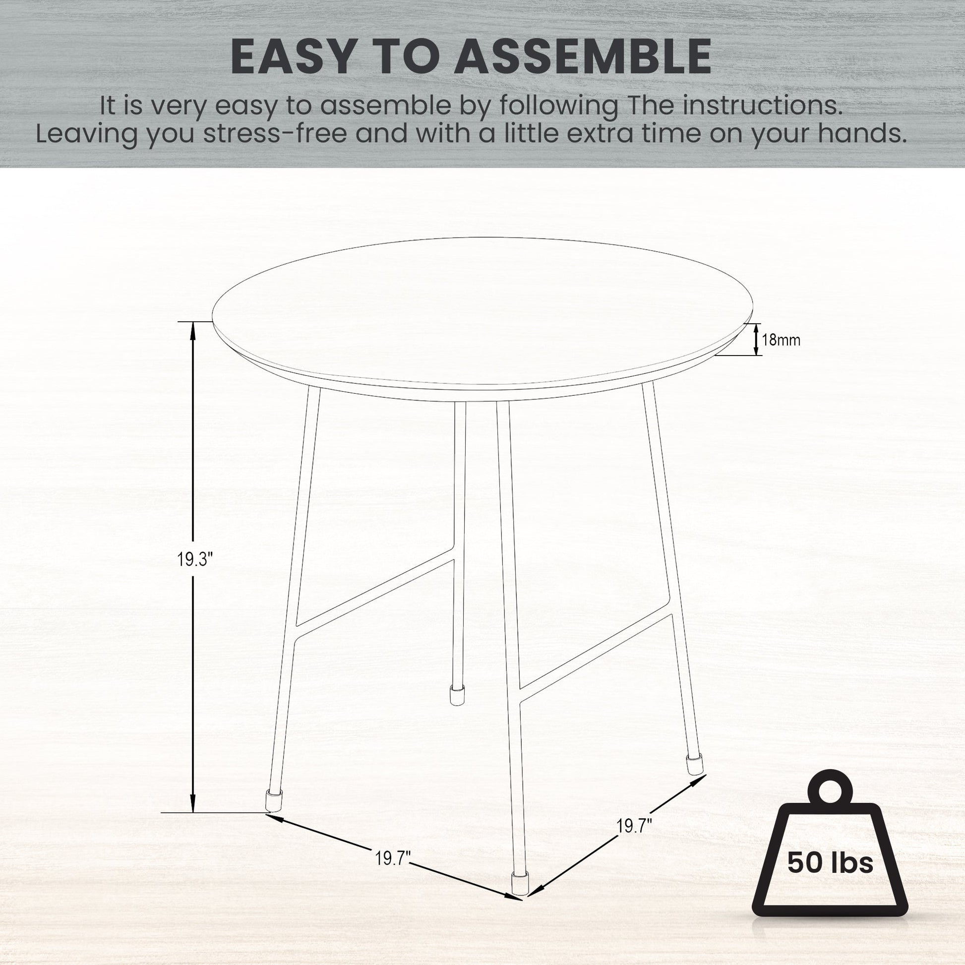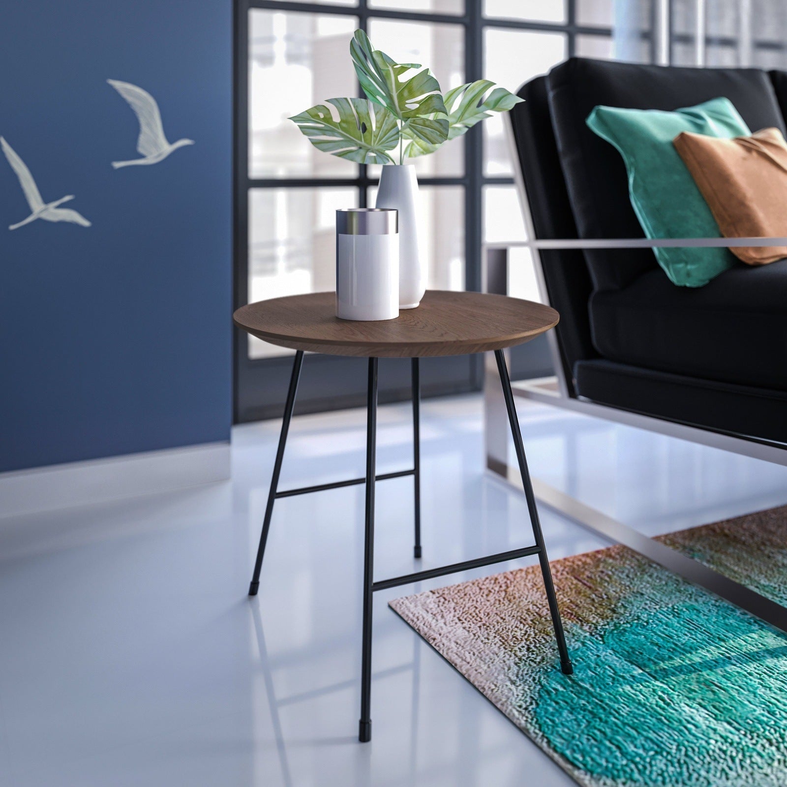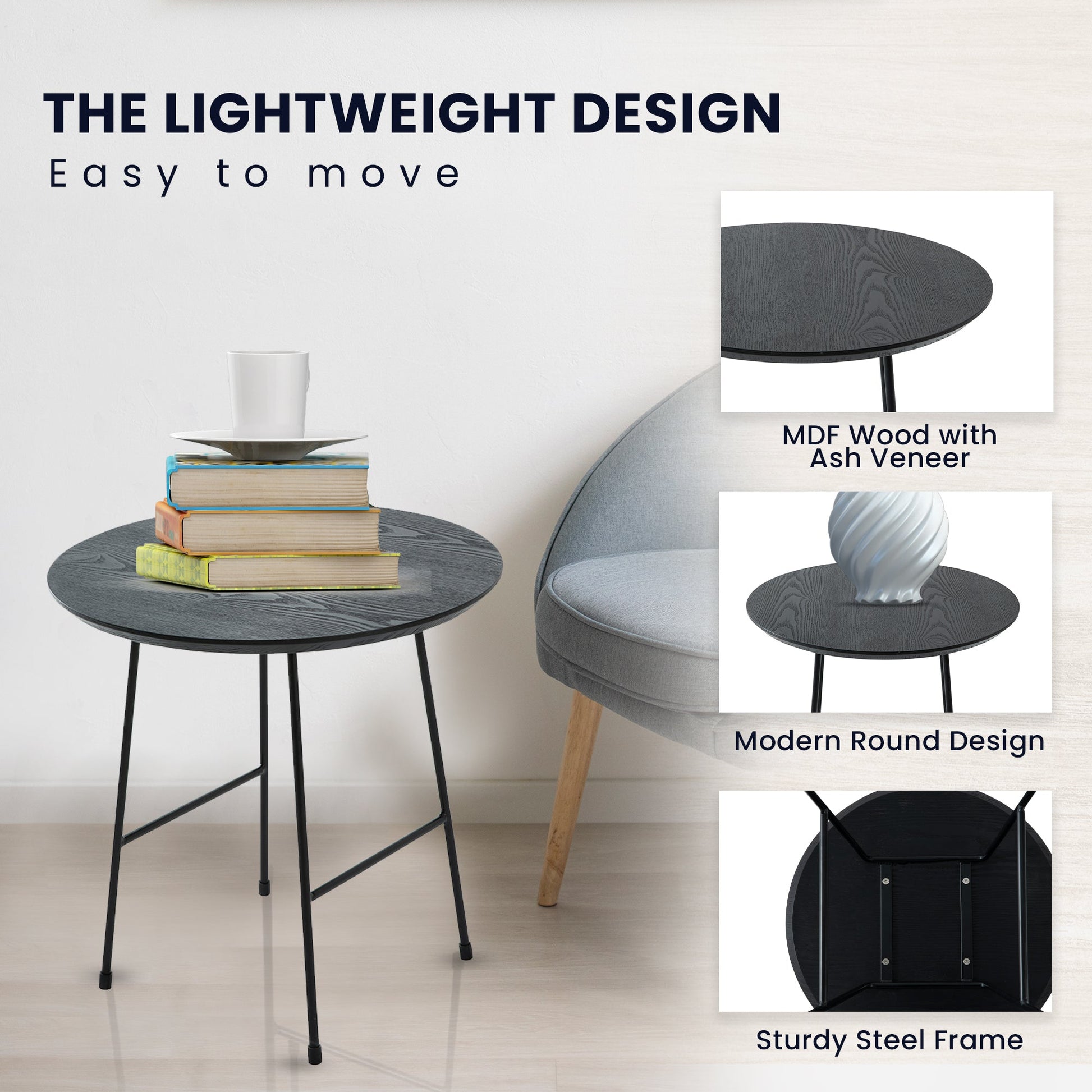 Rossmore Round Side Table with MDF Wood Tabletop in Black Steel