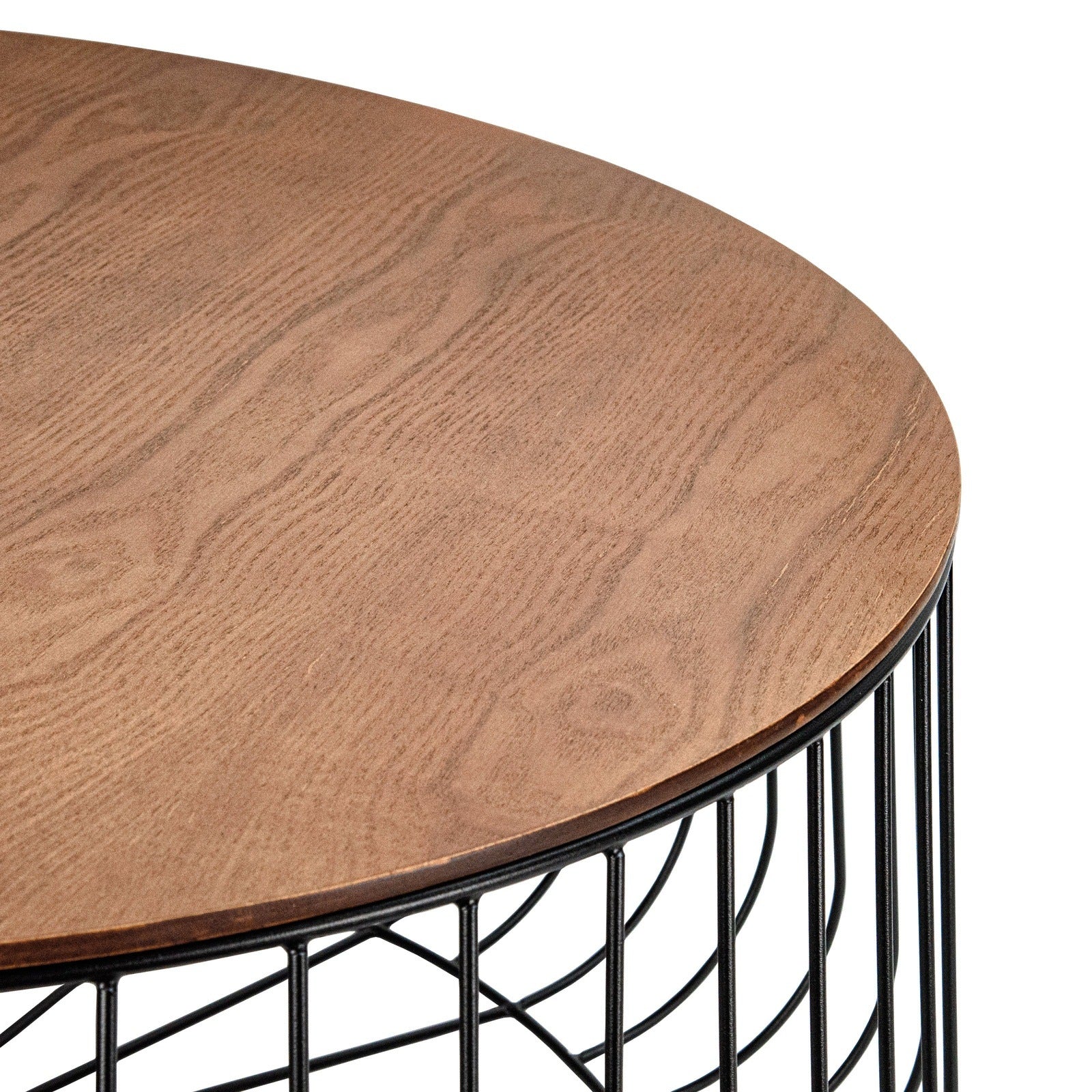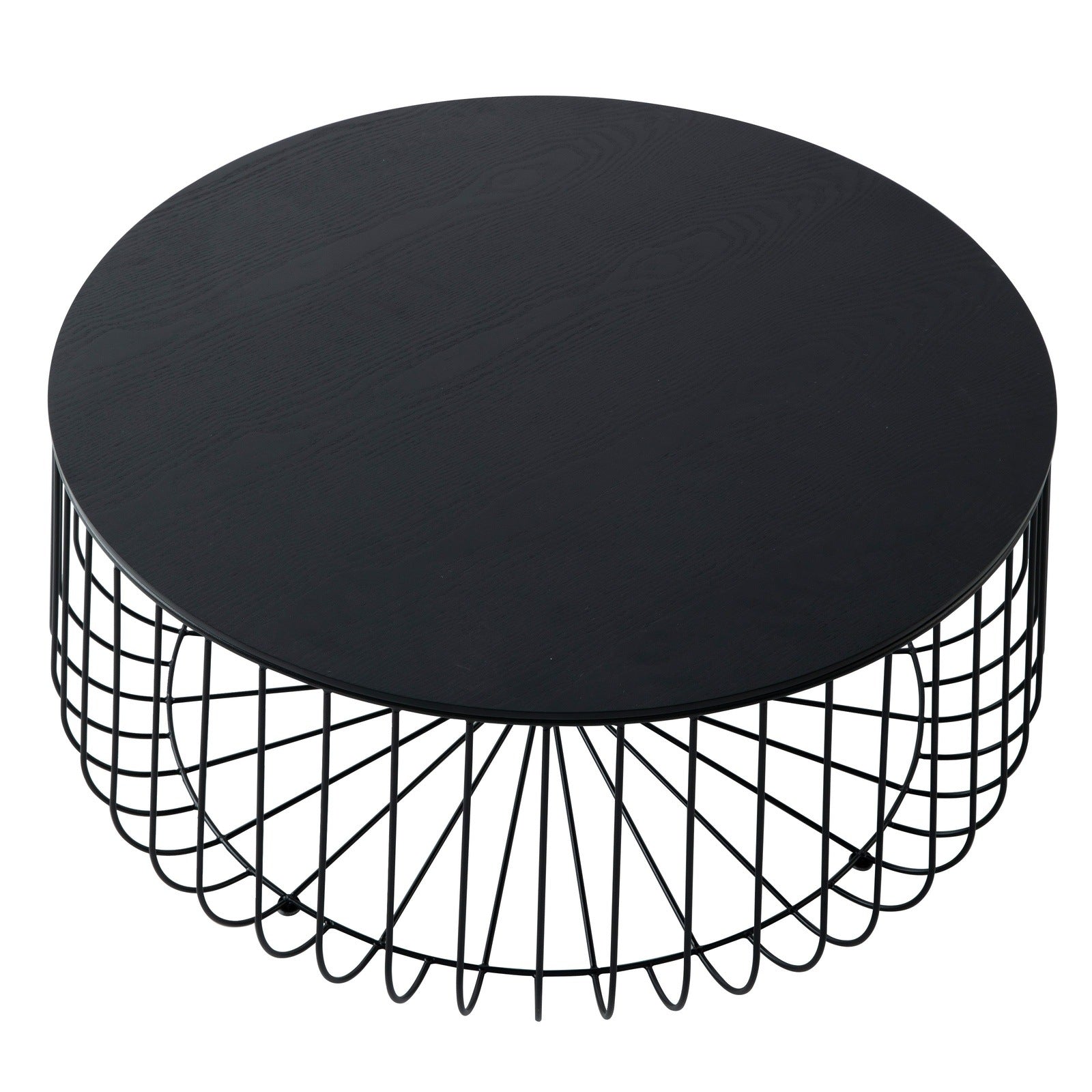 Runswick Round Coffee Table with MDF Tabletop Storage Space in Black Steel Base