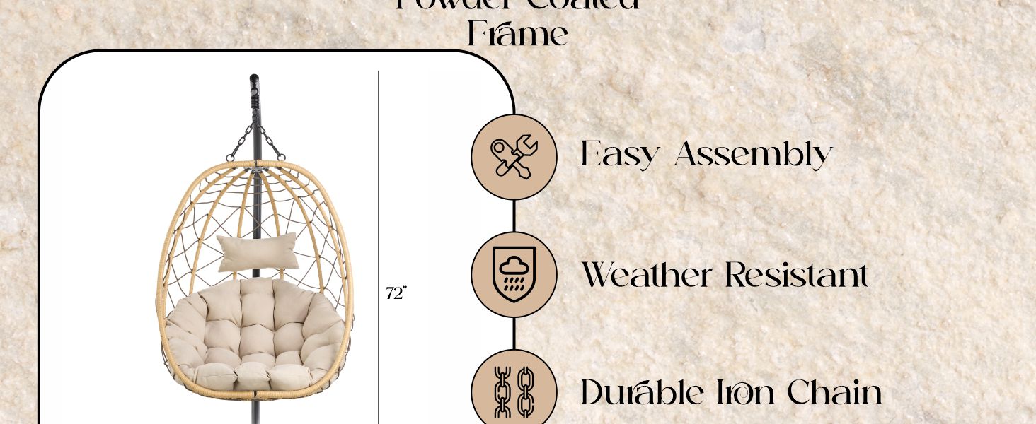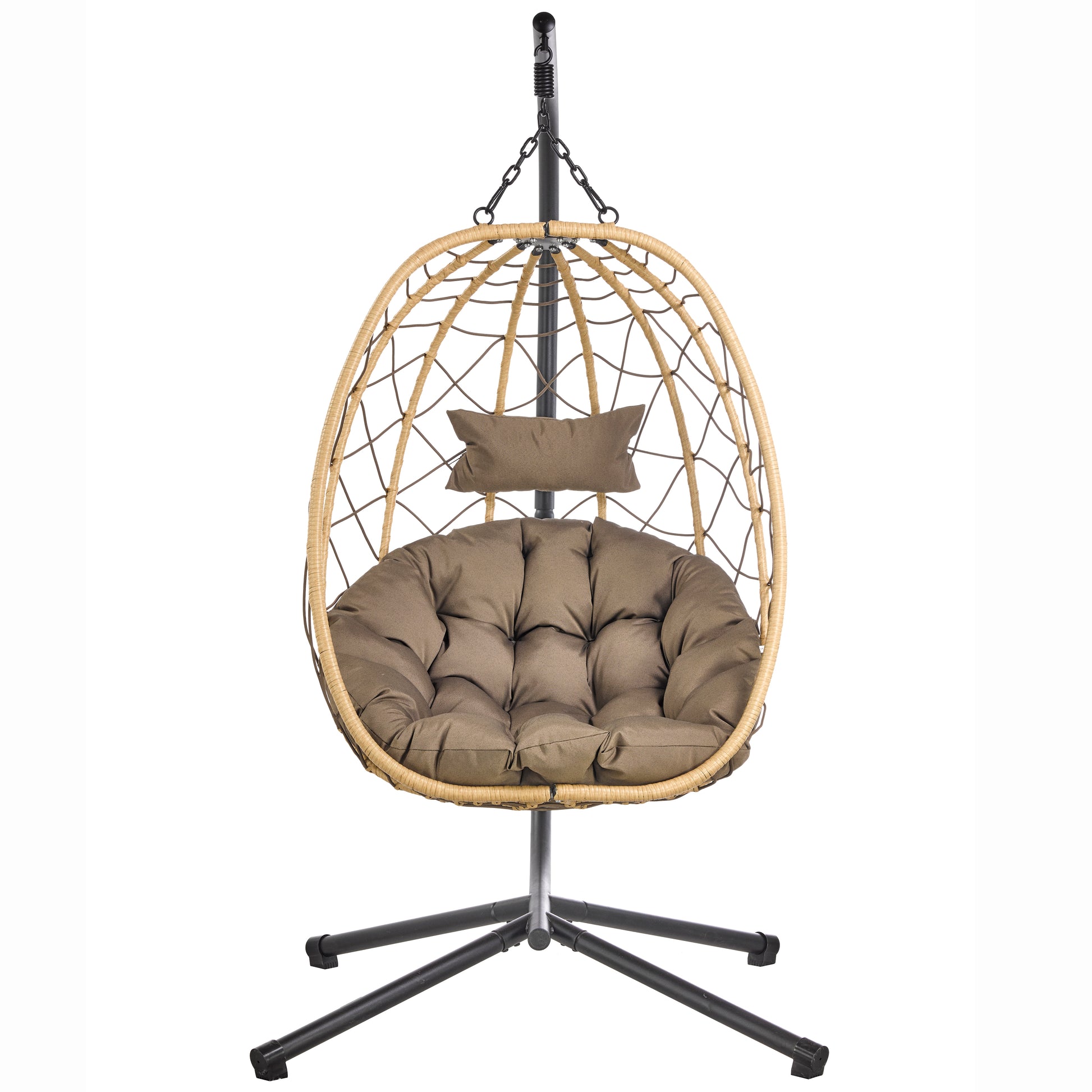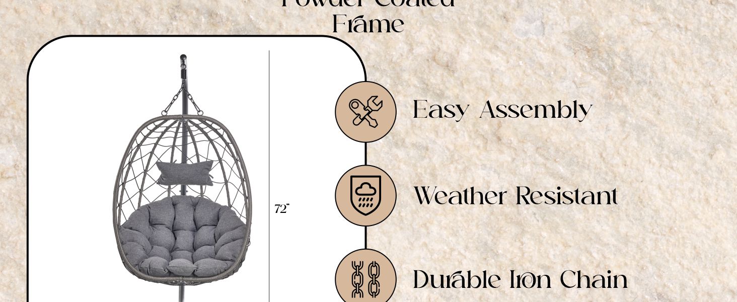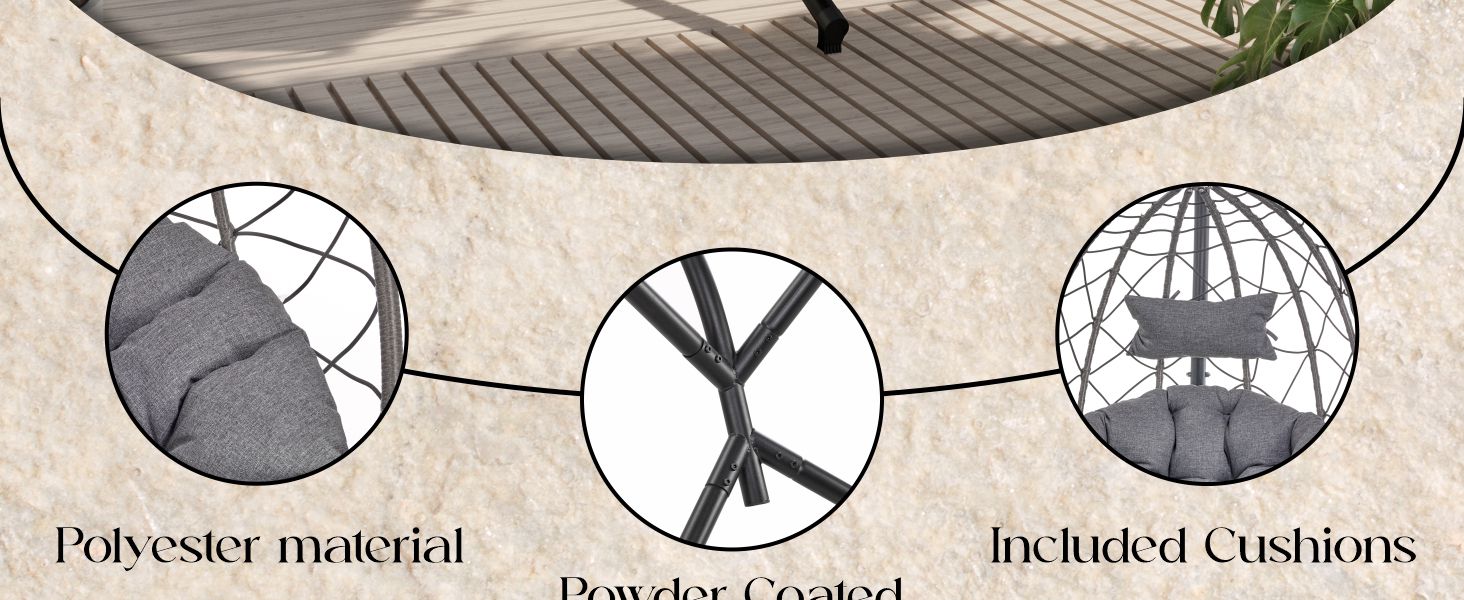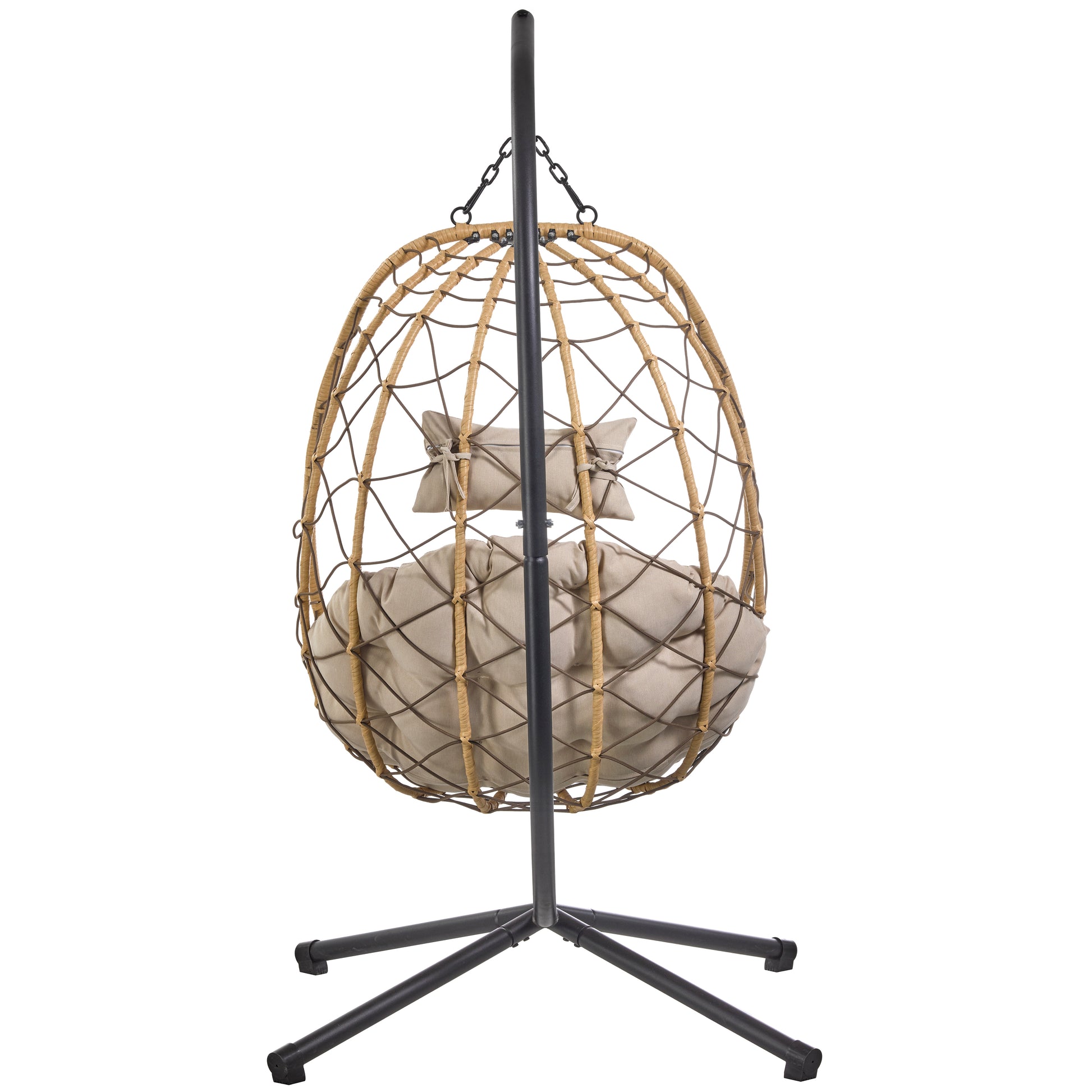 Experience the ultimate in outdoor relaxation with the Summit Single-Person Swing Egg Chair. With its mid-century modern design, durable steel frame, and weather-resistant materials, this chair offers a tranquil and stylish escape. The included polyester cushions and iron chain add comfort and charm. Easily assemble for a personalized outdoor seating experience.
