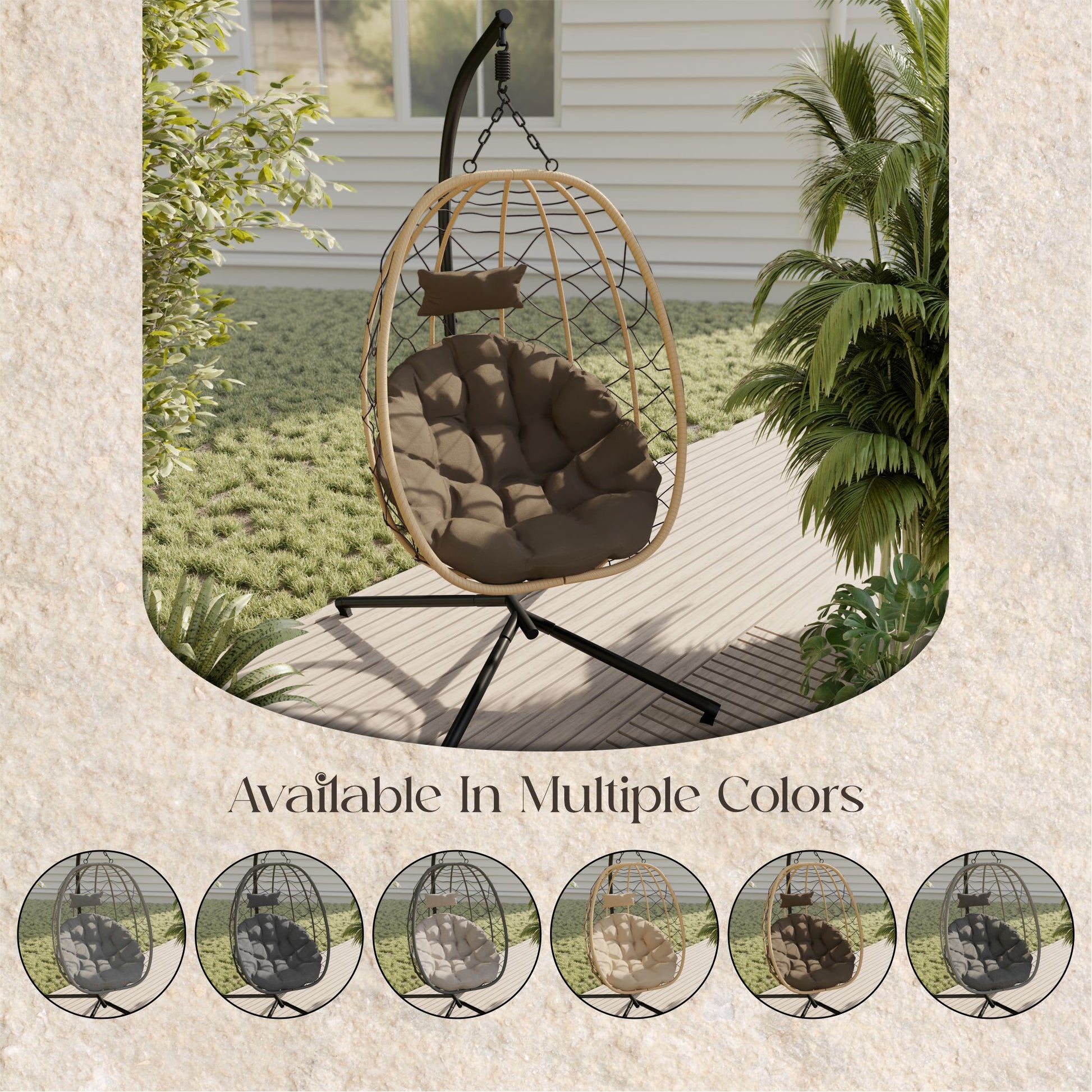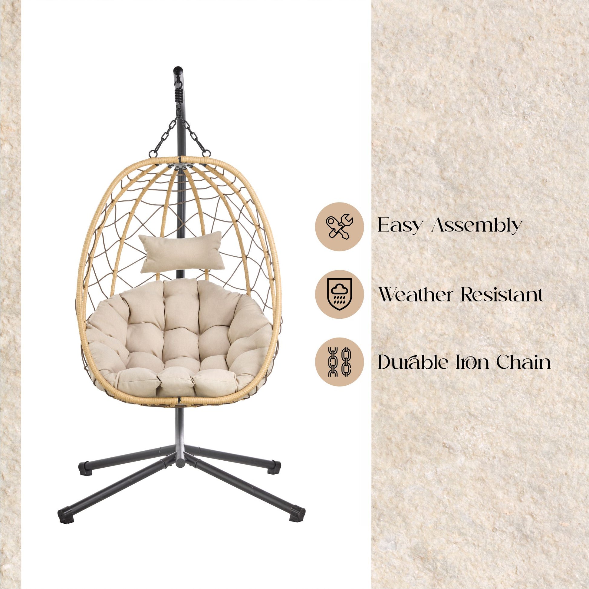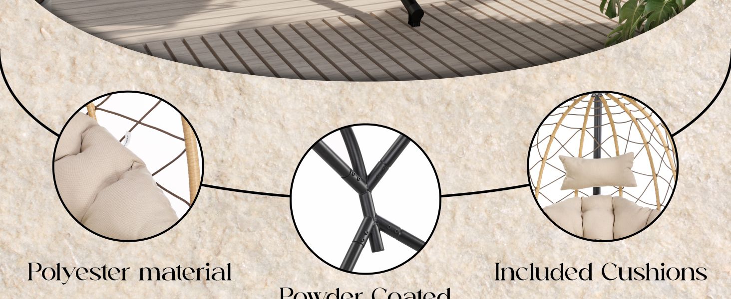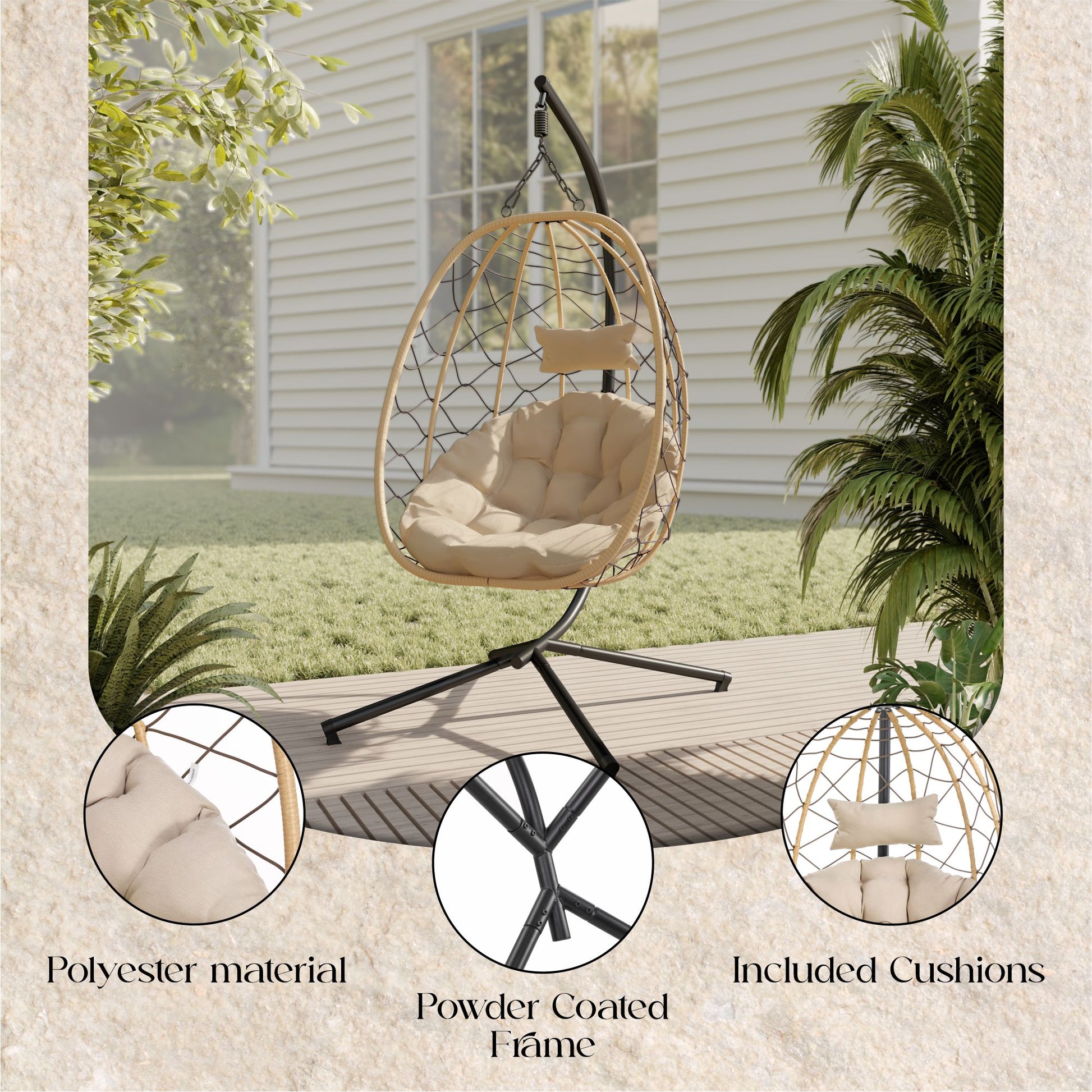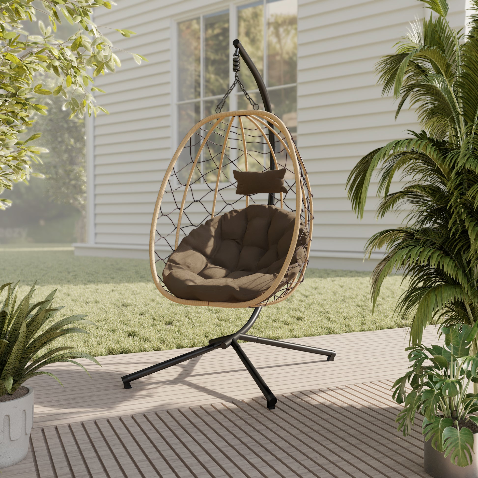 Experience the ultimate in outdoor relaxation with the Summit Single-Person Swing Egg Chair. With its mid-century modern design, durable steel frame, and weather-resistant materials, this chair offers a tranquil and stylish escape. The included polyester cushions and iron chain add comfort and charm. Easily assemble for a personalized outdoor seating experience.