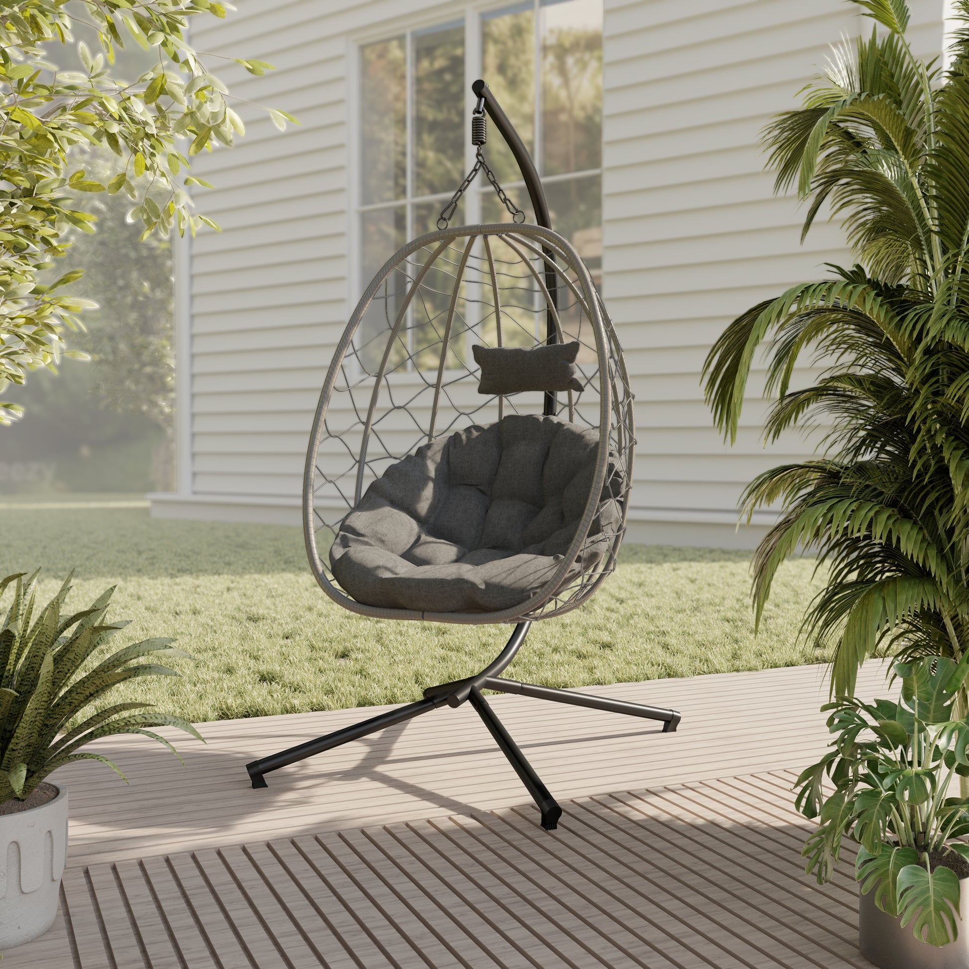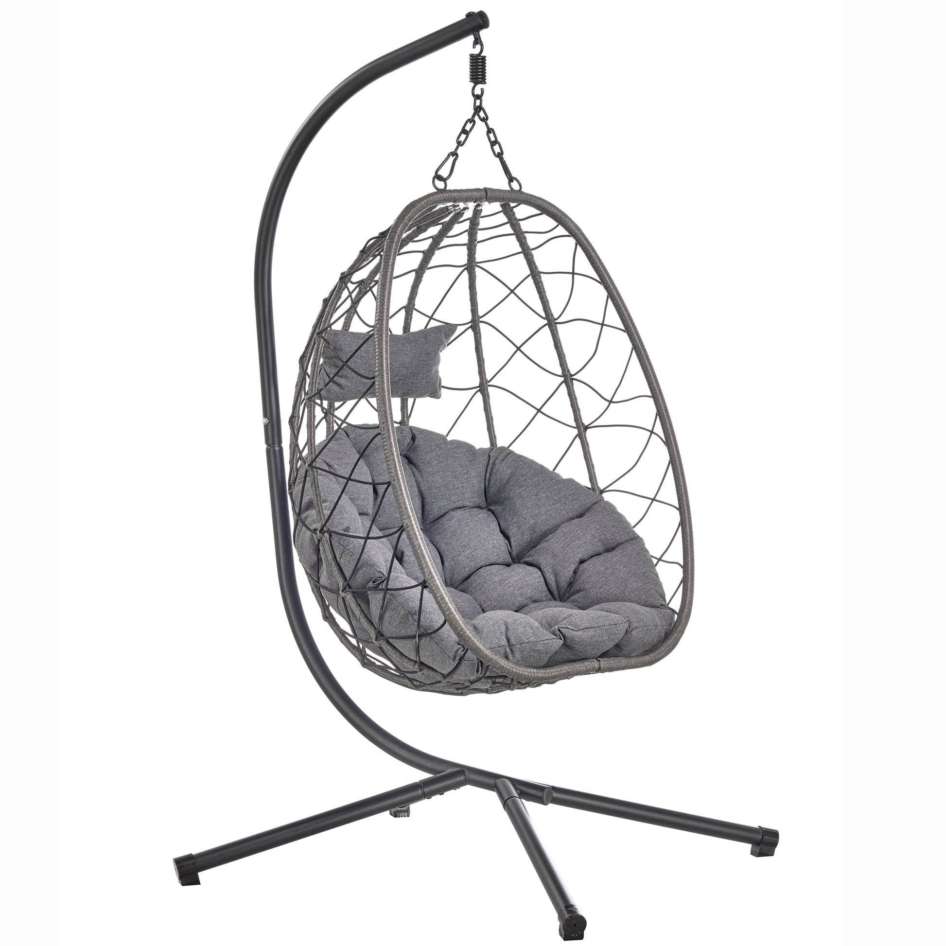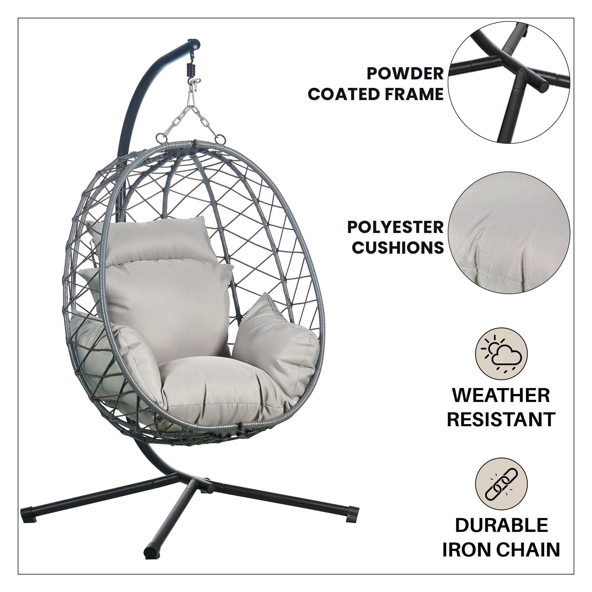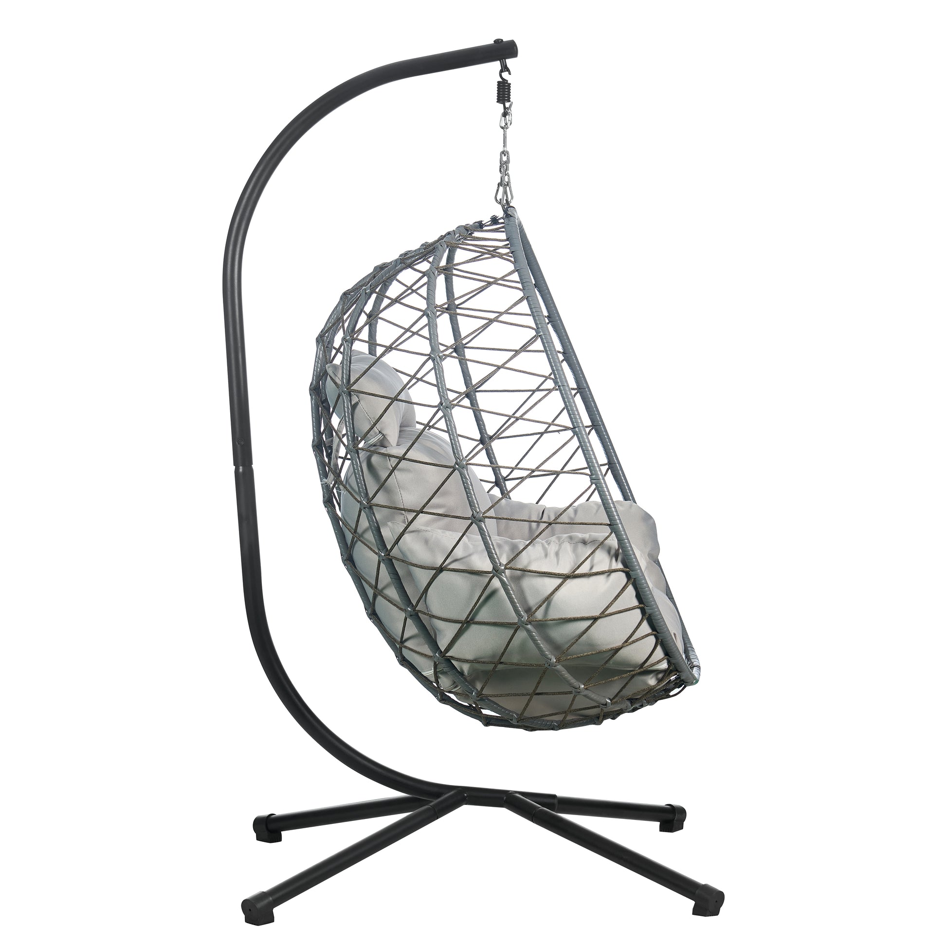 Summit Outdoor Single Person Egg Swing Chair in Grey Steel Frame With Removable Cushions